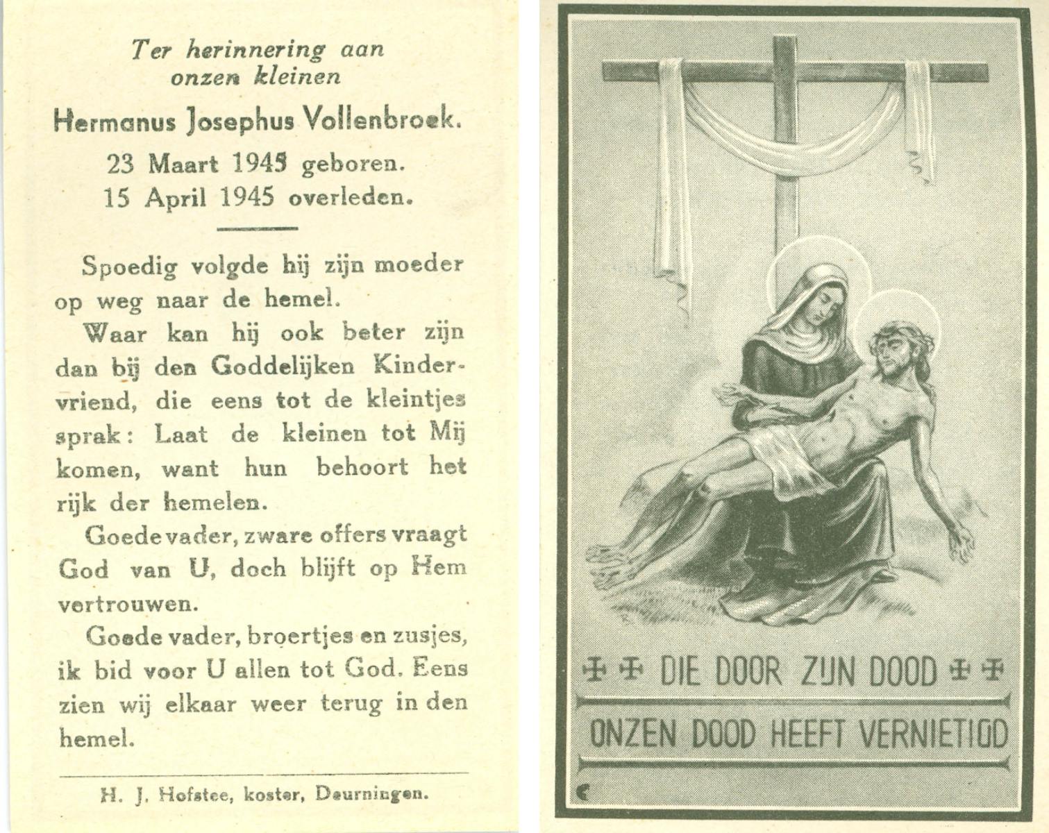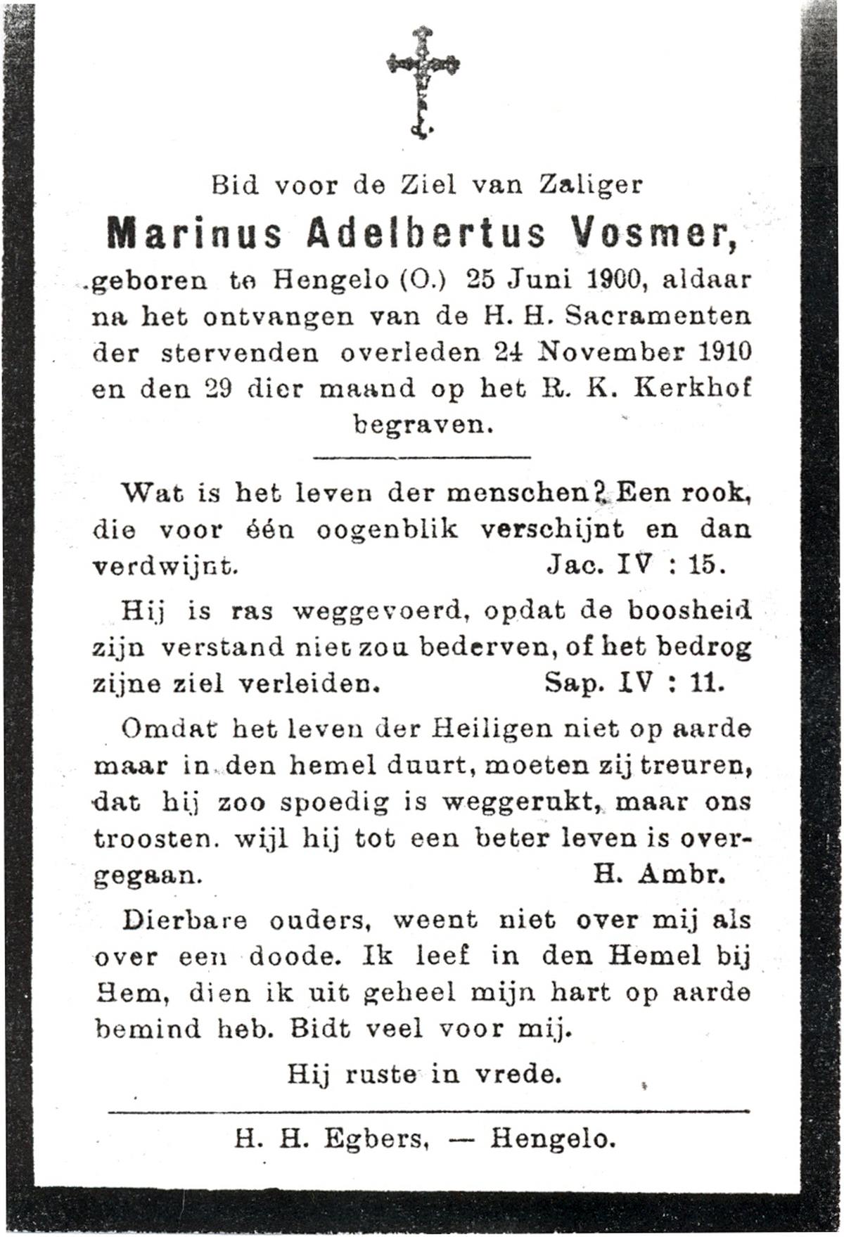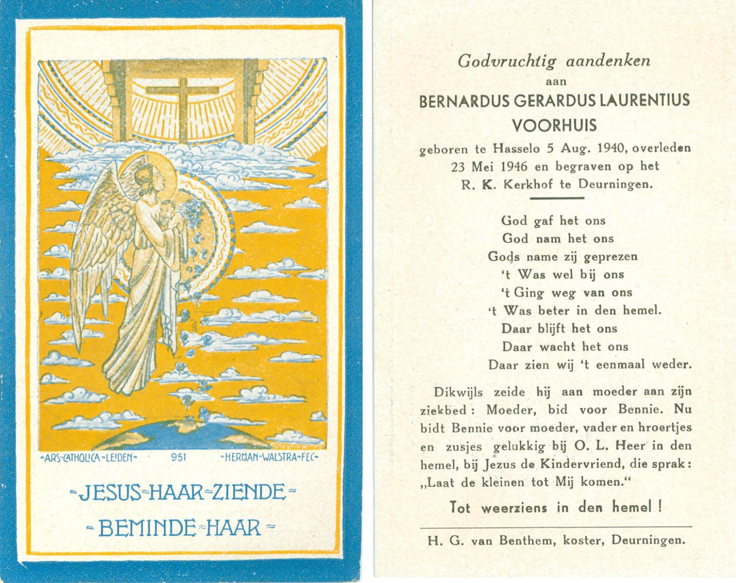 VISSER, Hieronymus Gerardus Marinus, geboren op 20-12-1931 te Overdinkel, overleden op 8-12-1946 te Enschede op 14-jarige leeftijd, begraven op 11-12-1946 te Overdinkel.