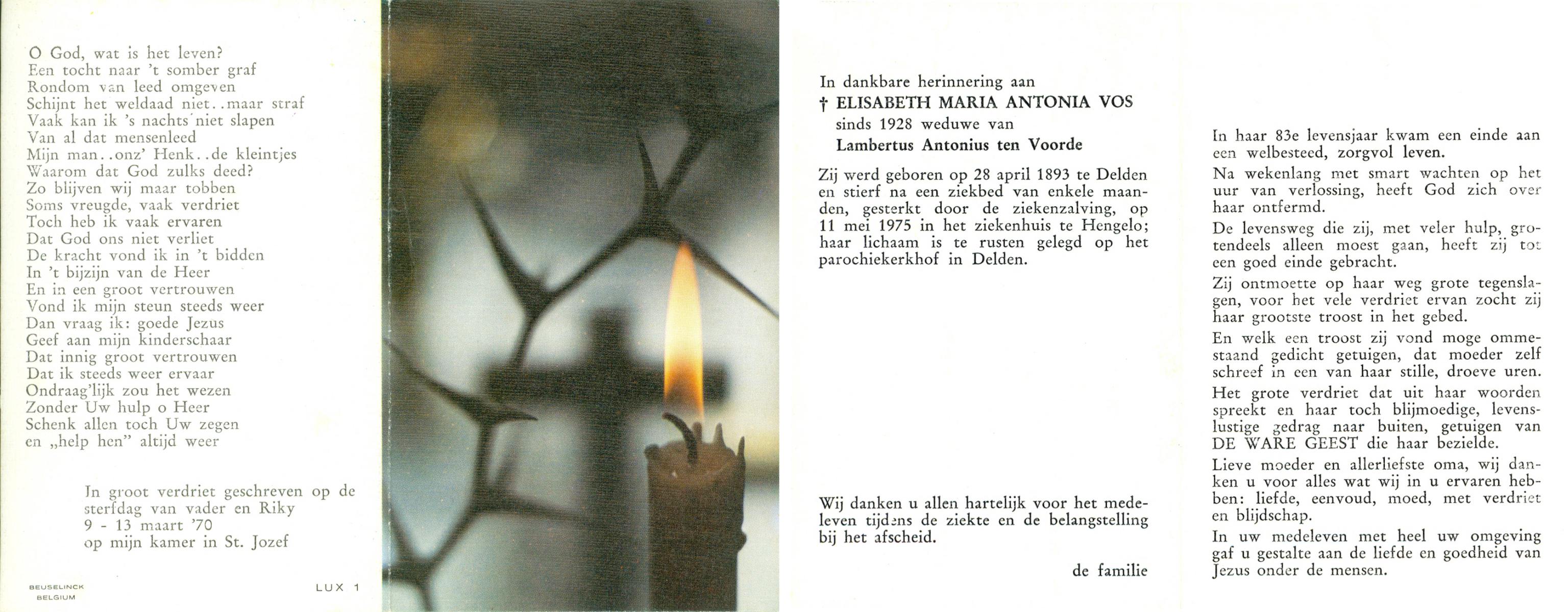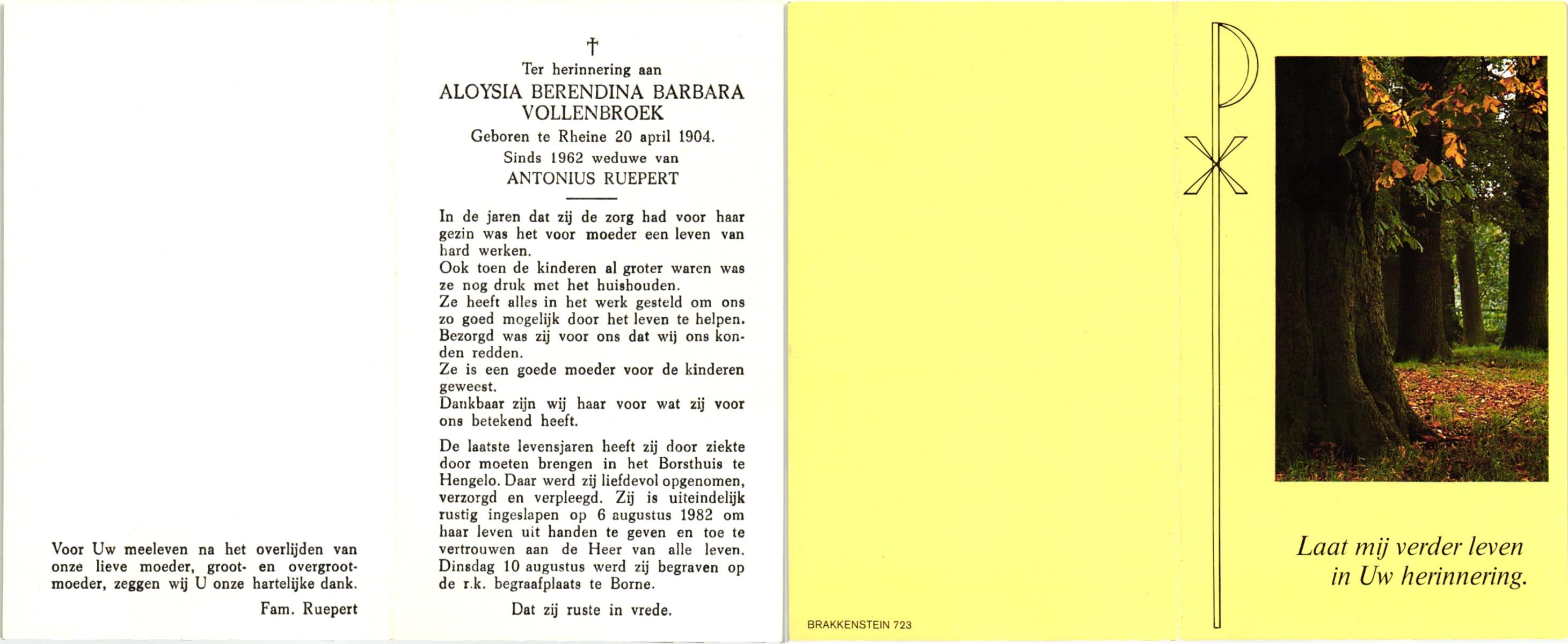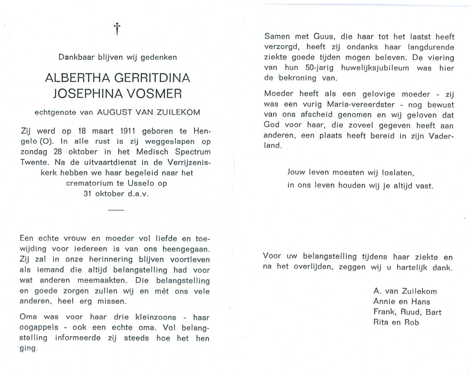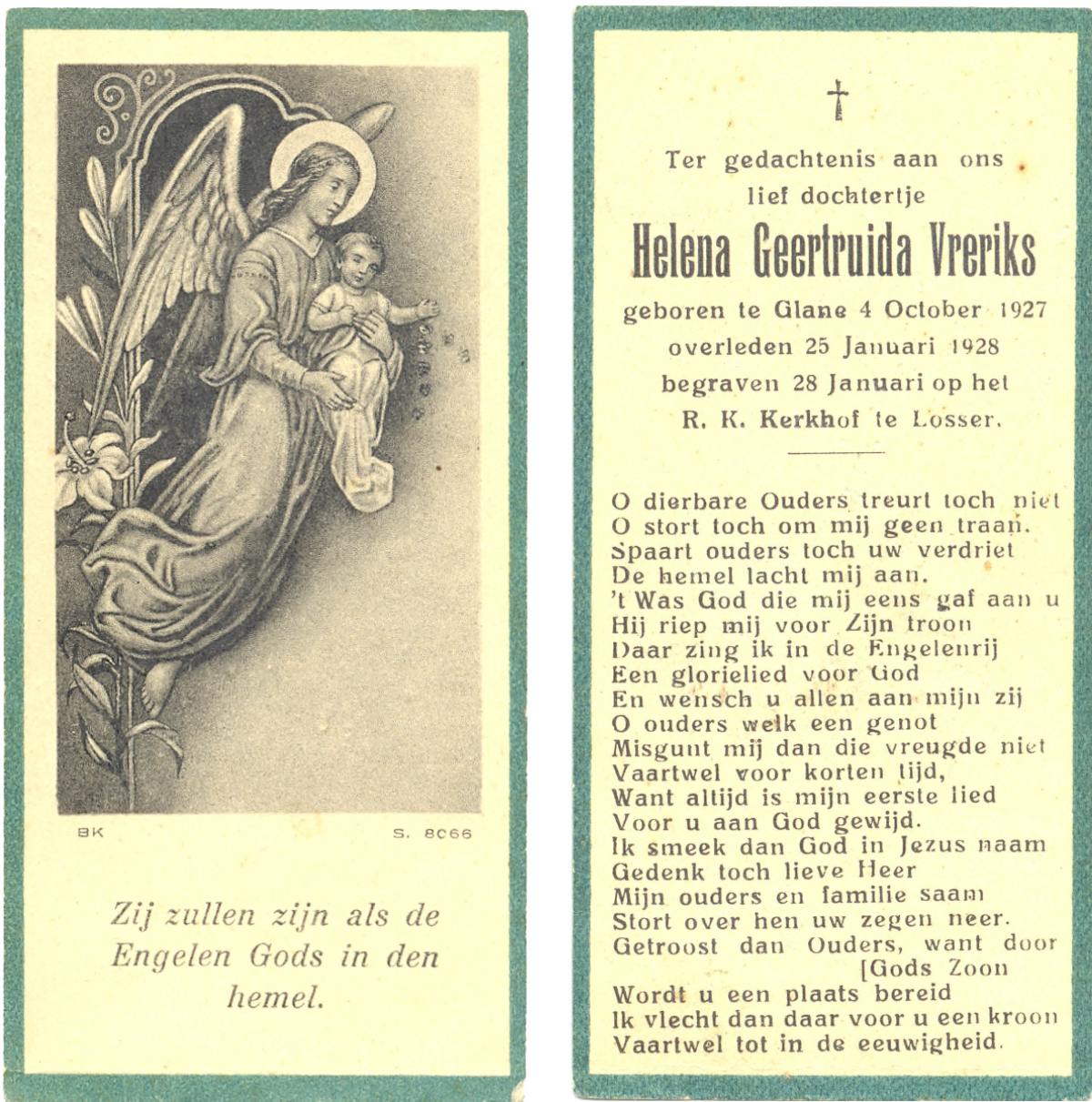 VLODDER, Aleida Elisabeth Maria, geboren op 28-7-1913 te Glane, overleden op 21-7-1995 te Losser op 81-jarige leeftijd, begraven op 26-7-1995 te Losser.