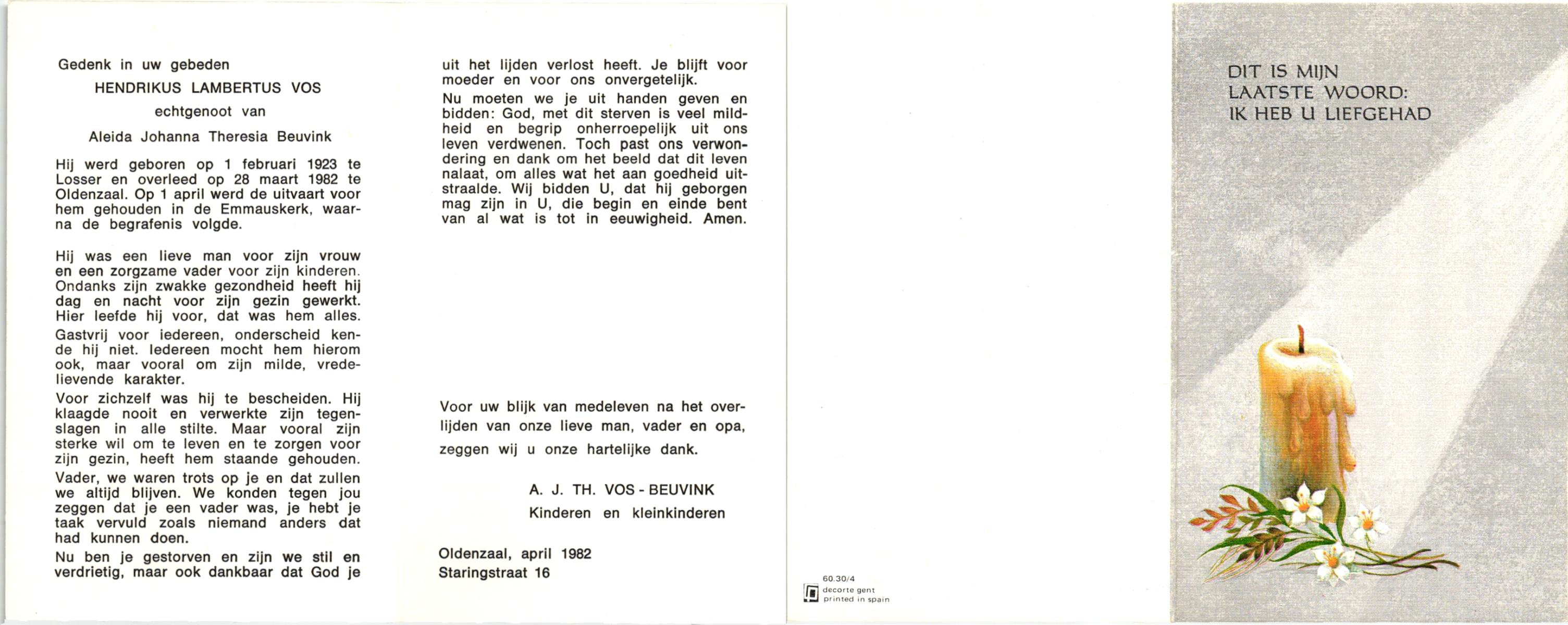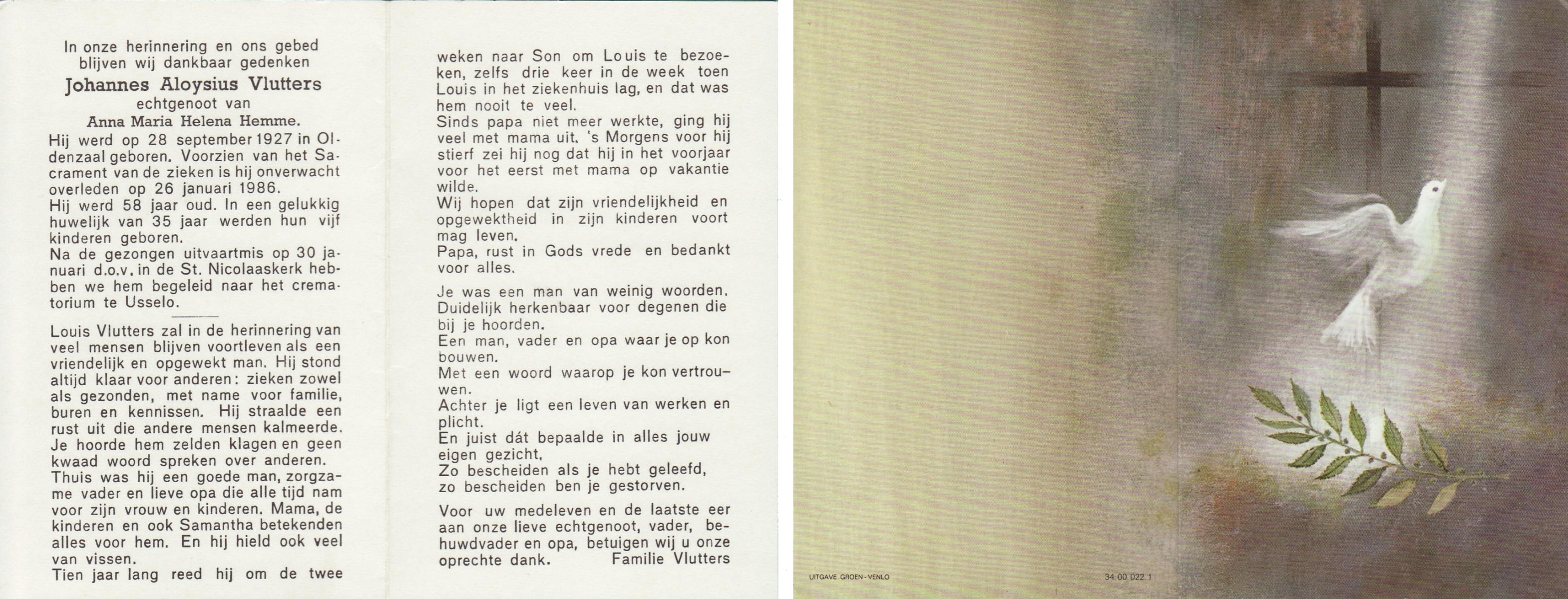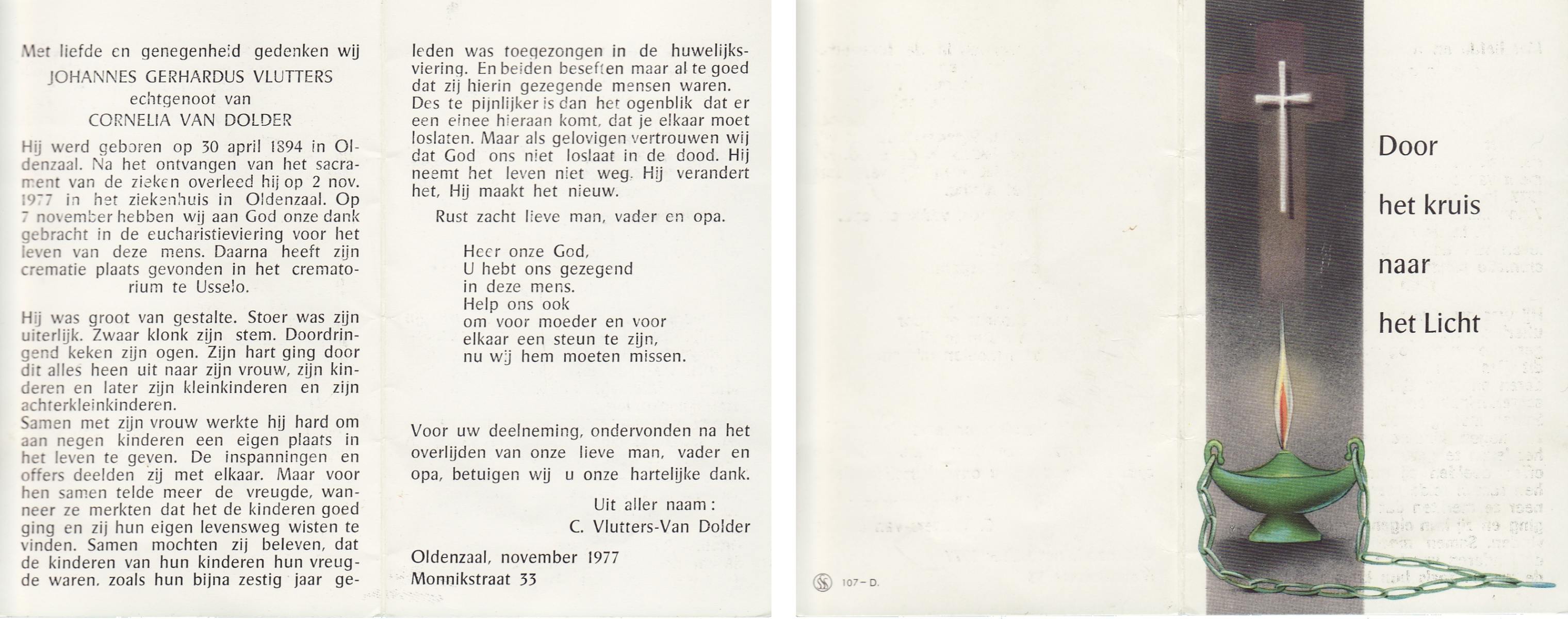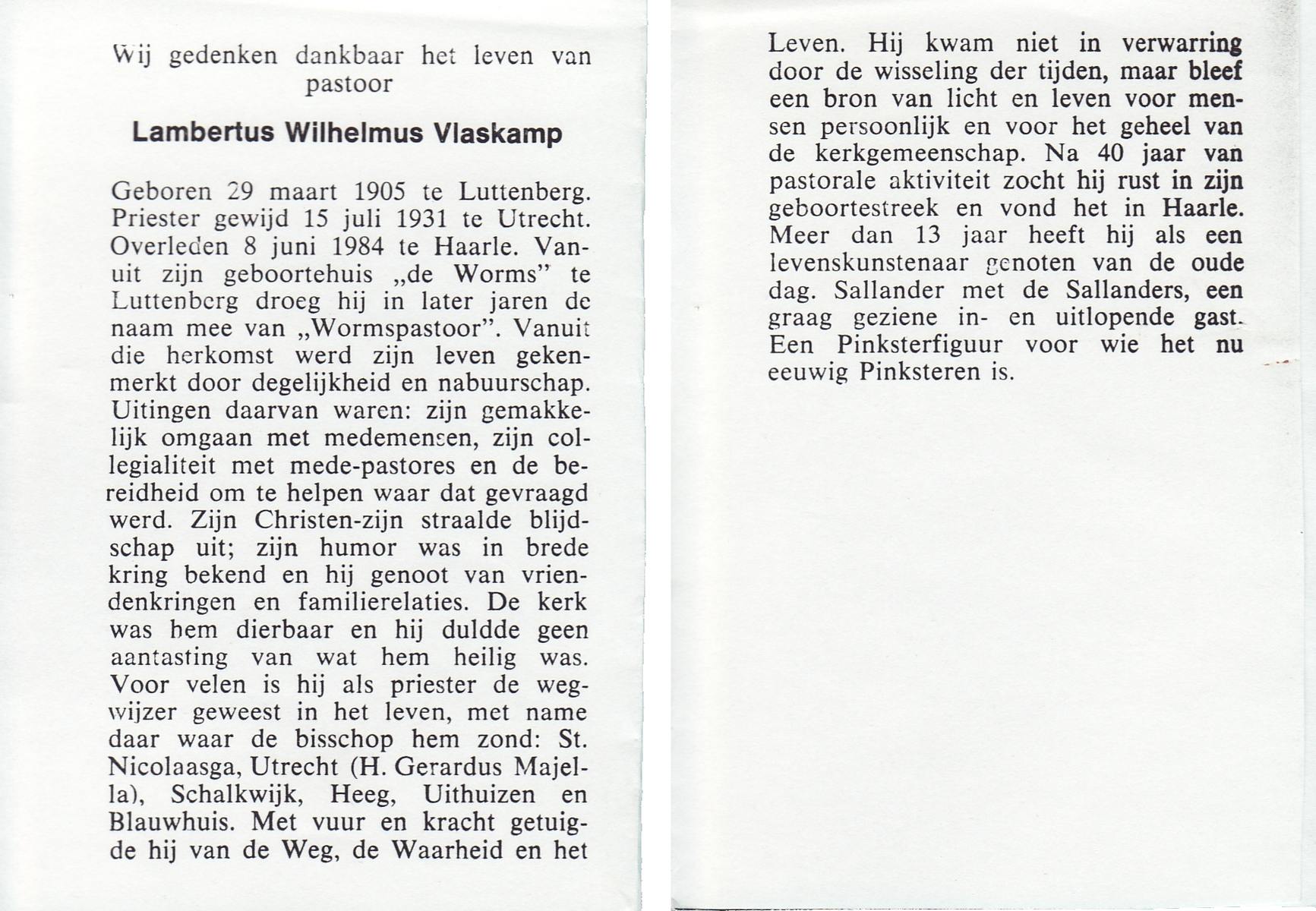 VLASKAMP, Lambertus Wilhelmus, geboren op 29-3-1905 te Luttenberg, Raalte, overleden op 8-6-1984 te Hellendoorn, Haarle op 79-jarige leeftijd.