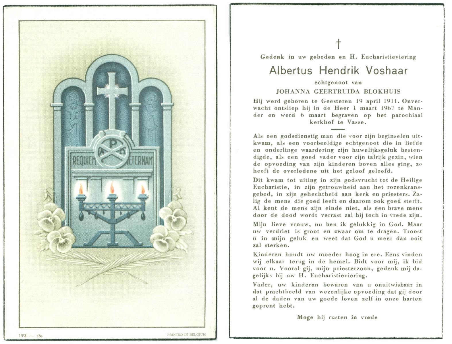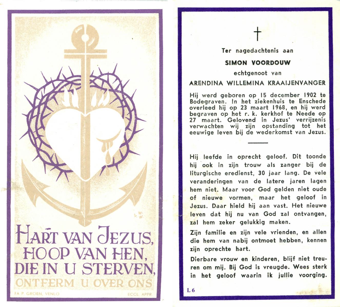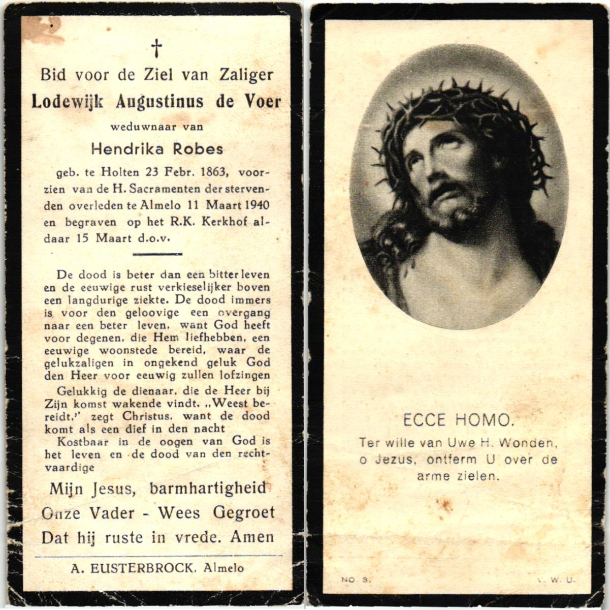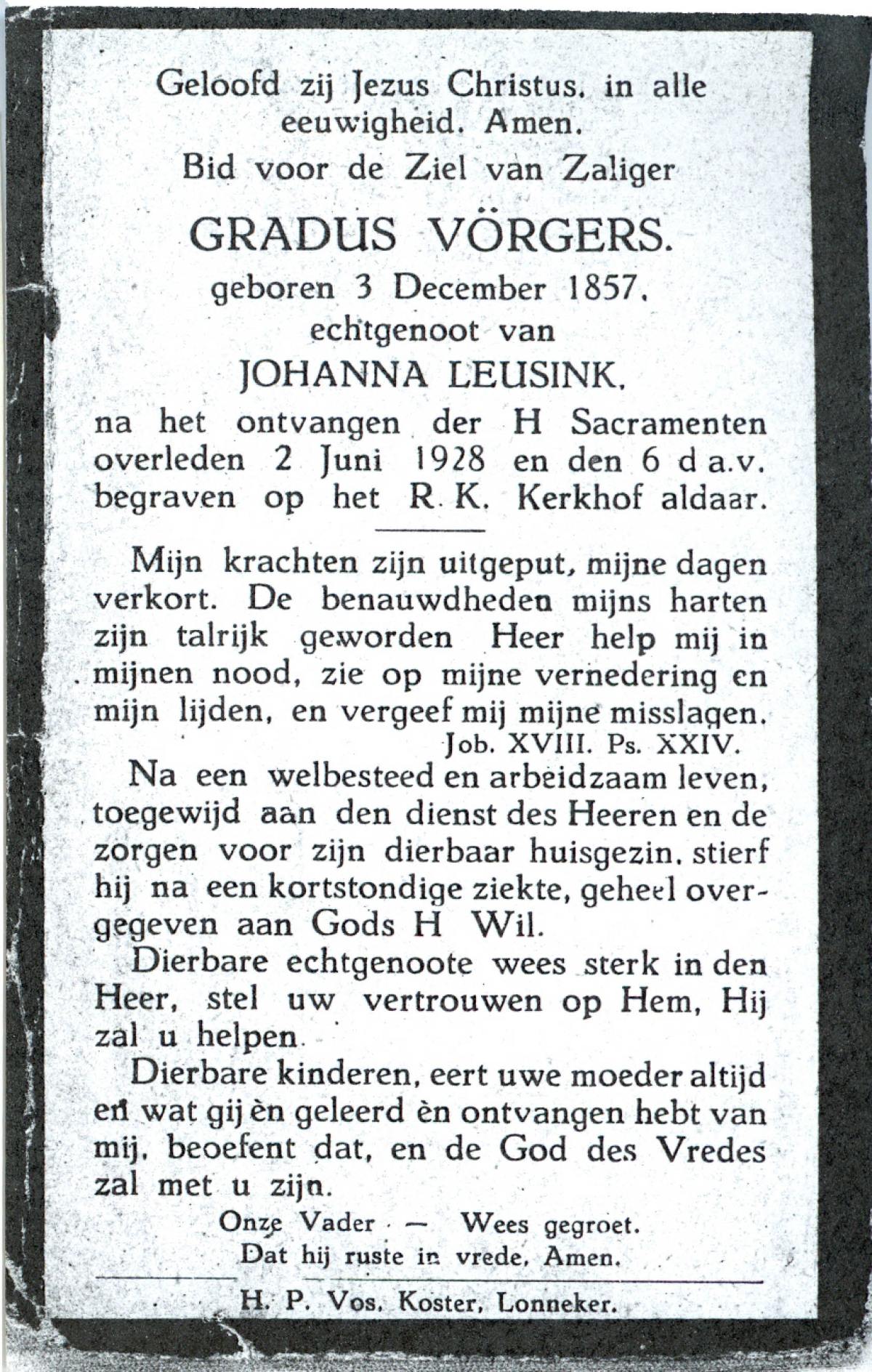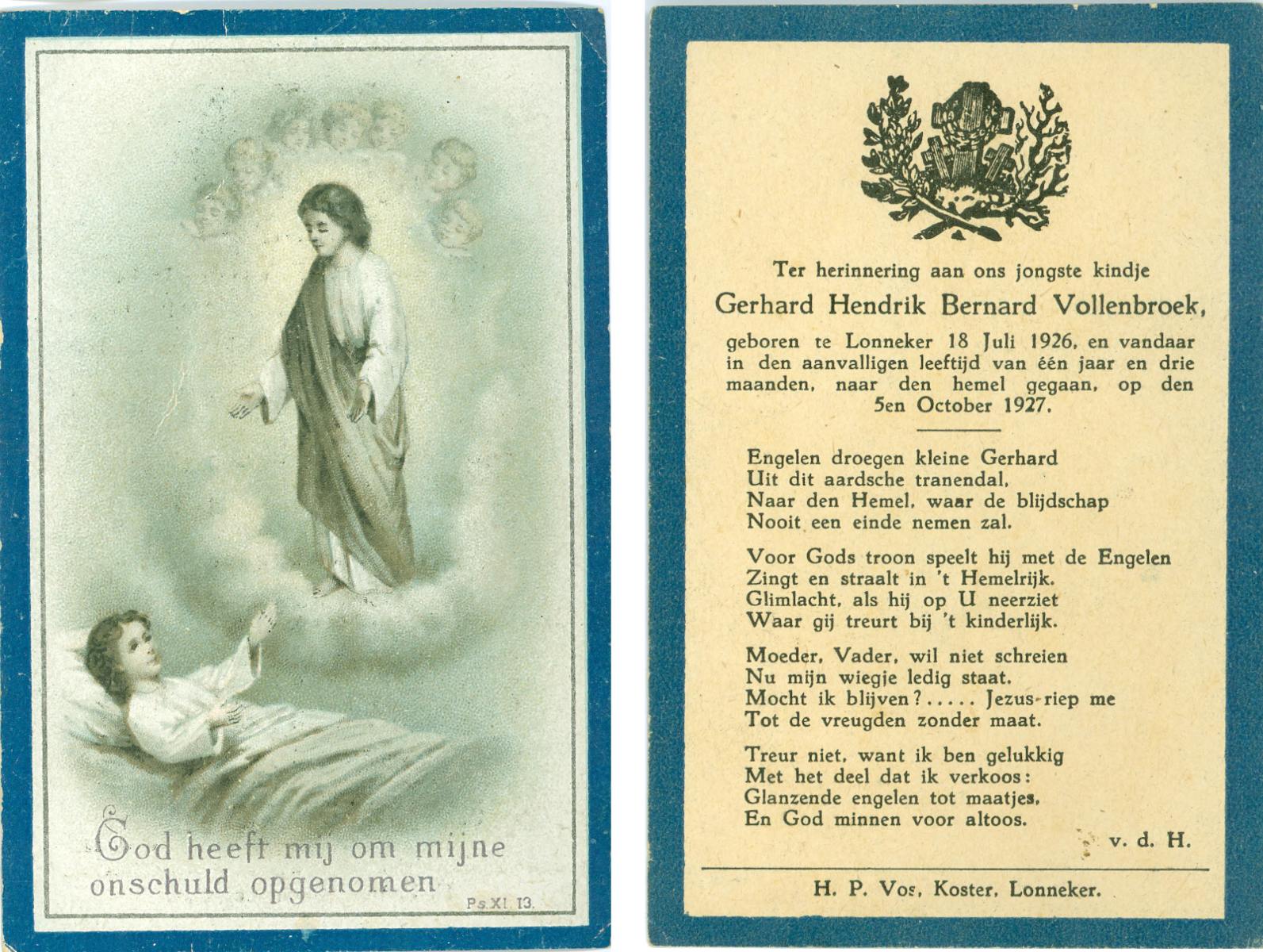VLASKAMP, Lambertus Wilhelmus, geboren op 29-3-1905 te Luttenberg, Raalte, overleden op 8-6-1984 te Hellendoorn, Haarle op 79-jarige leeftijd.