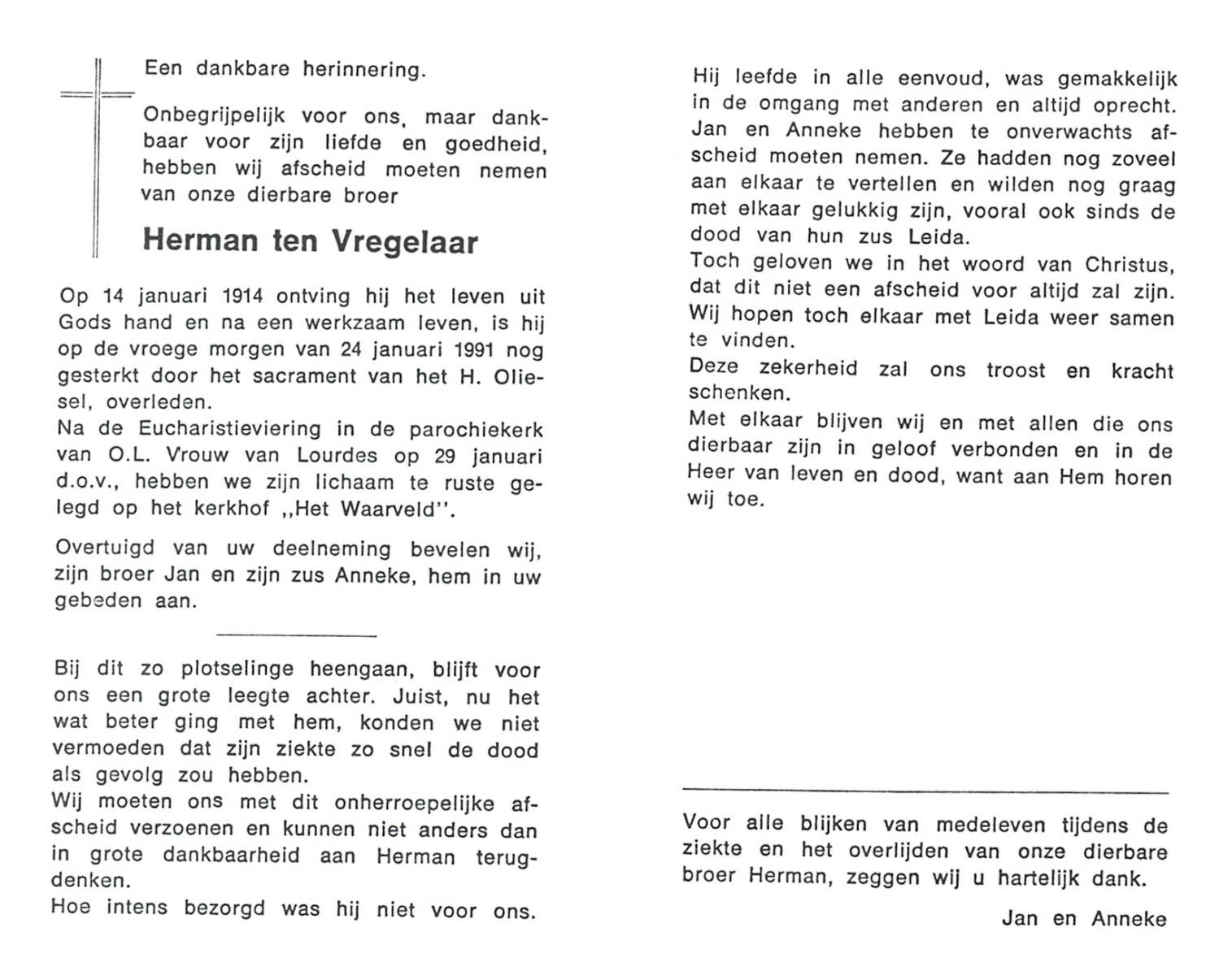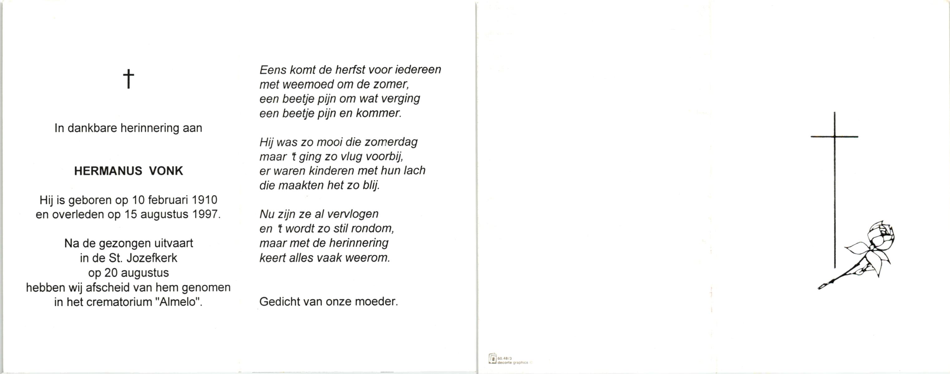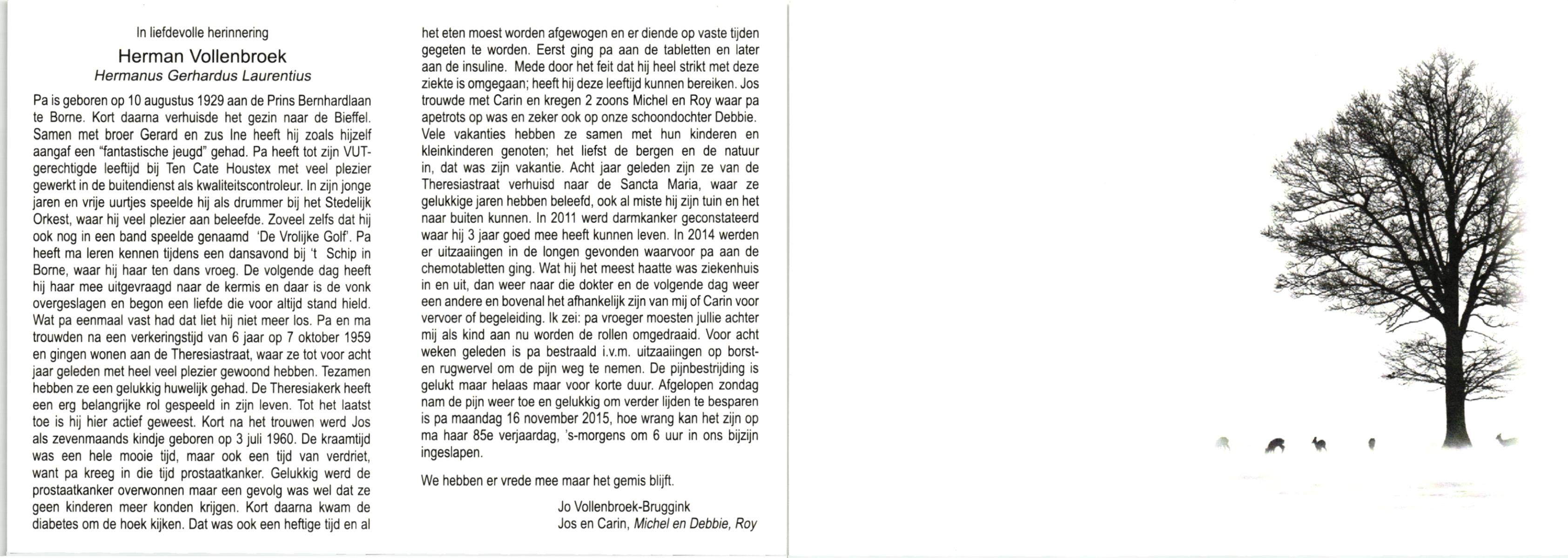 VLIERMAN, Hermanus Franciscus, geboren op 4-10-1927 te Tubbergen, overleden op 14-10-1989 te Borne op 62-jarige leeftijd, begraven op 19-10-1989 te Borne.
