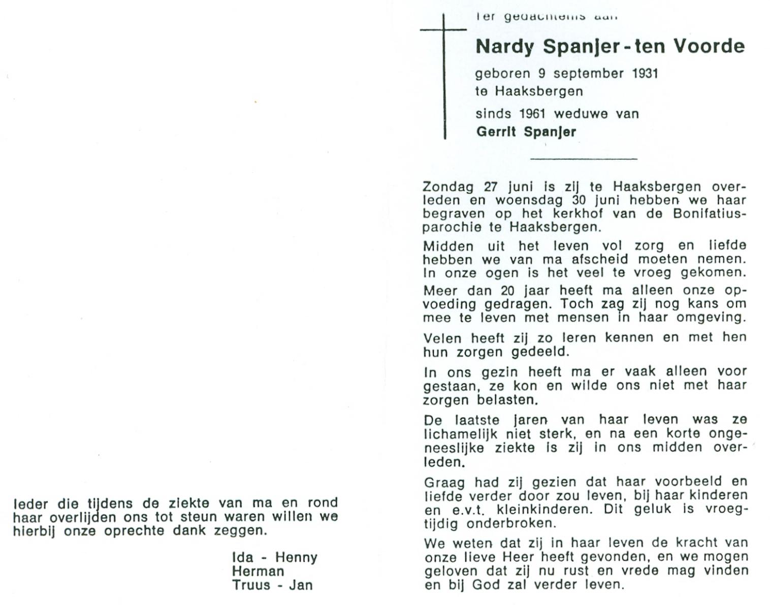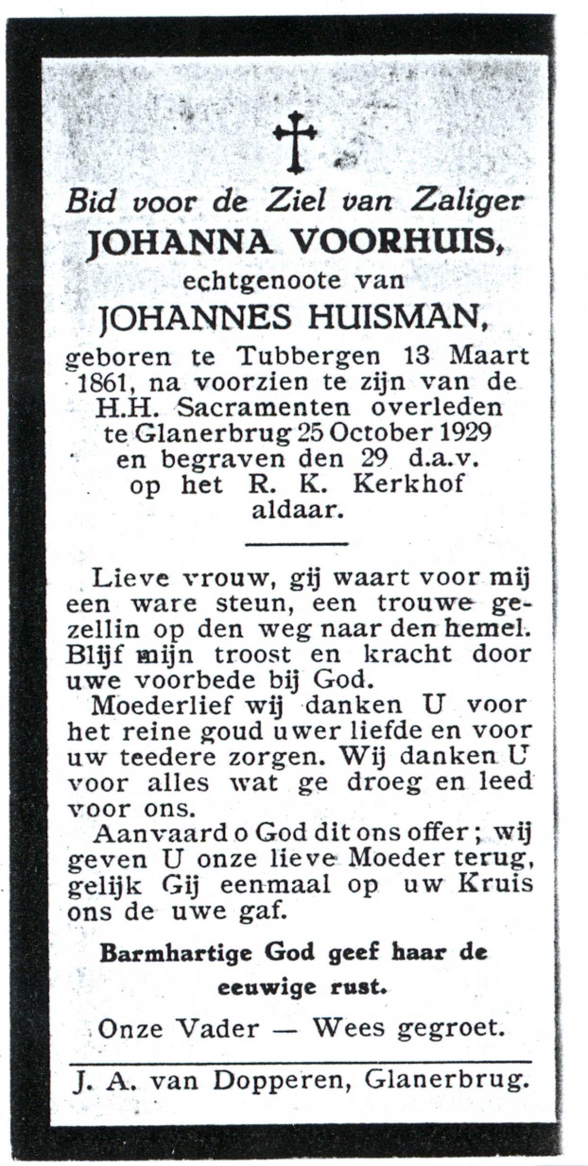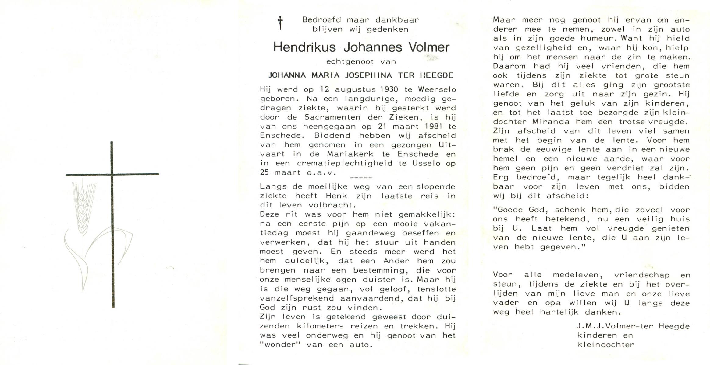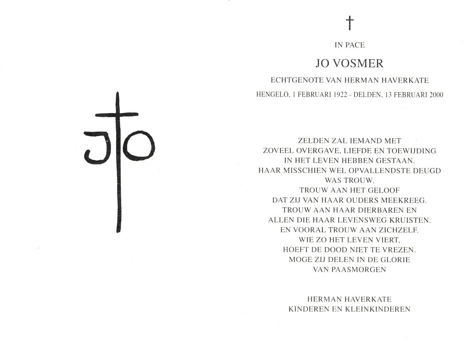VLIERMAN, Johanna, geboren op 20-08-1891 te Tubbergen, overleden op 9-2-1981 te Weerselo op 89-jarige leeftijd, begraven op 13-2-1981 te Weerselo.
