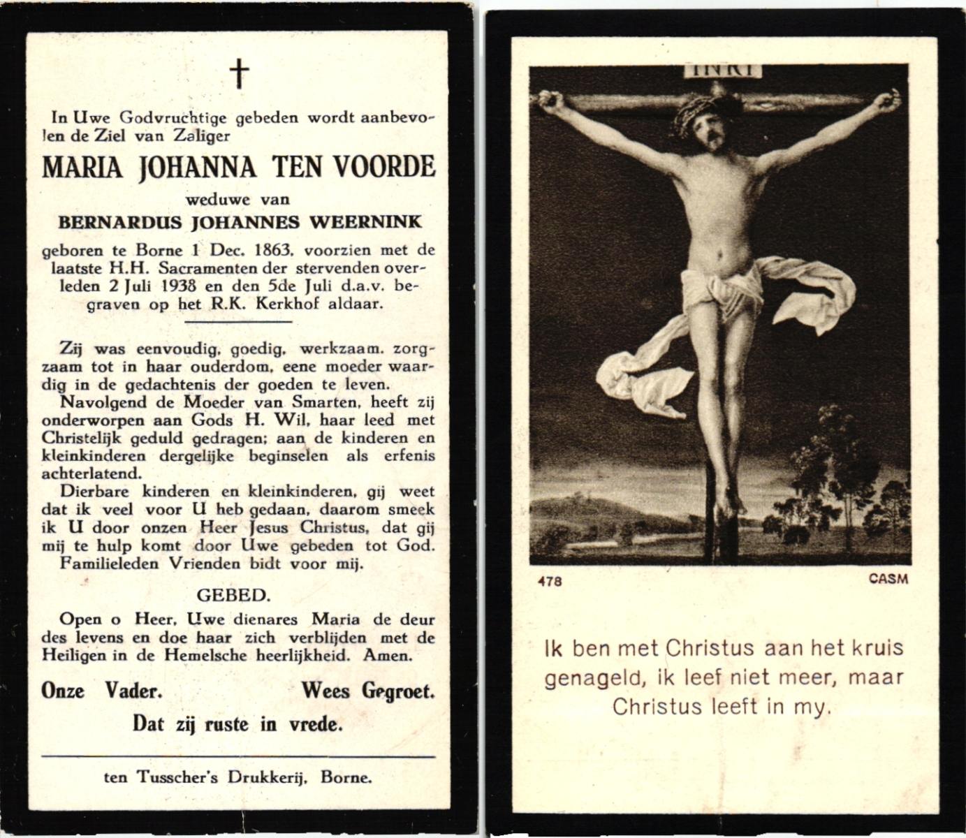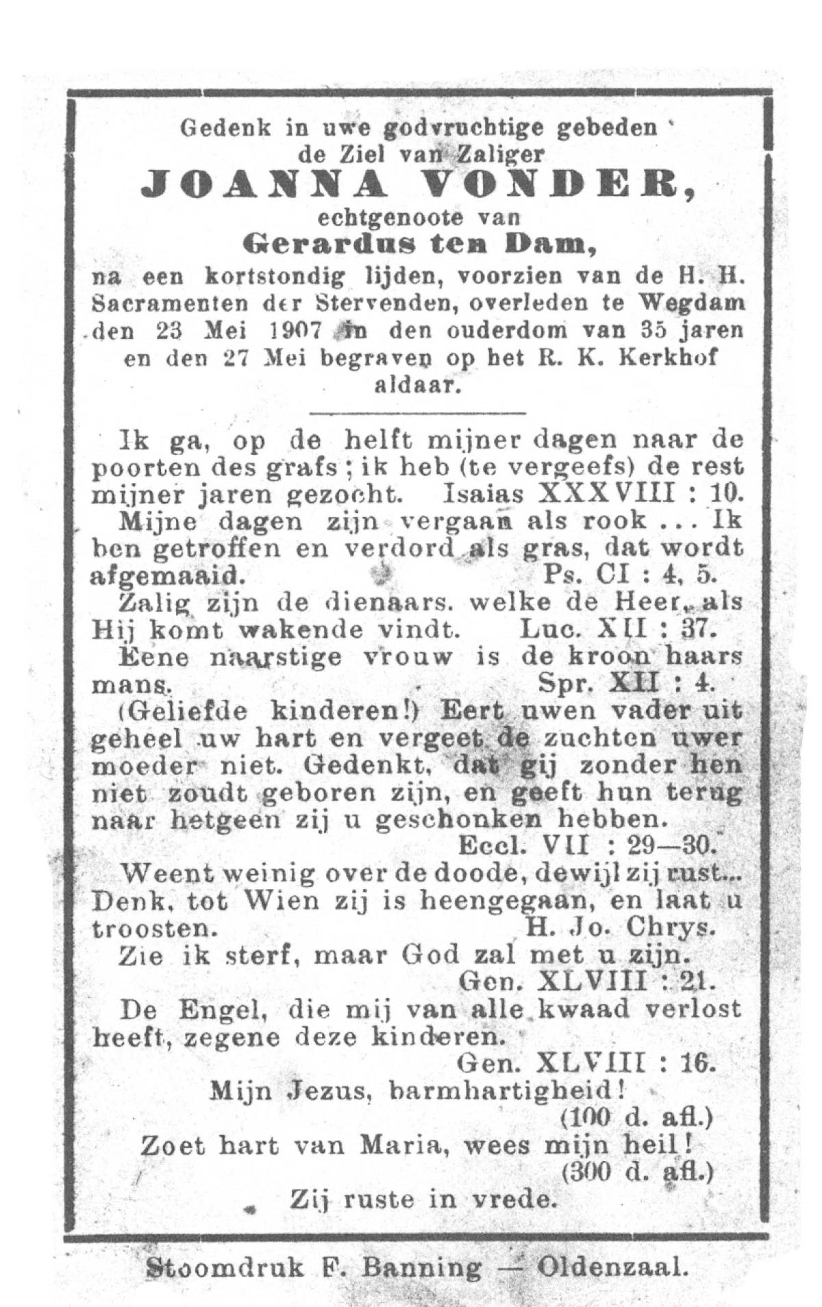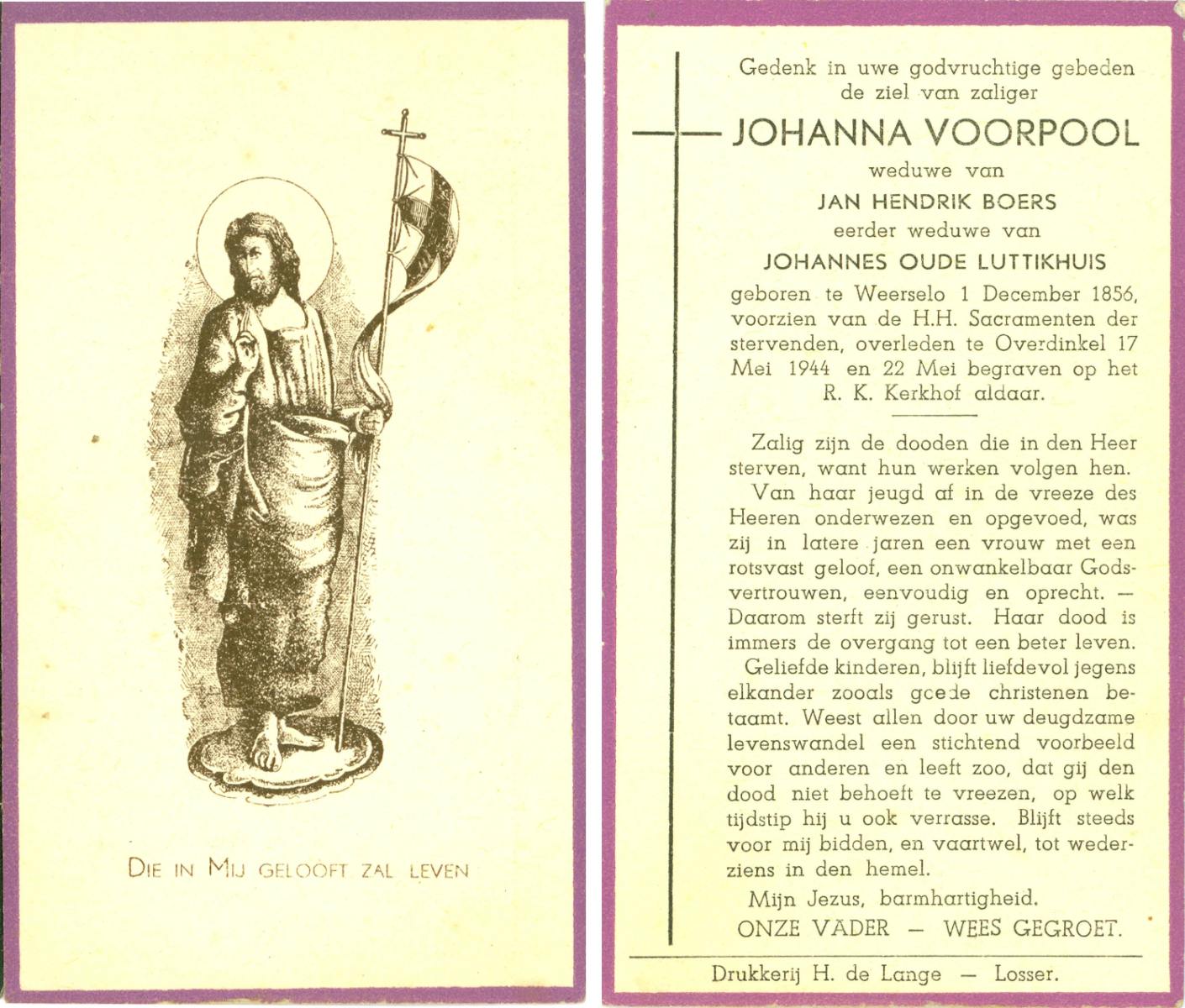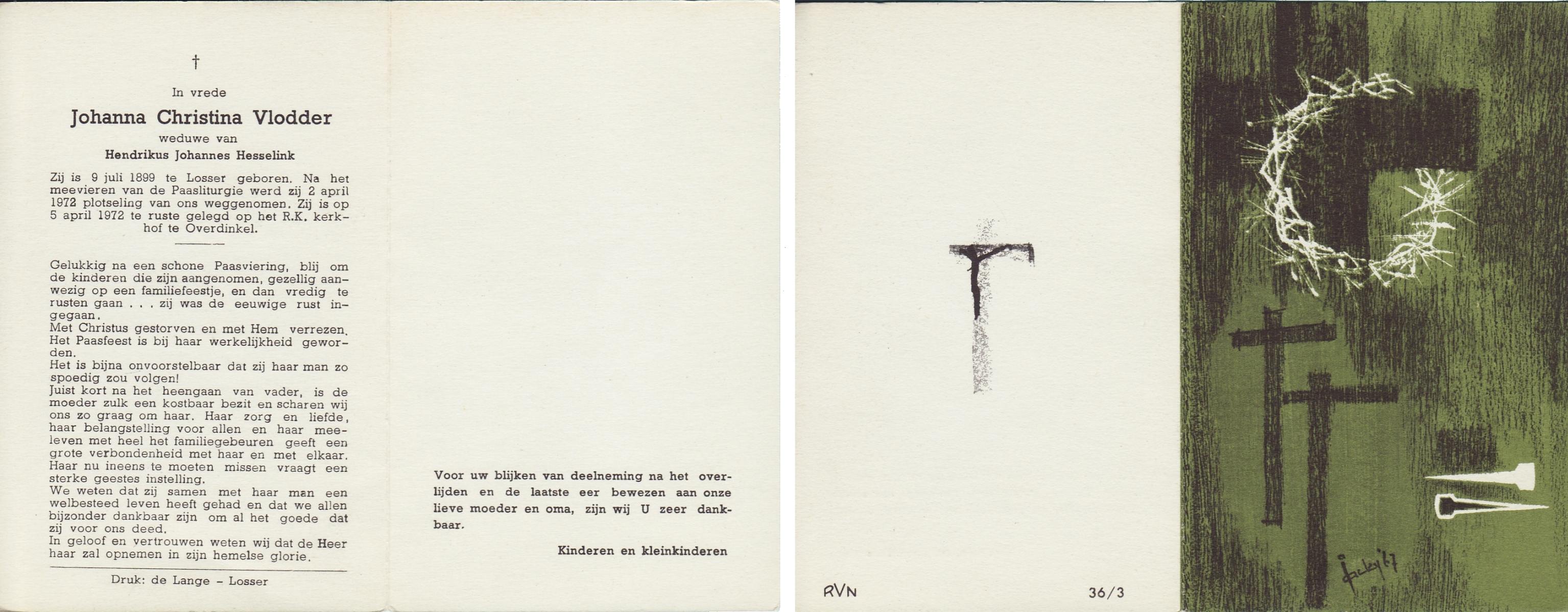 VLODDER, Johanna Christina, geboren op 09-07-1899 te Losser, overleden op 2-4-1972 op 72-jarige leeftijd, begraven op 5-4-1972 te Overdinkel.