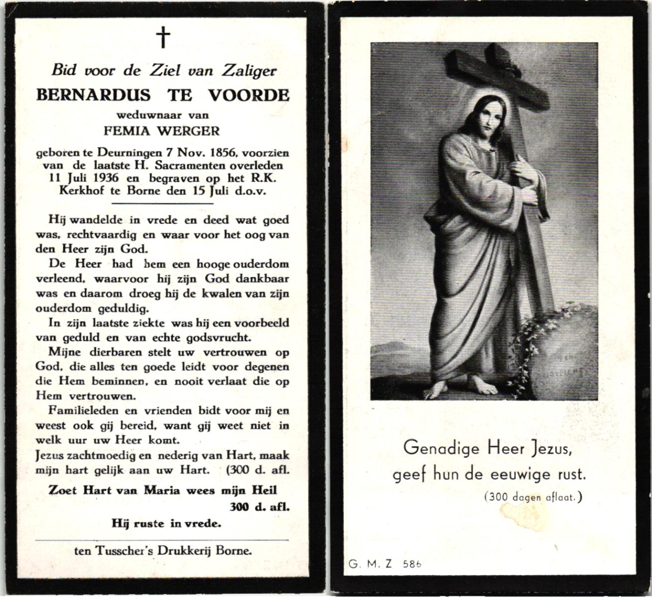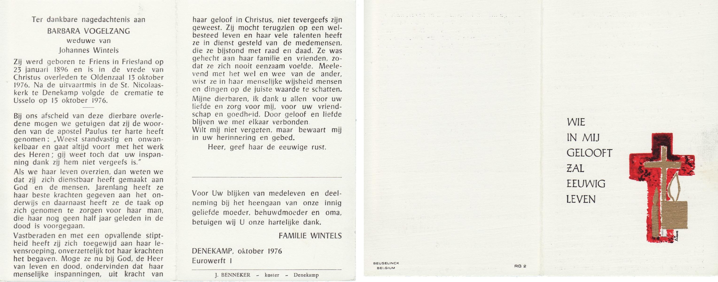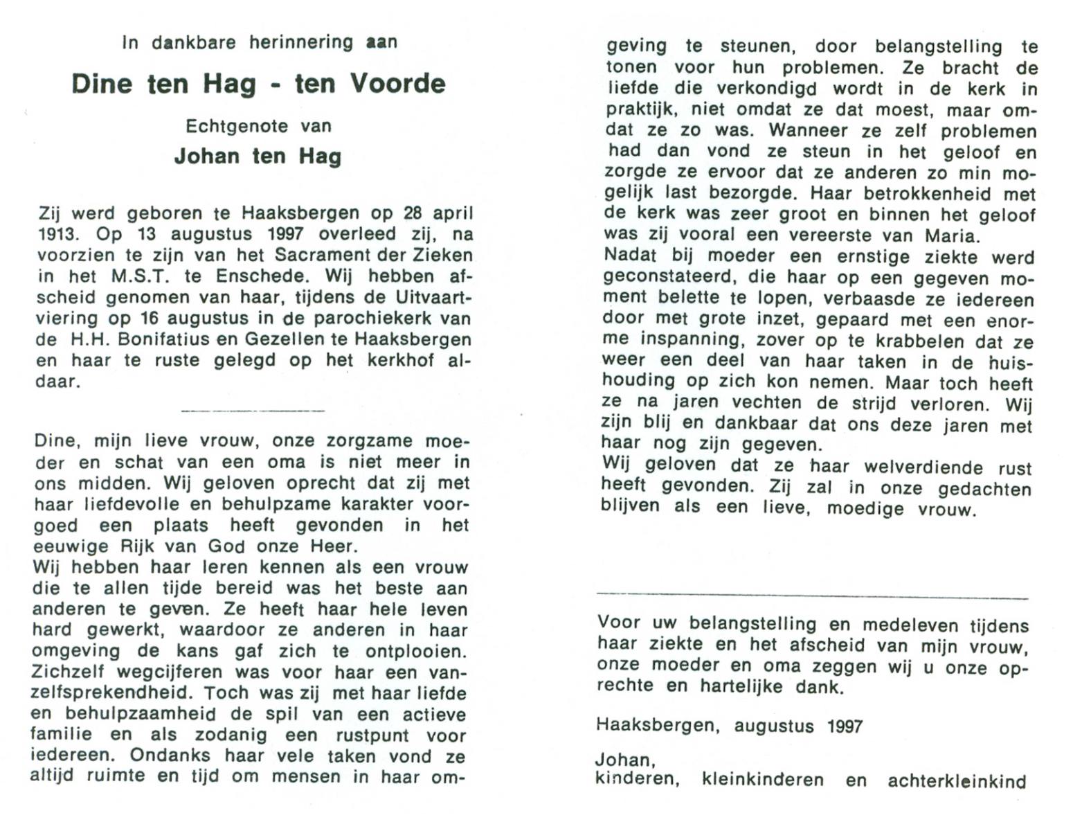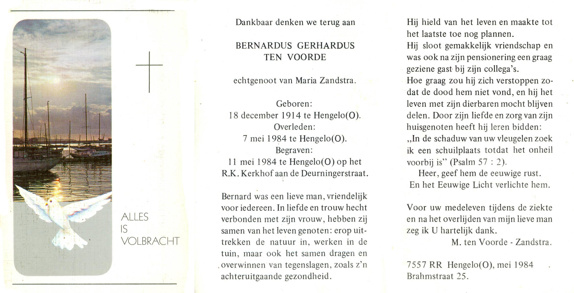 VLOEDBELD, Bernardina Gerharda, geboren op 2-8-1918 te Hertme, overleden op 26-3-1994 te Bornerbroek op 75-jarige leeftijd, begraven op 30-3-1994 te Bornerbroek.
