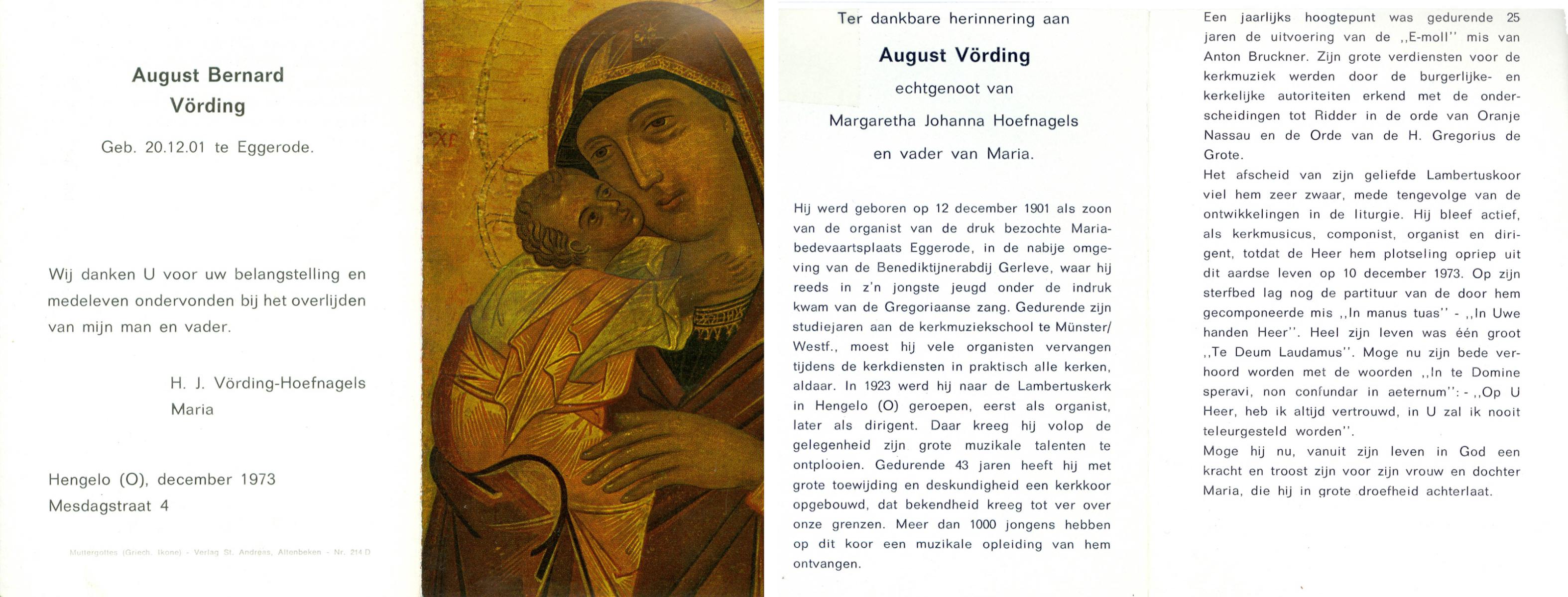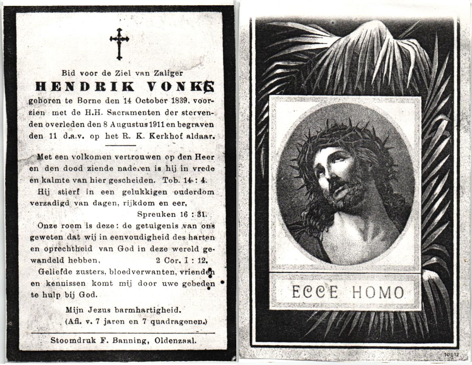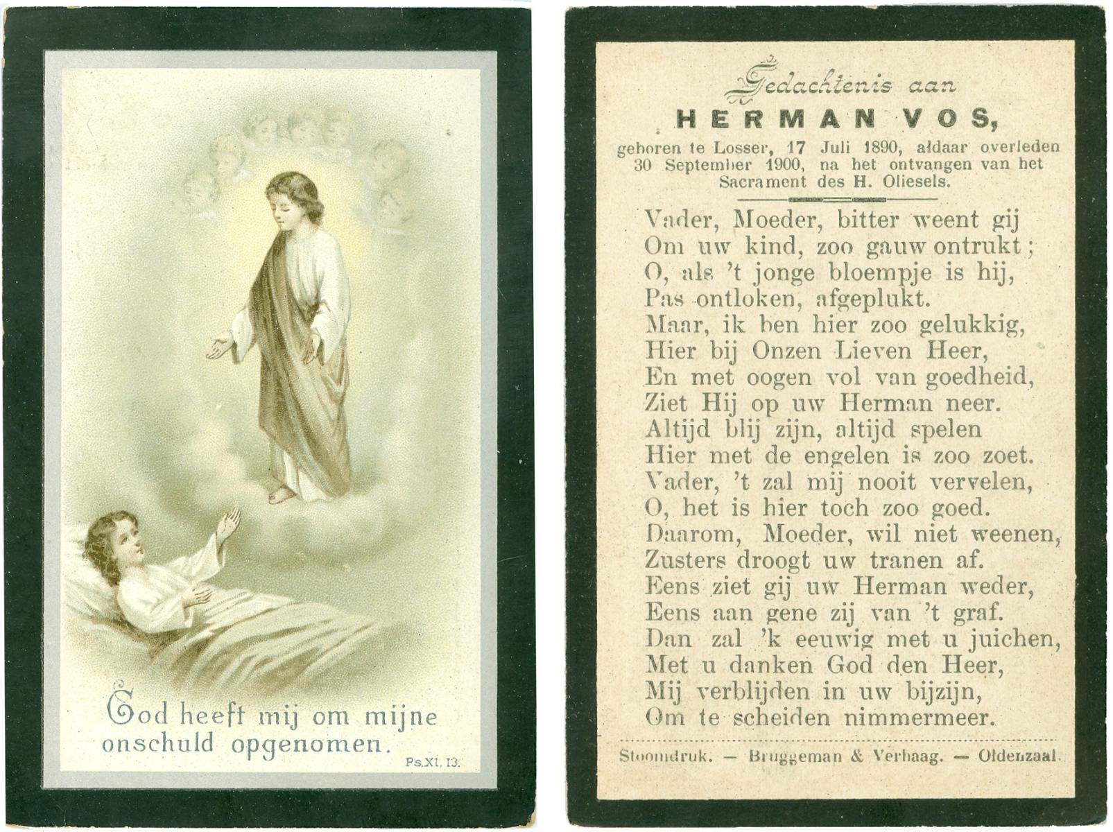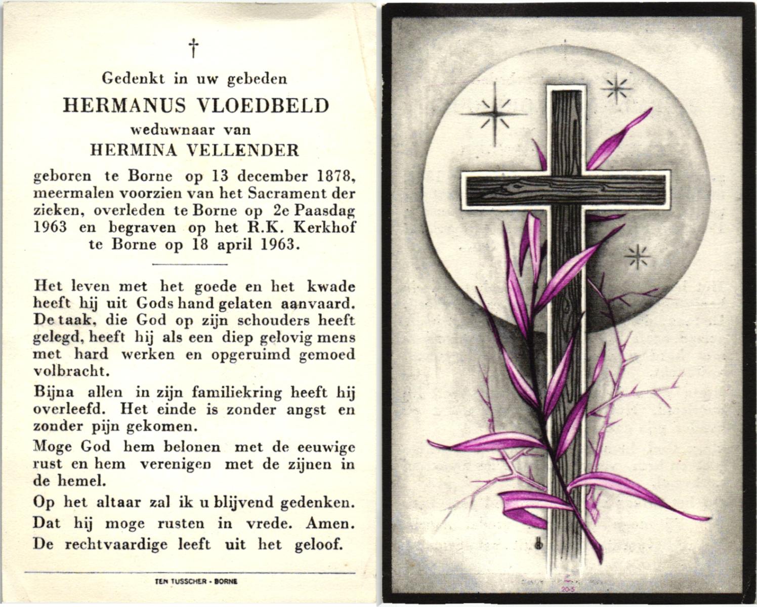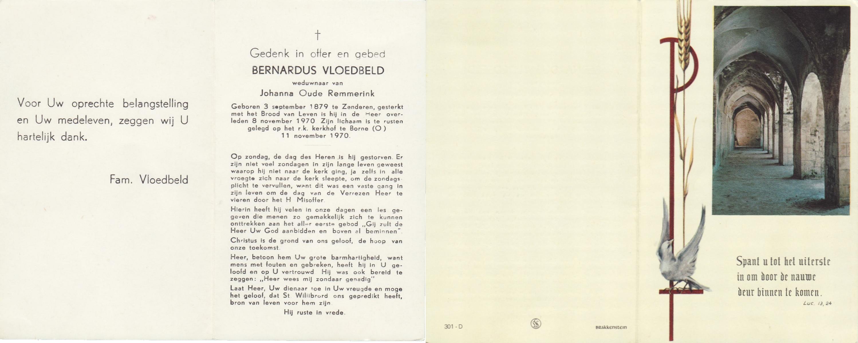 VLOEDBELD, Bernardus, geboren op 03-09-1879 te Zenderen, overleden op 8-11-1970 op 91-jarige leeftijd, begraven op 11-11-1970 te Borne.