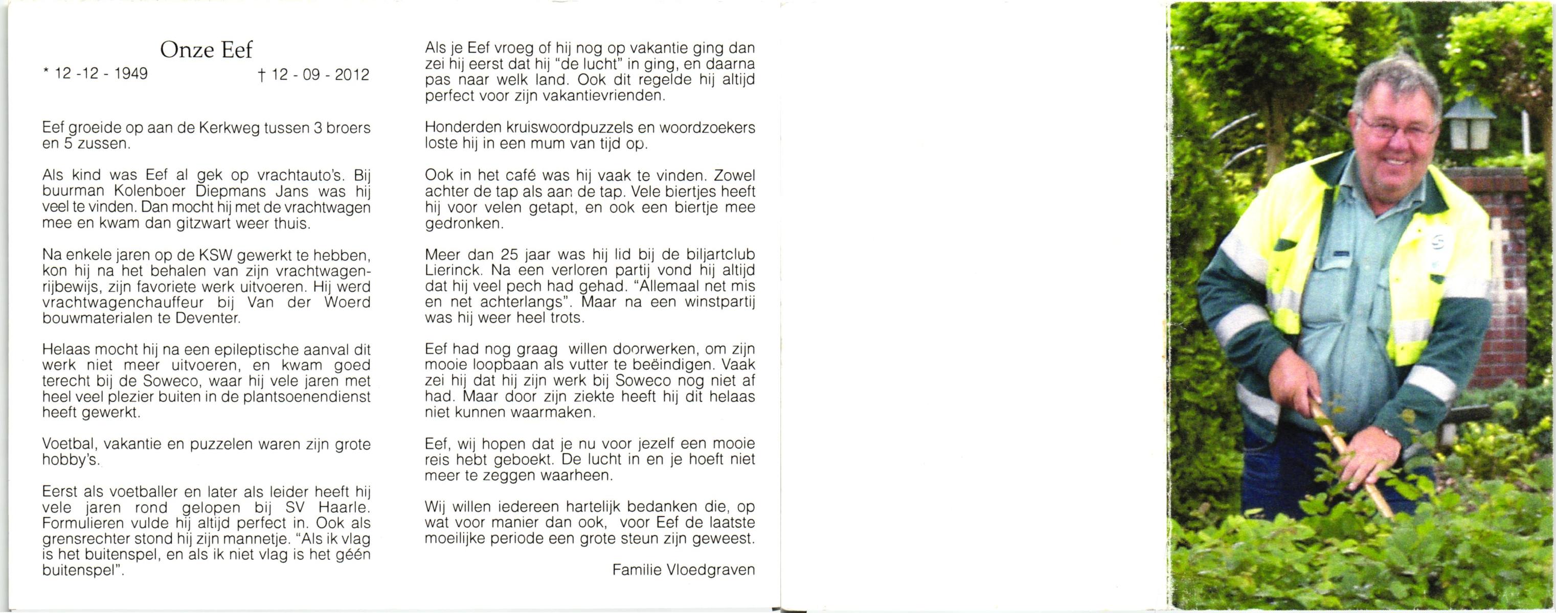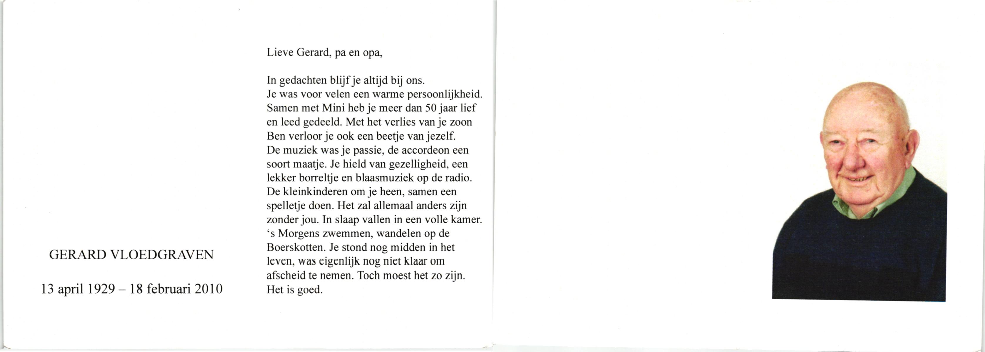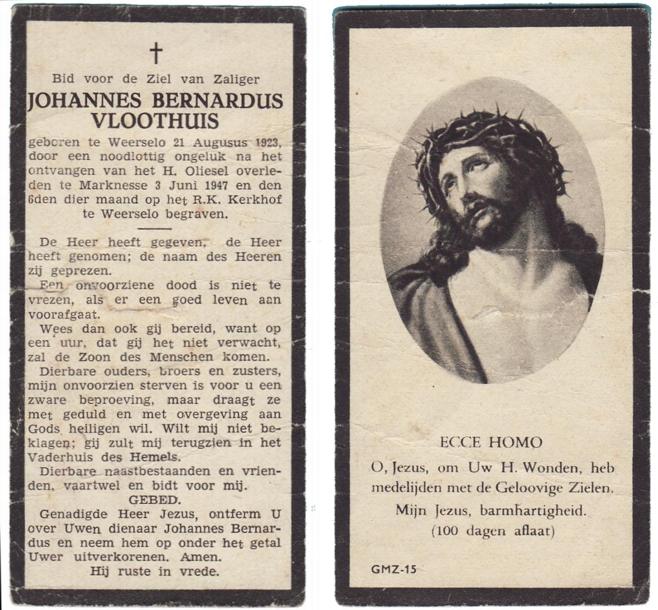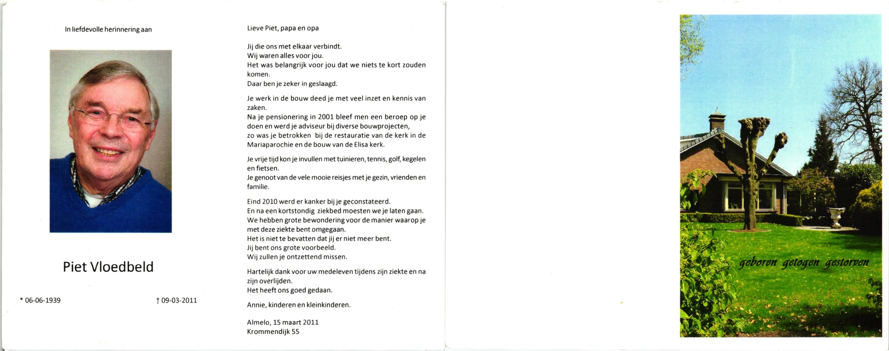 VLOEDBELD, Bernardus Gerhardus, geboren op 11-1-1907 te Almelo, Ambt, overleden op 12-2-2002 te Almelo op 95-jarige leeftijd.
