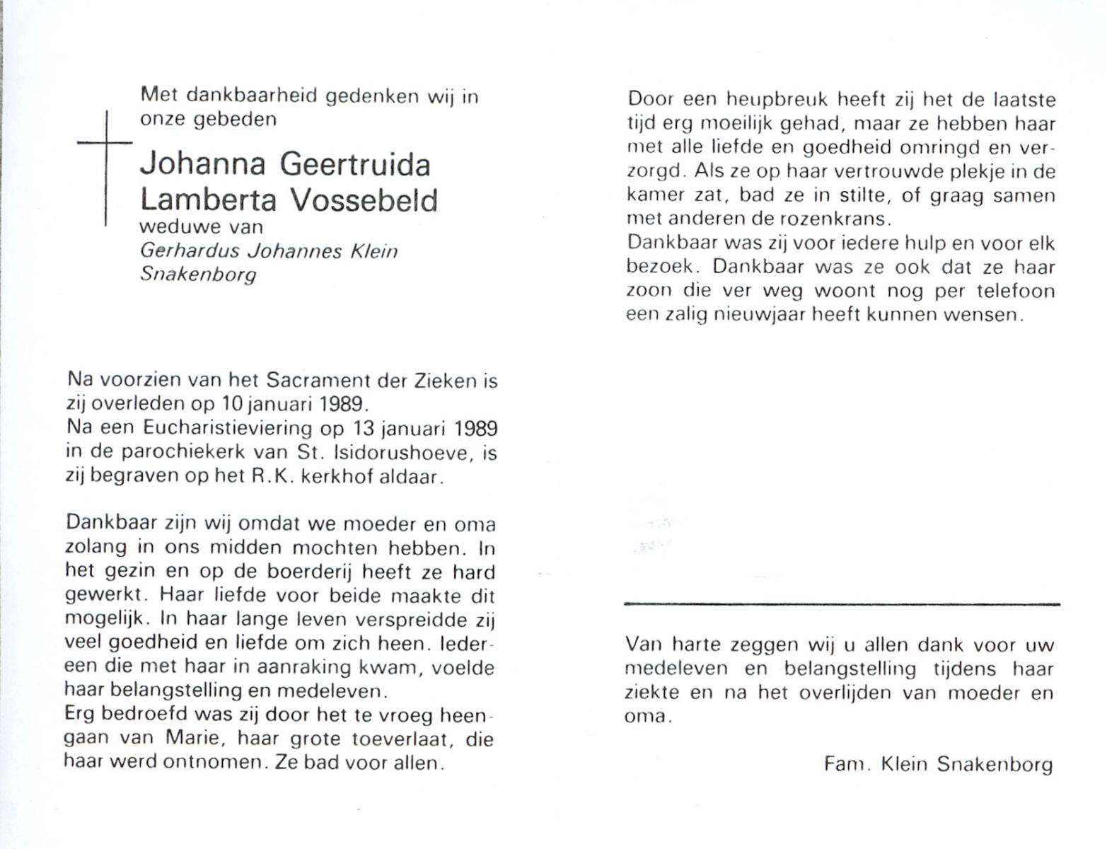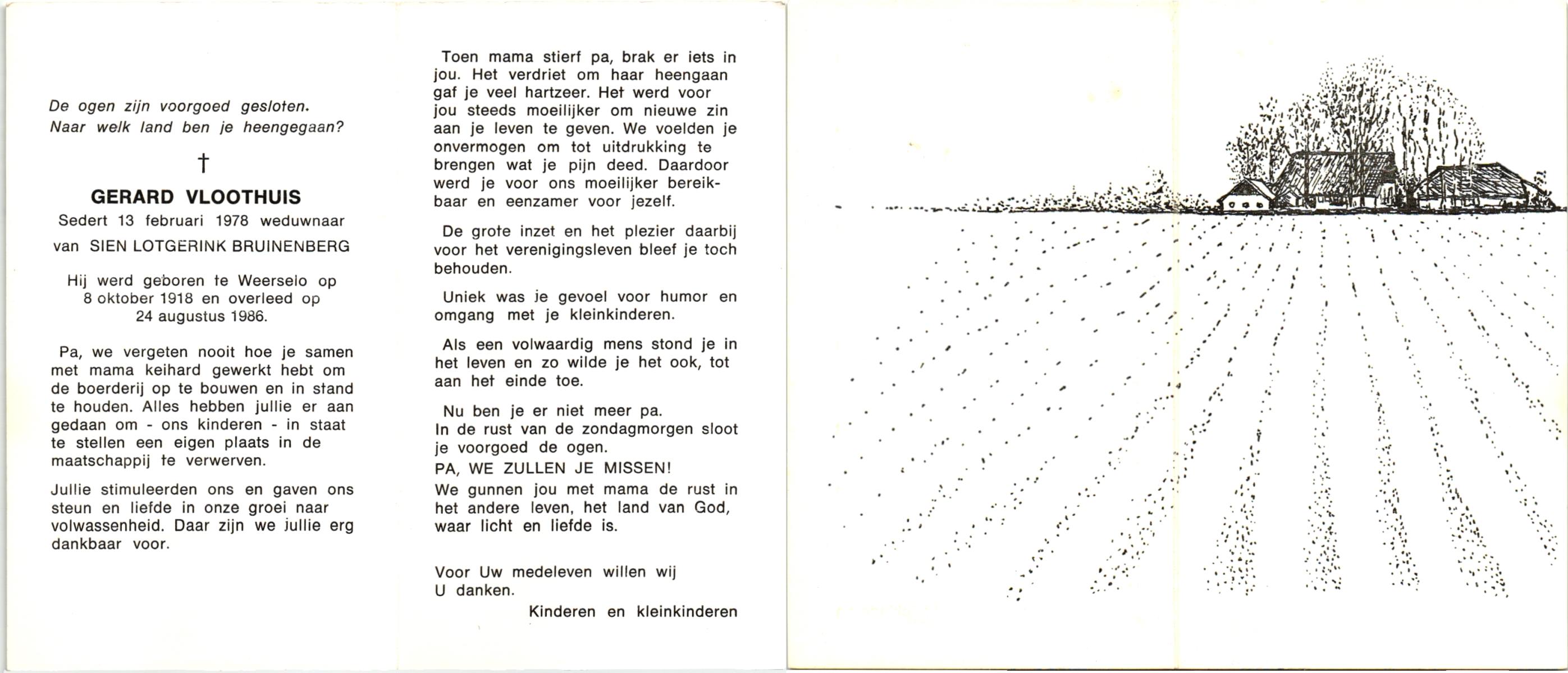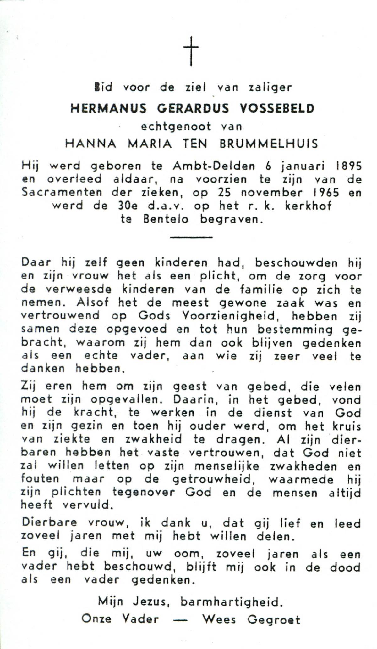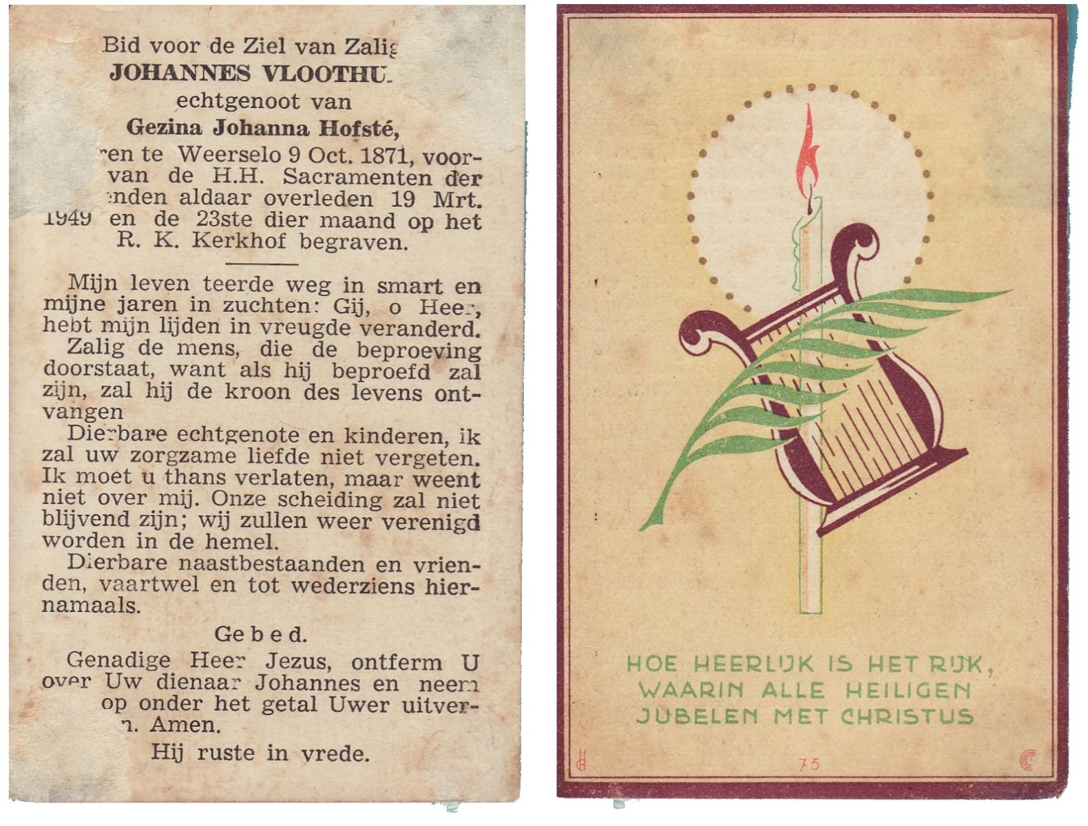 VLOEDBELD, Jan Hendrik Gerhardus, geboren op 9-3-1914 te Hertme, overleden op 22-1-1989 te Rossum op 74-jarige leeftijd, begraven op 26-1-1989 te Rossum.