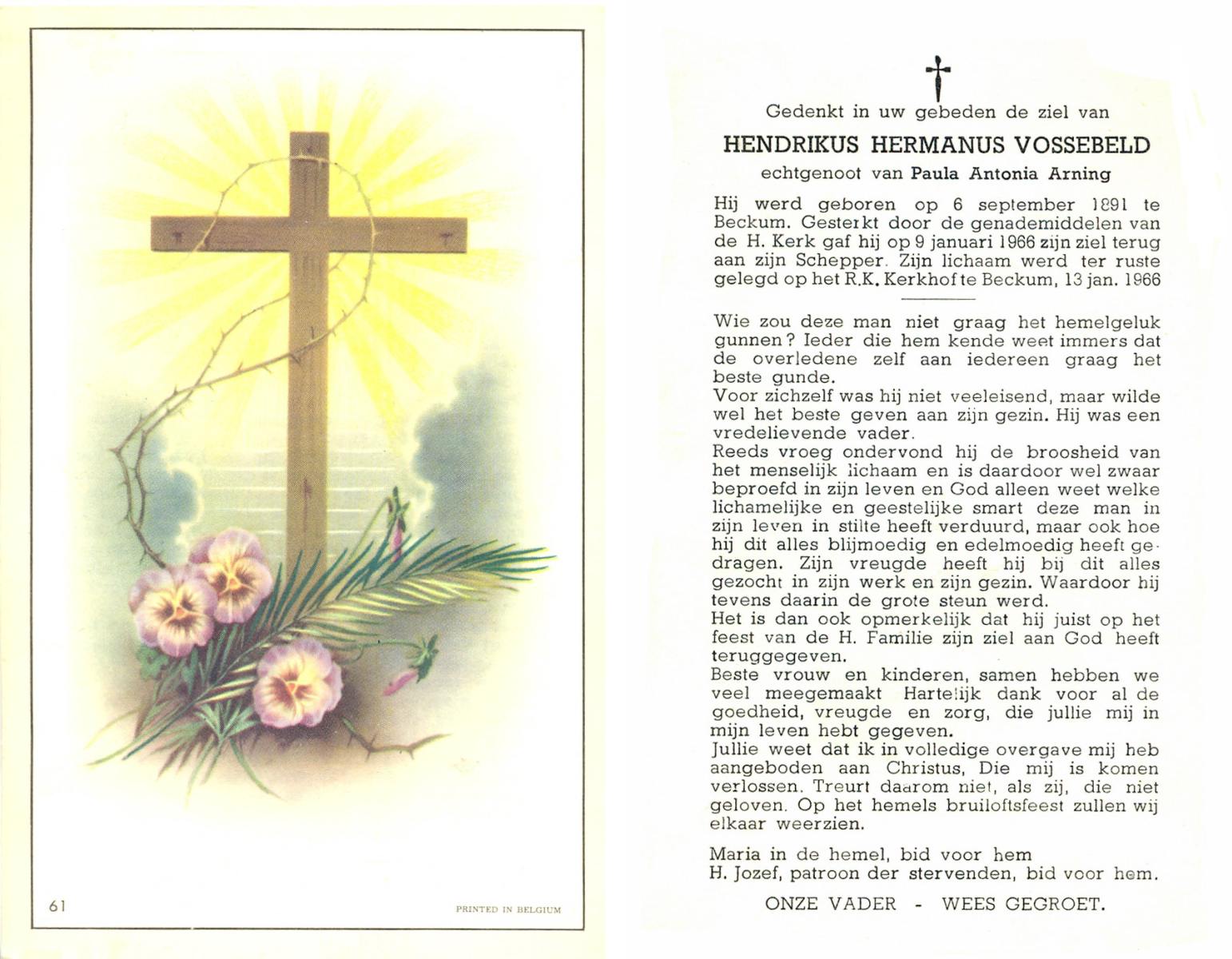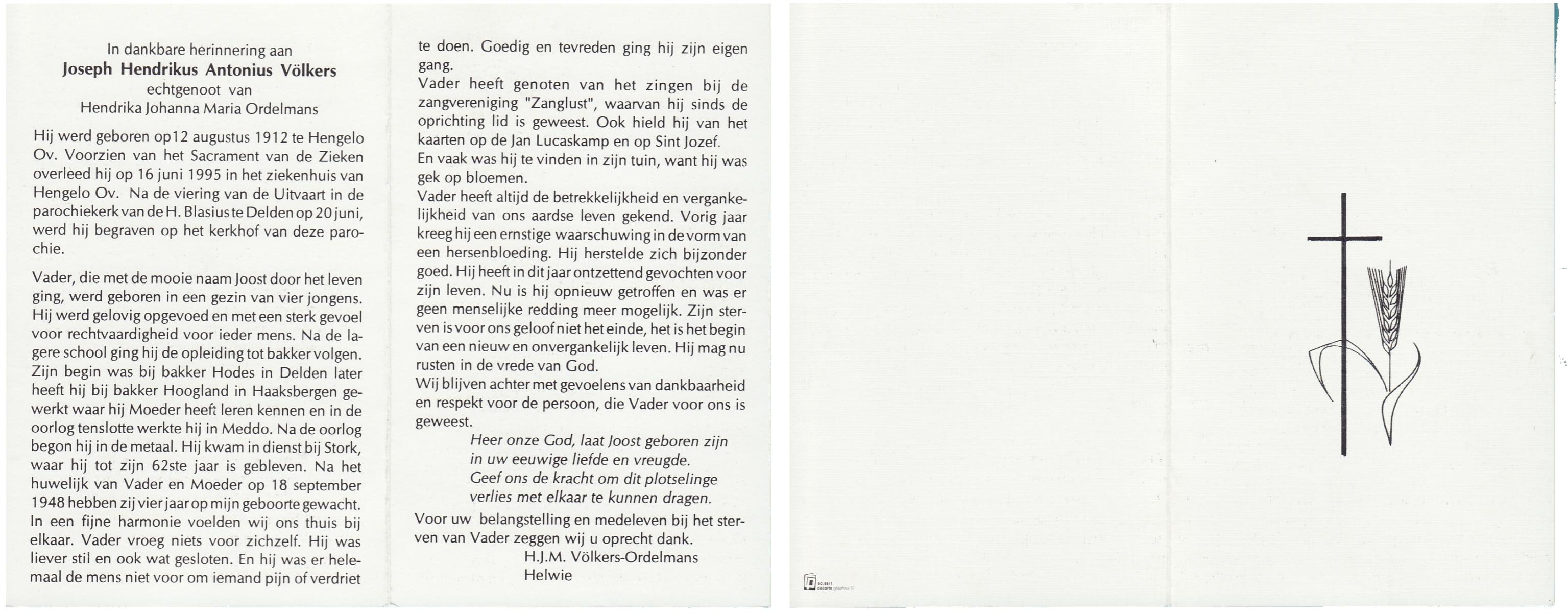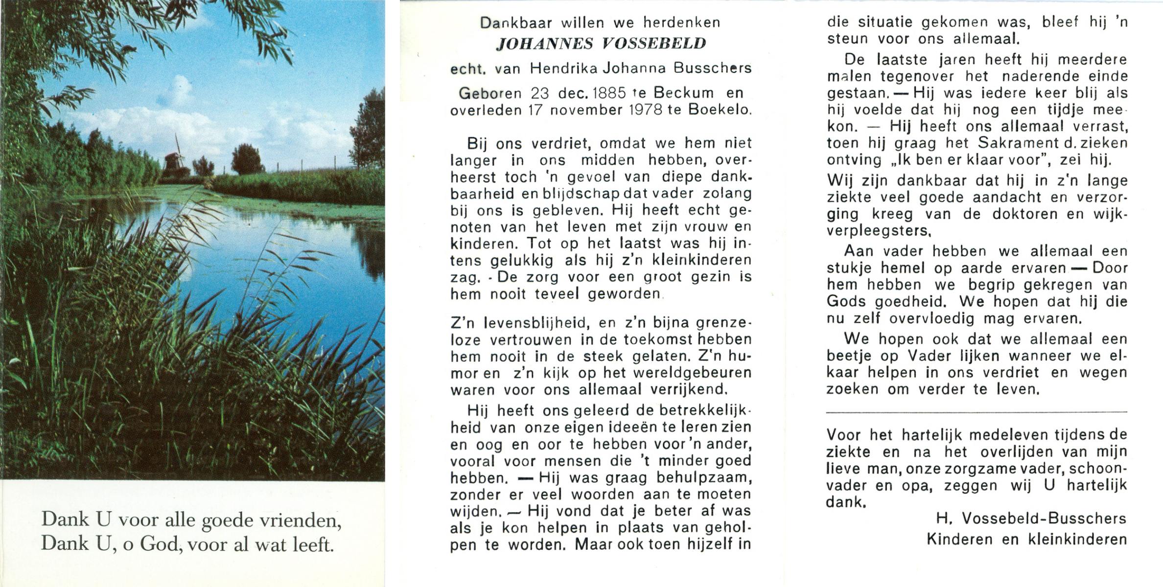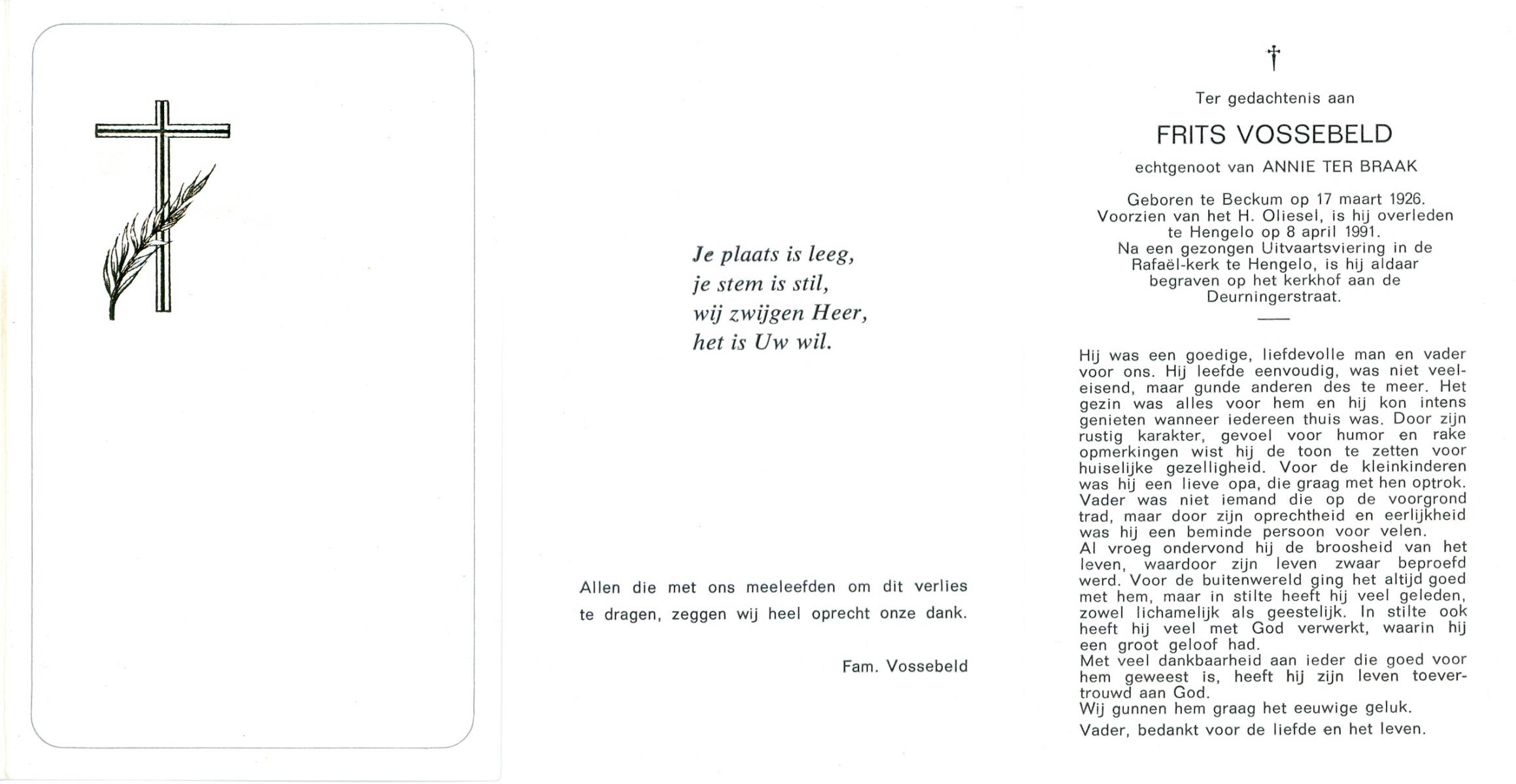 VLOEDBELD, Jan Hendrik Gerhardus, geboren op 9-3-1914 te Hertme, overleden op 22-1-1989 te Rossum op 74-jarige leeftijd, begraven op 26-1-1989 te Rossum.