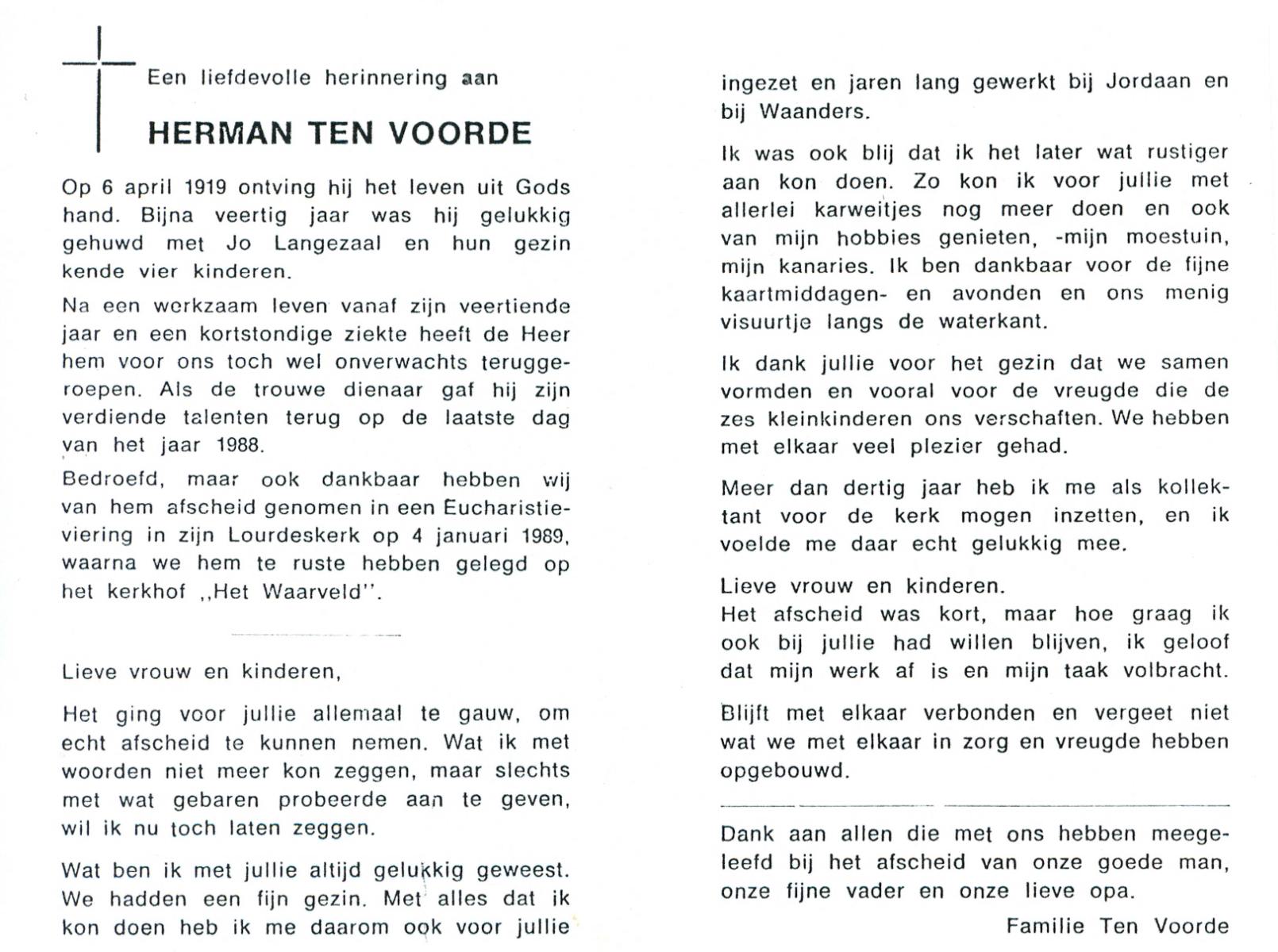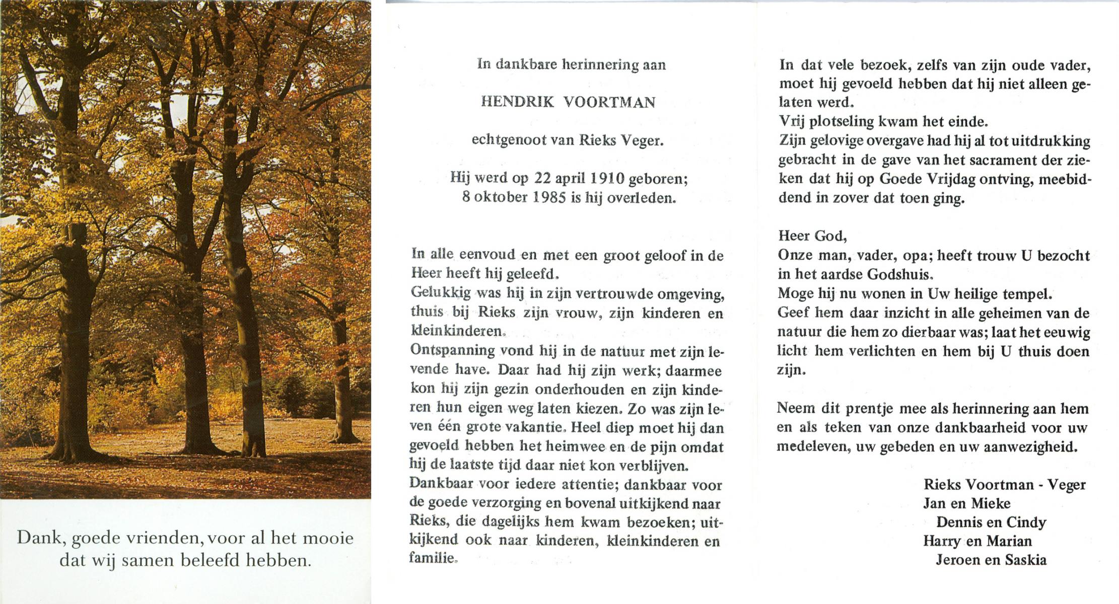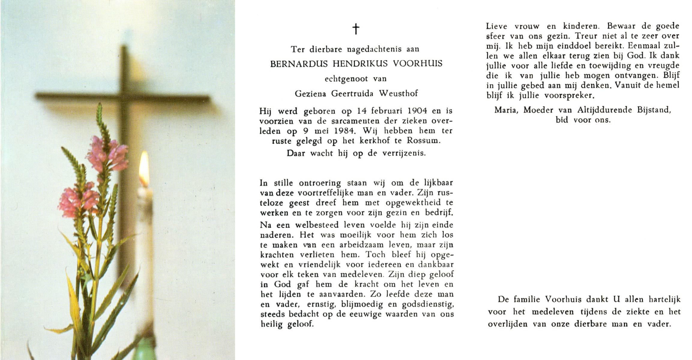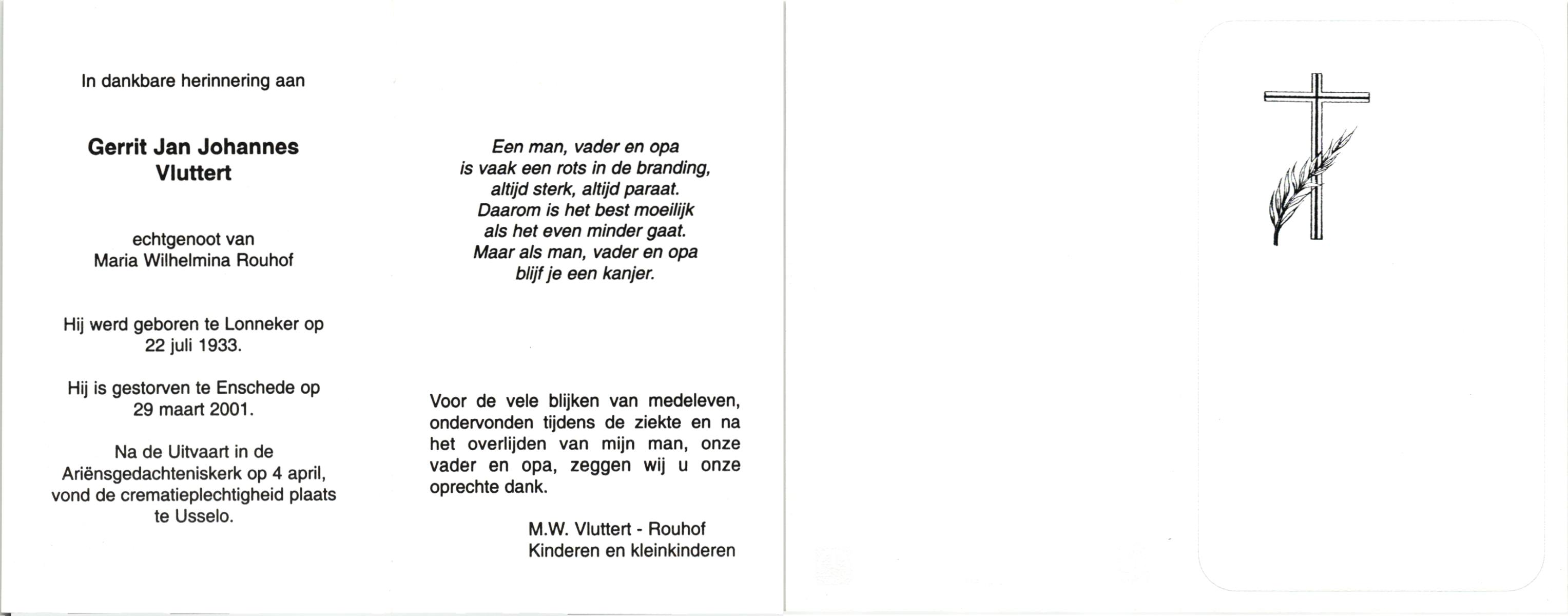 VLOEDBELD, Jan Hendrik Gerhardus, geboren op 9-3-1914 te Hertme, overleden op 22-1-1989 te Rossum op 74-jarige leeftijd, begraven op 26-1-1989 te Rossum.