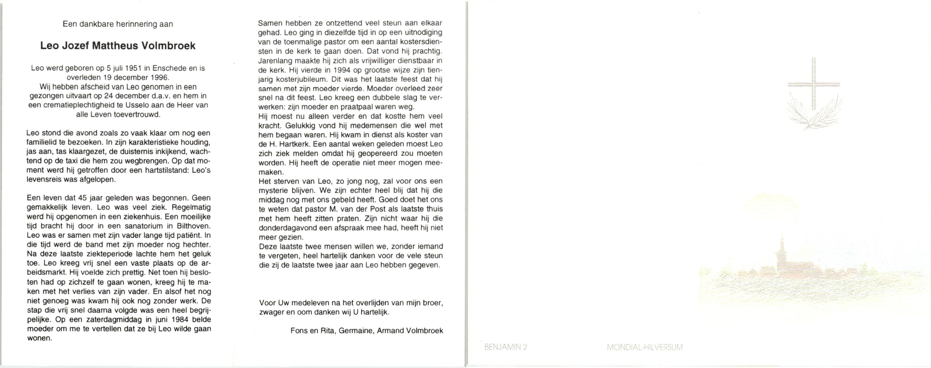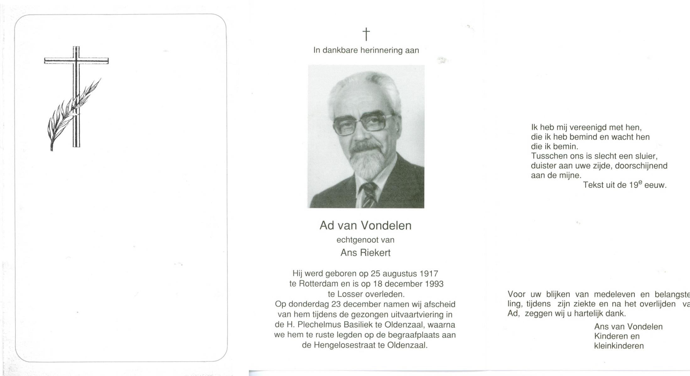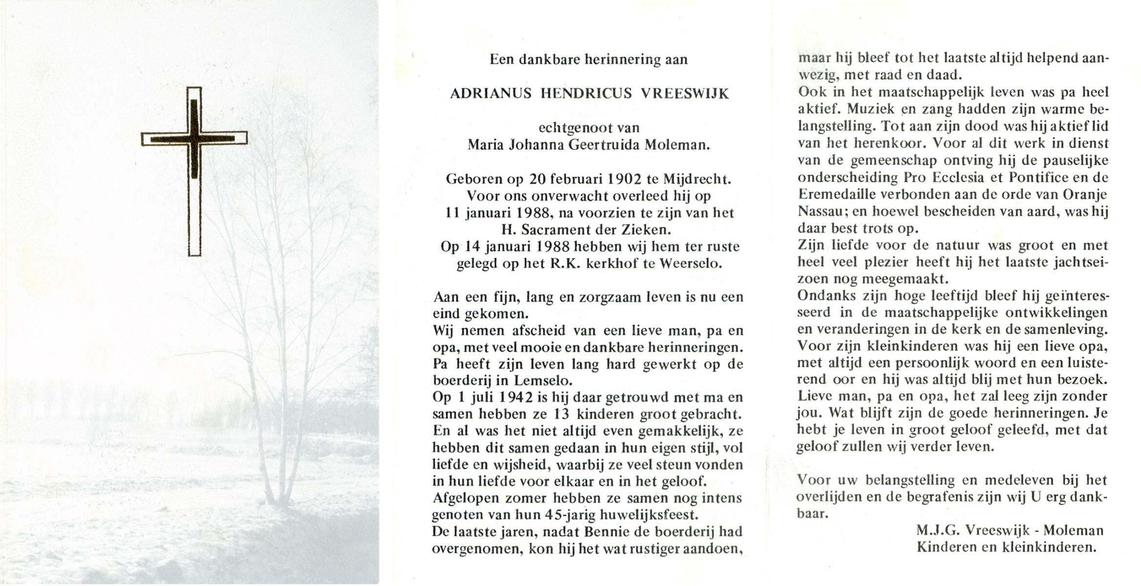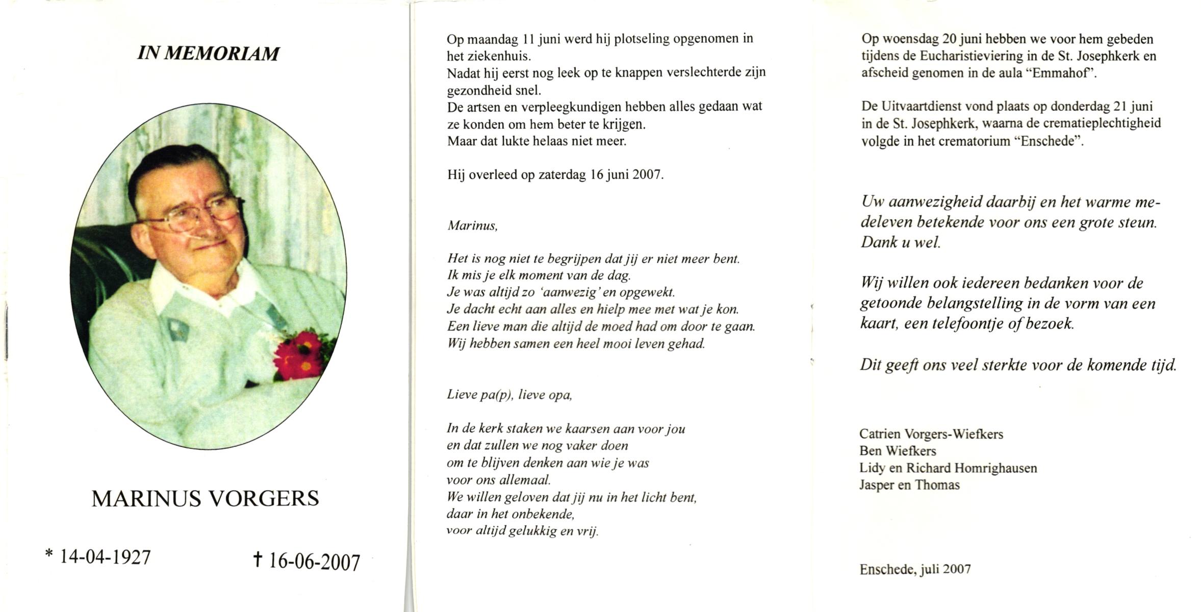 VRIJHOEVEN, Martinus Joseph, geboren op 10-3-1917 te Onstwedde, overleden op 24-10-1993 te Almelo op 76-jarige leeftijd, begraven op 29-10-1993 te Almelo.