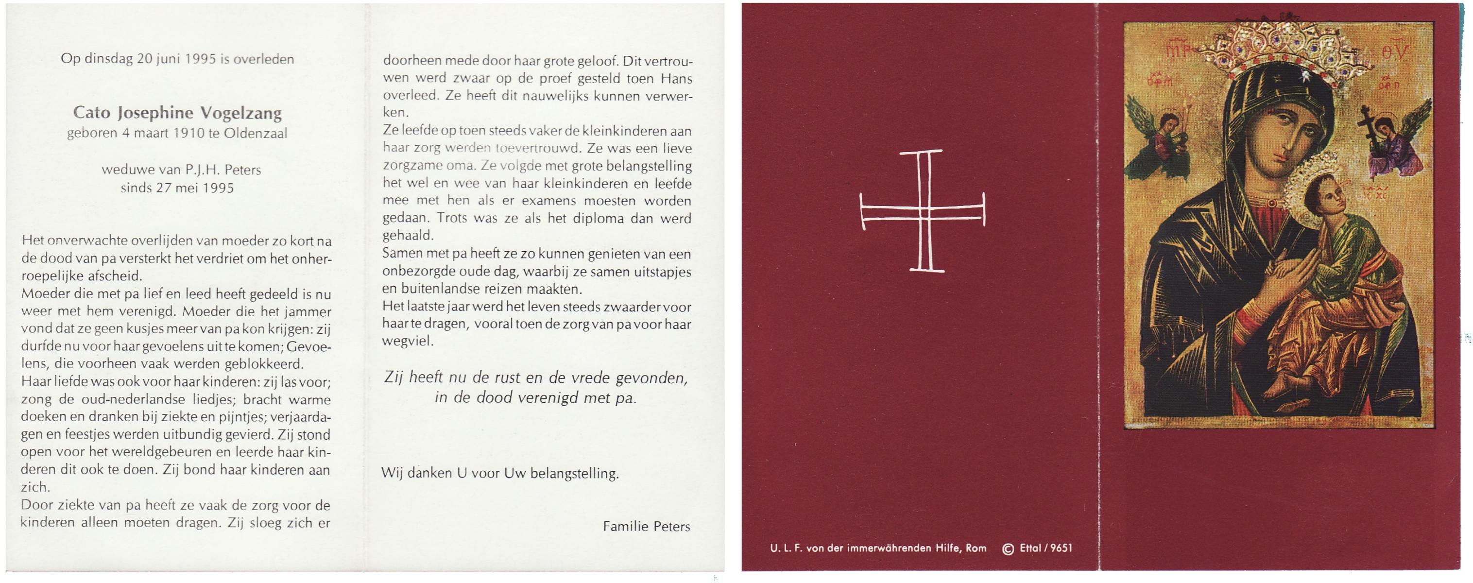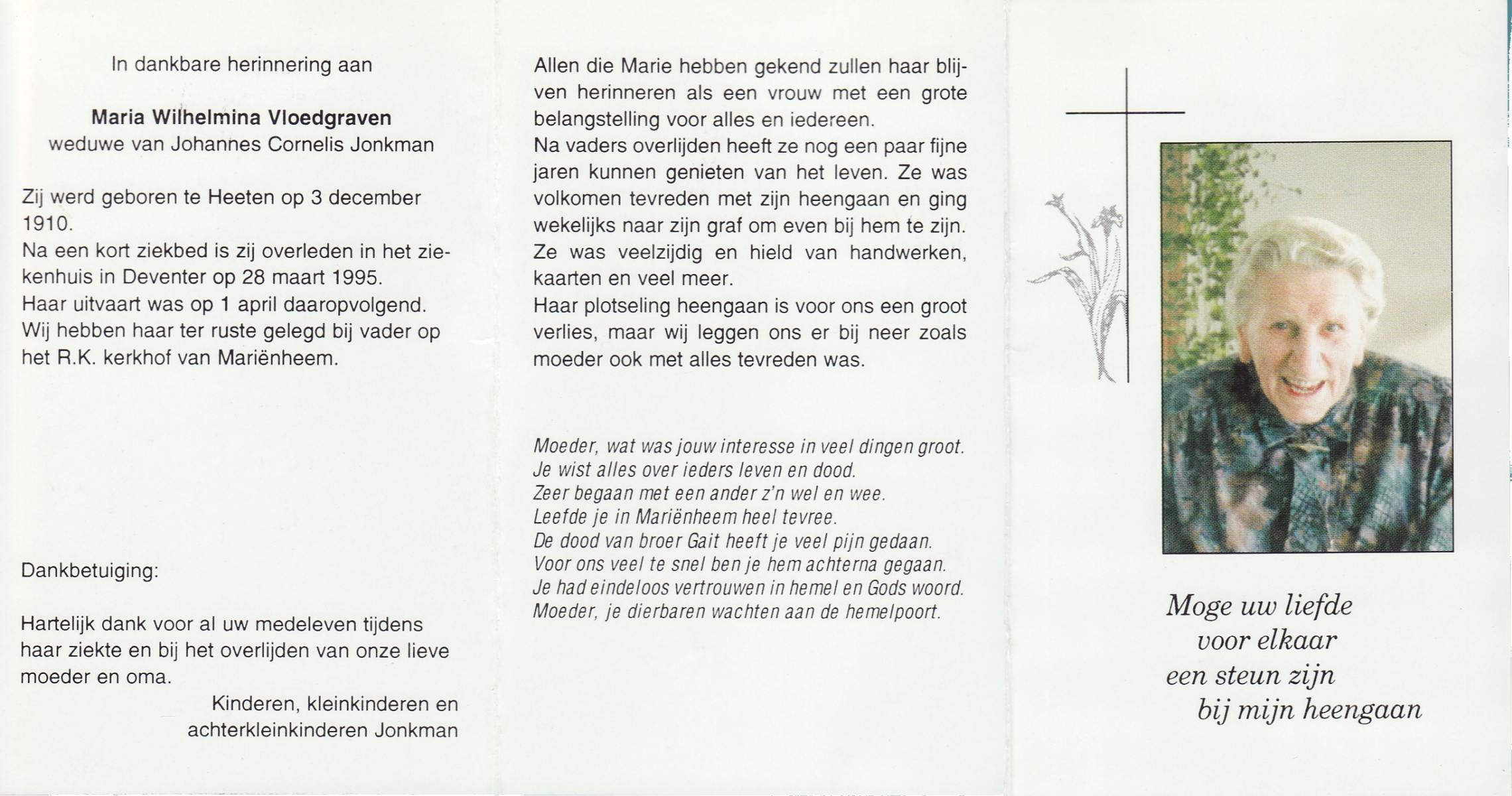VRIJKORTE, , Marietje, geboren op 15-3-1914 te Rossum, overleden op 14-1-1995 te Hengelo (O) op 80-jarige leeftijd, begraven op 18-1-1995 te Weerselo.