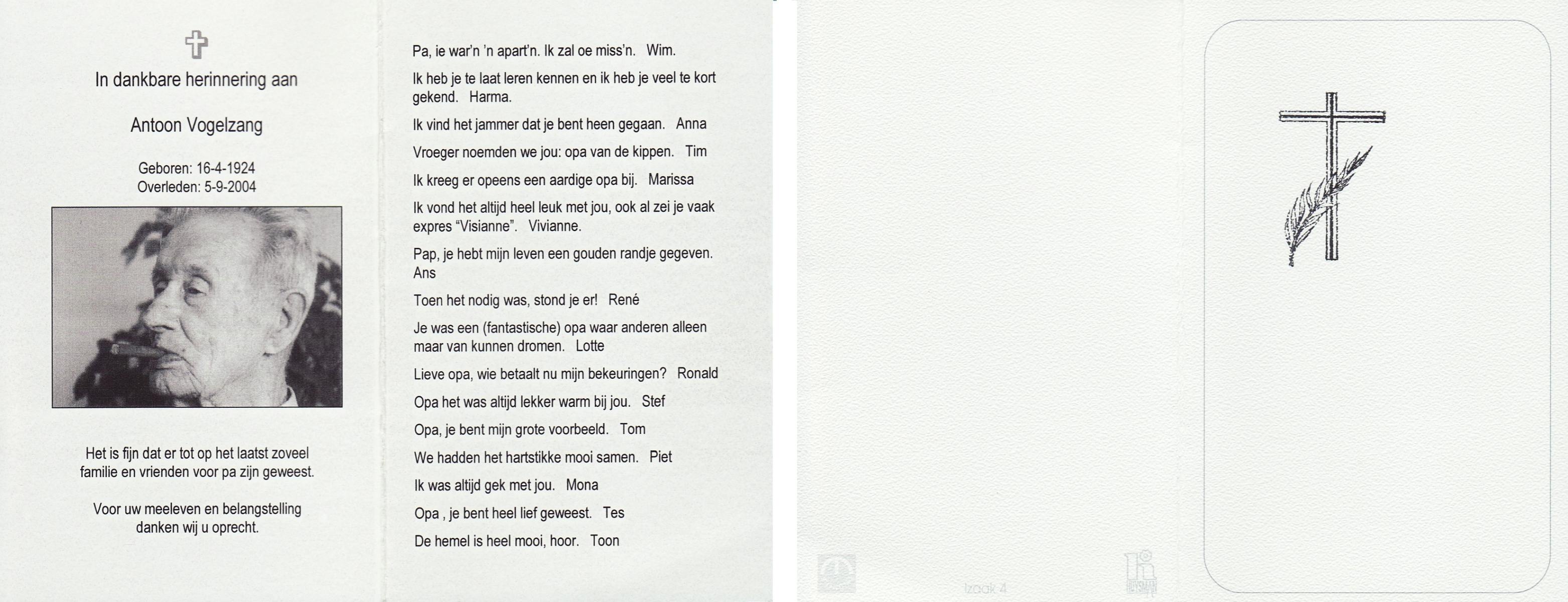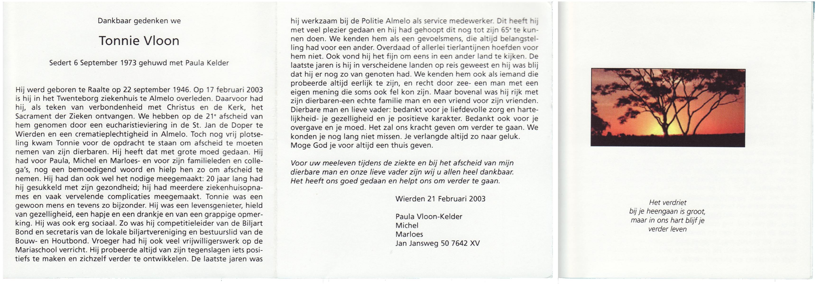 VLASKAMP, Tonnie, geboren op 20-6-1928 te Zenderen, overleden op 31-1-2003 op 74-jarige leeftijd, begraven op 5-2-2003 te Zenderen.