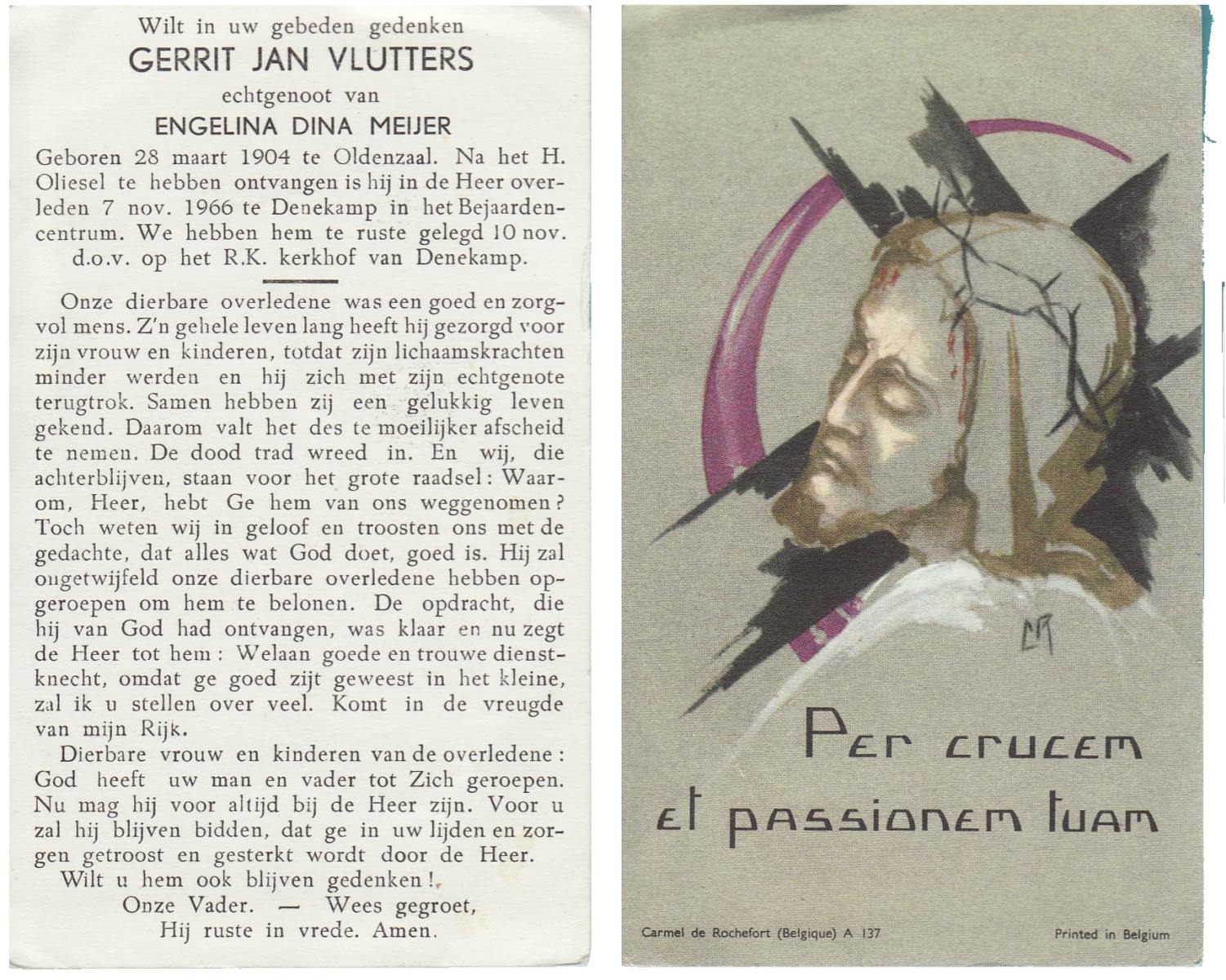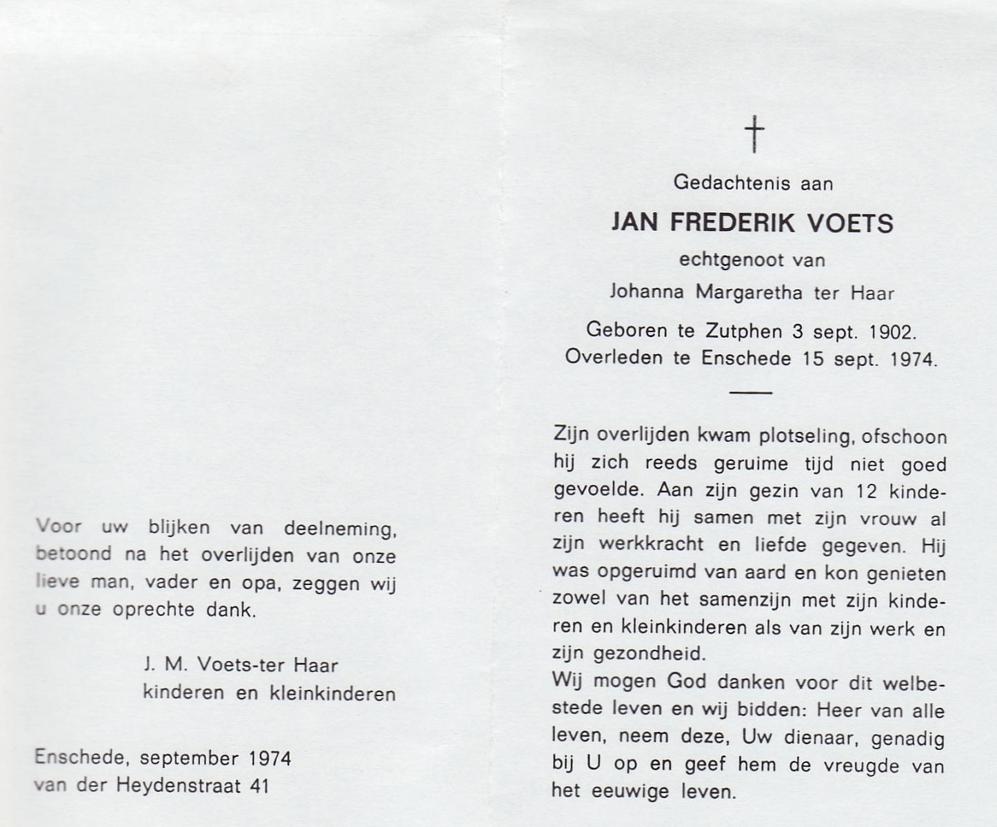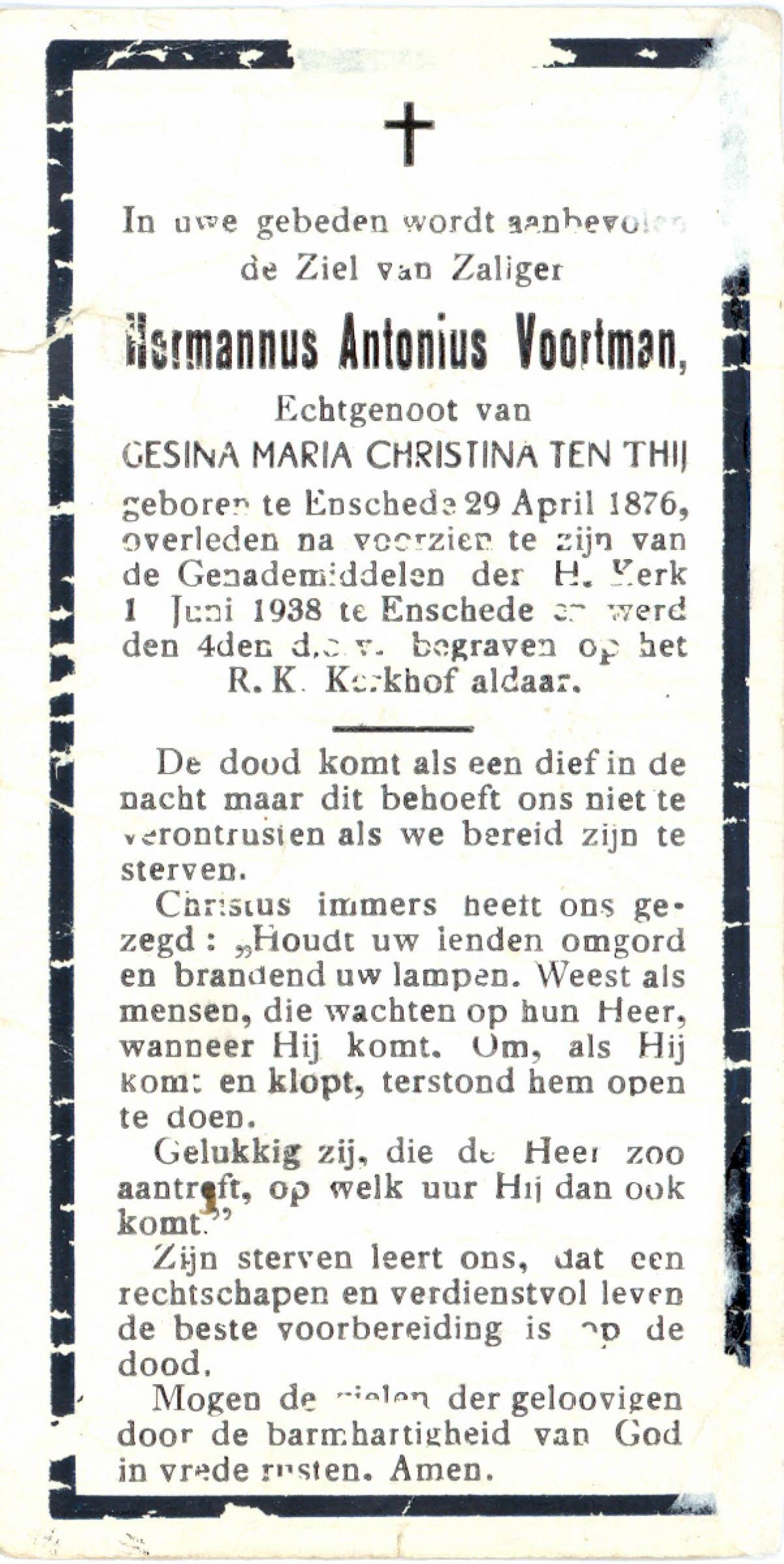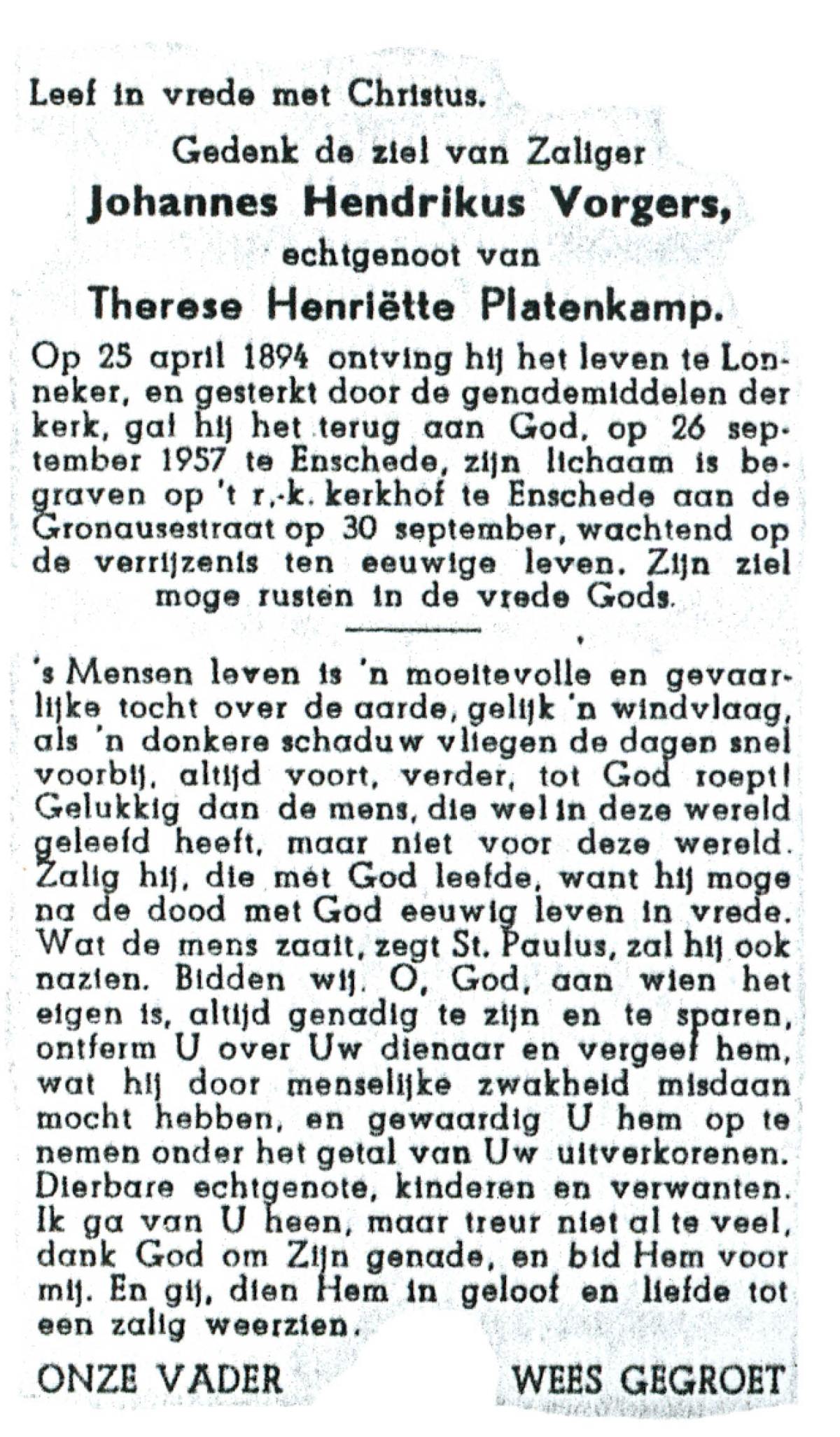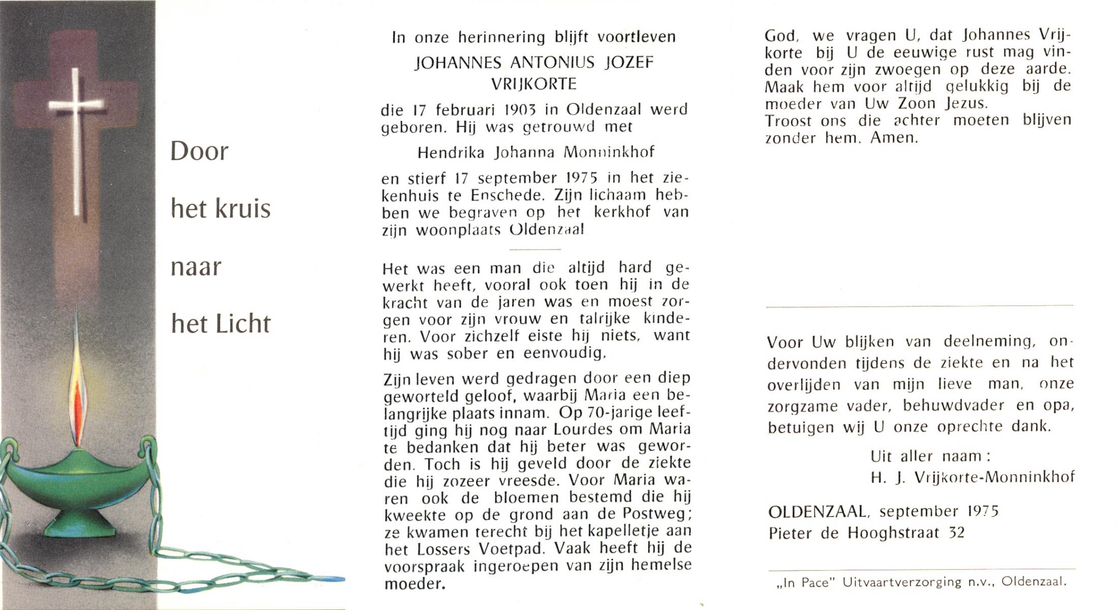 VRIJKORTE, Johannes Antonius, geboren op 17-2-1903 te Oldenzaal, overleden op 17-9-1975 te Enschede op 72-jarige leeftijd, begraven te Oldenzaal.