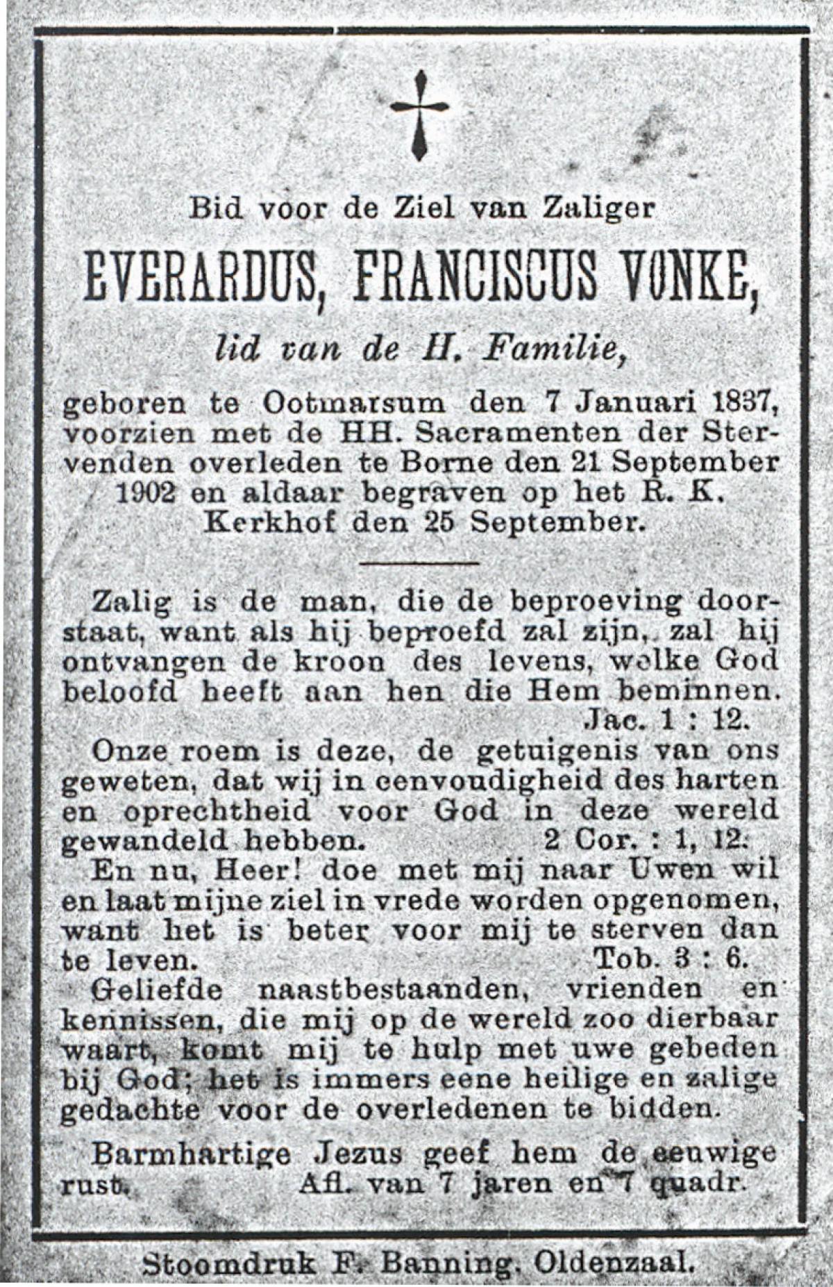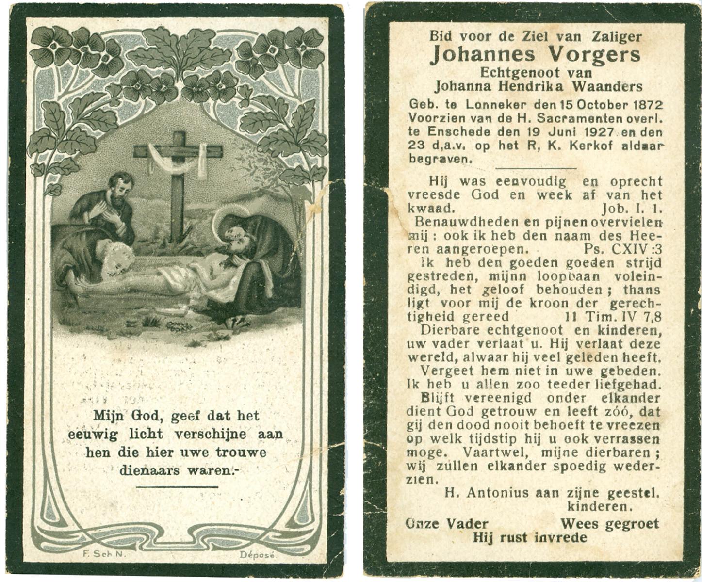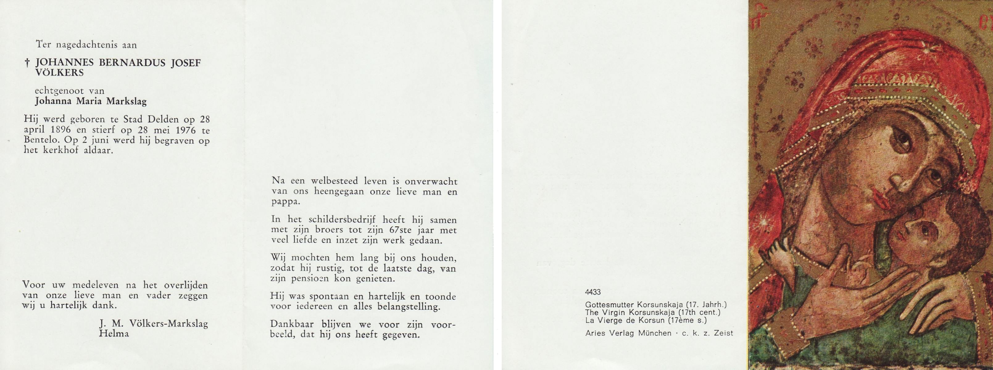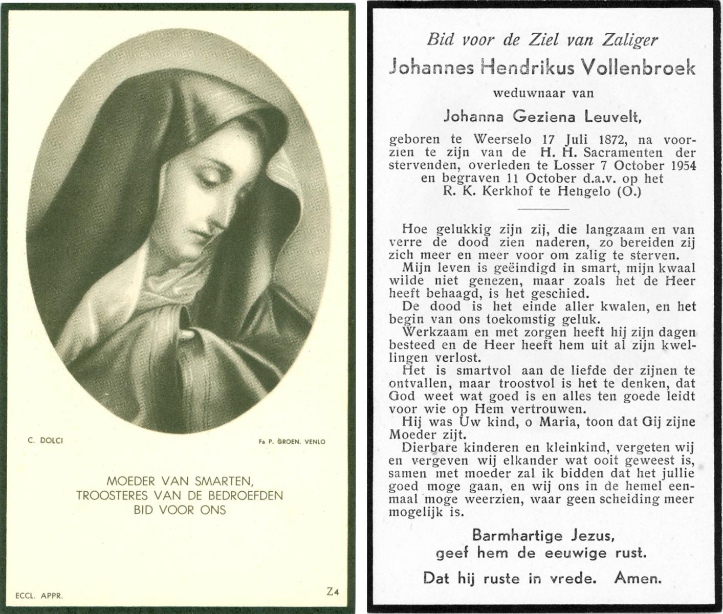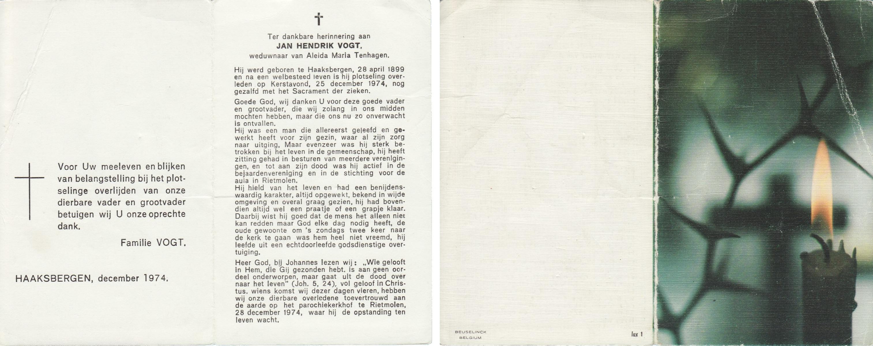 VRIJKORTE, Johannes Antonius, geboren op 17-2-1903 te Oldenzaal, overleden op 17-9-1975 te Enschede op 72-jarige leeftijd, begraven te Oldenzaal.