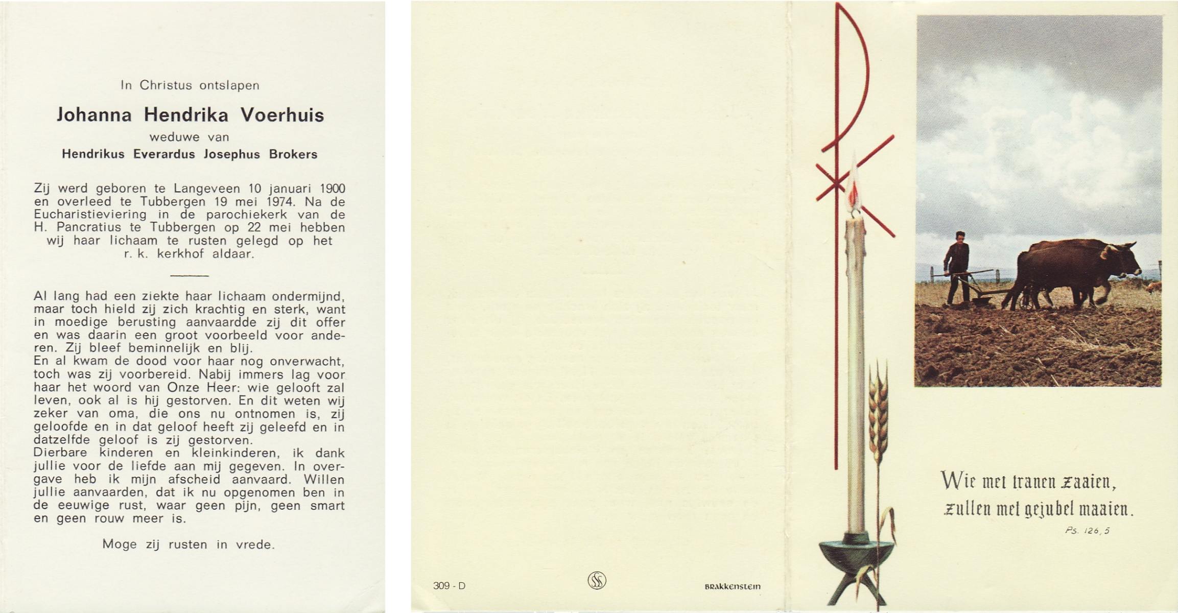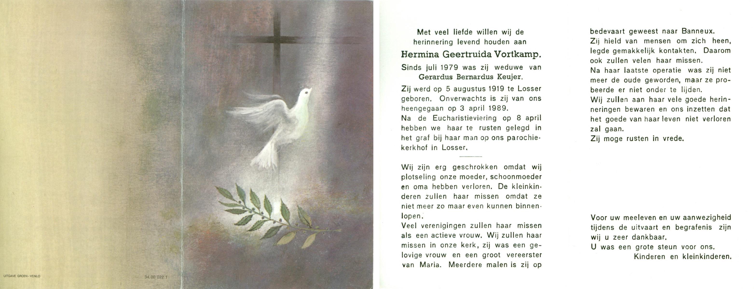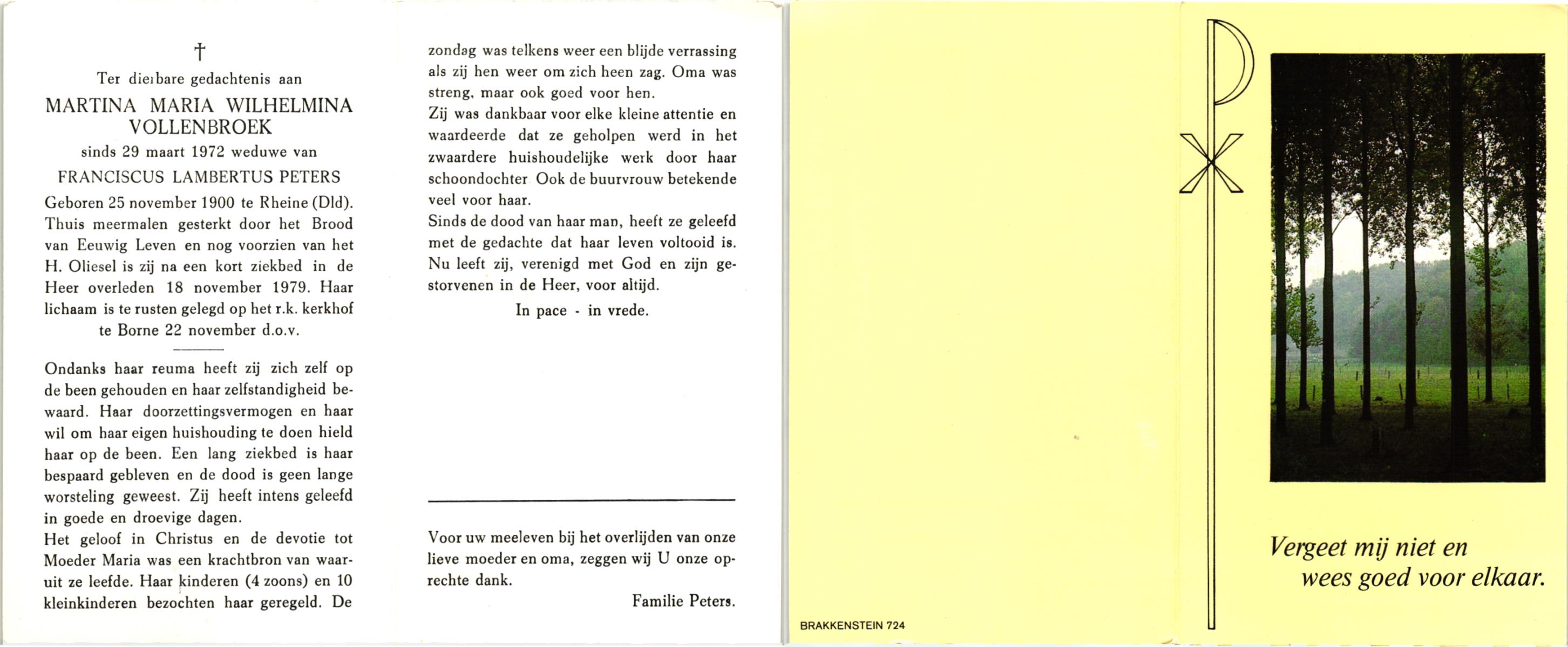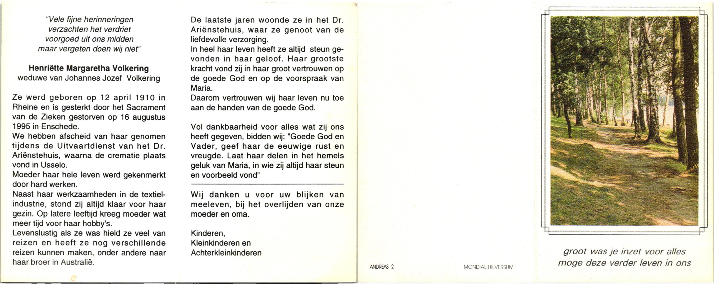 VRERINK, Maria Johanna, geboren op 5-10-1923 te Tubbergen, overleden op 14-4-1990 te Hengelo op 66-jarige leeftijd, begraven op 18-4-1990 te Hengelo.