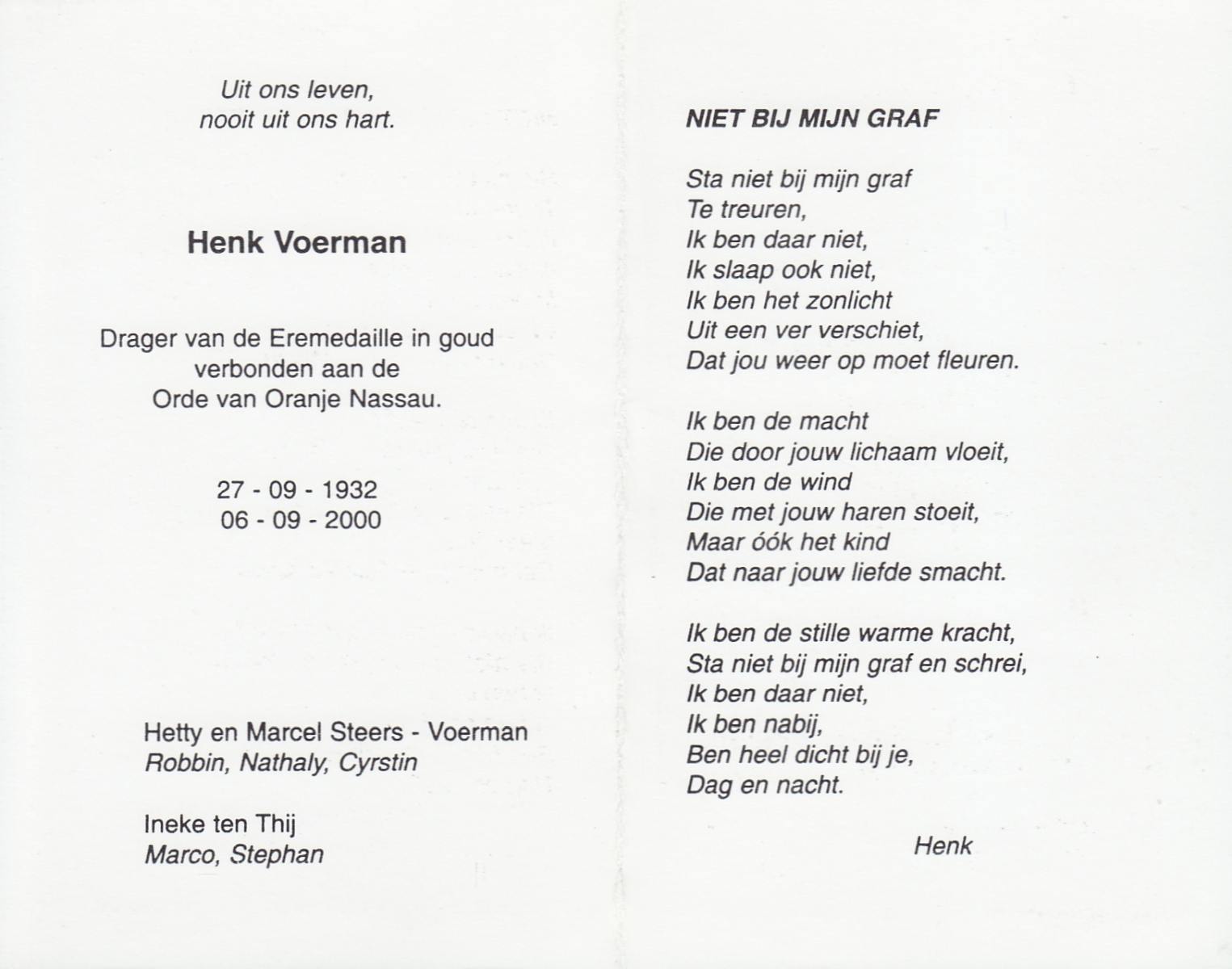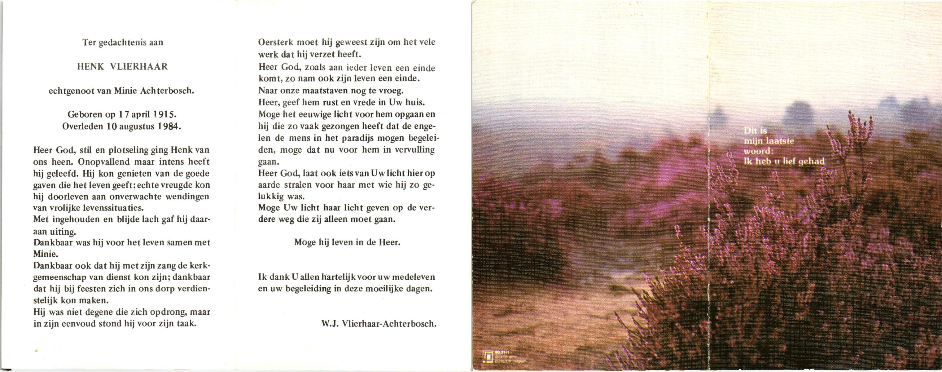 VLIERHAAR, Henk, geboren op 17-4-1915, overleden op 10-8-1984 op 69-jarige leeftijd.