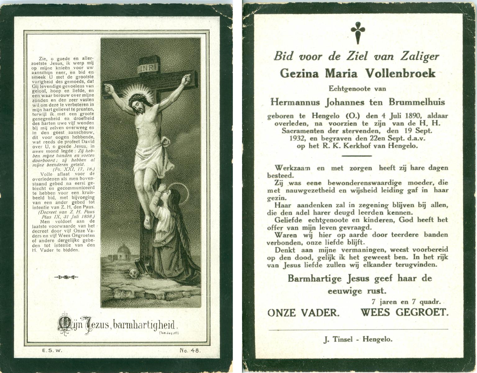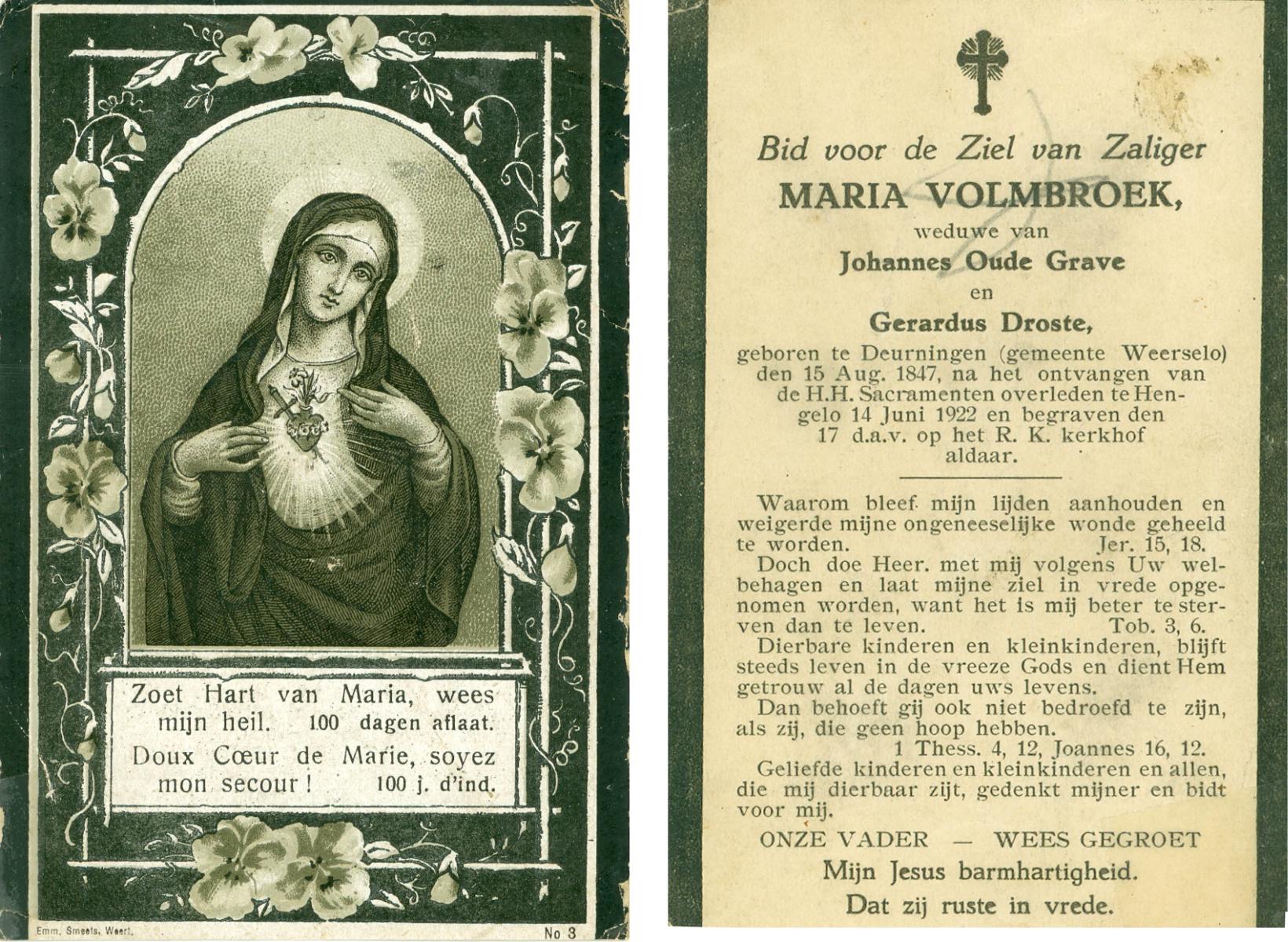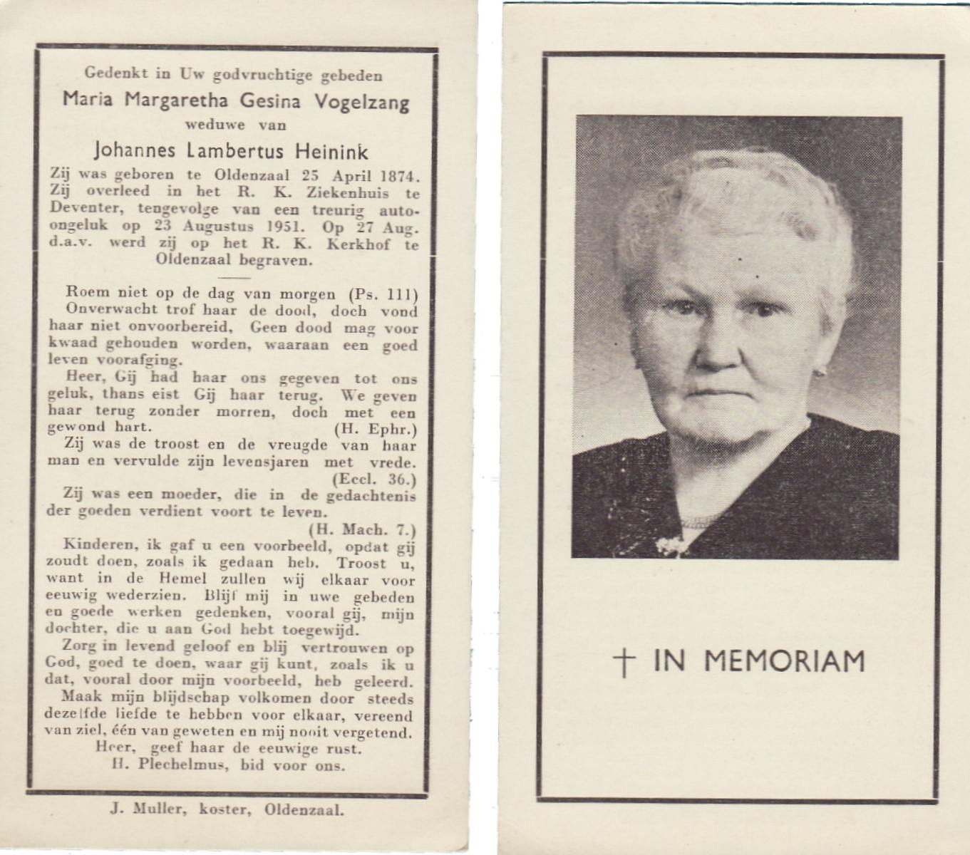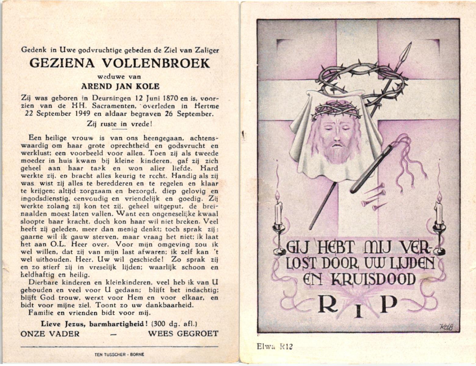 VRIELINK, Maria, geboren op 19-10-1883 te De Lutte, overleden op 30-8-1958 te De Lutte op 74-jarige leeftijd, begraven op 3-9-1958 te De Lutte.