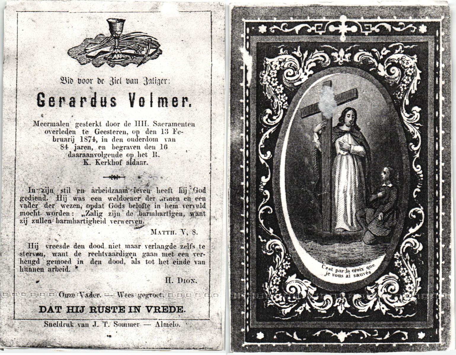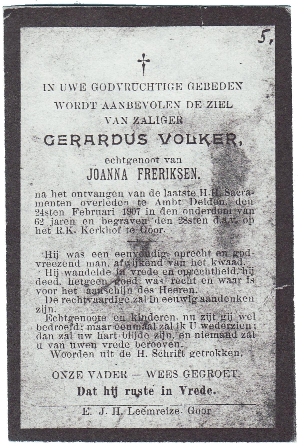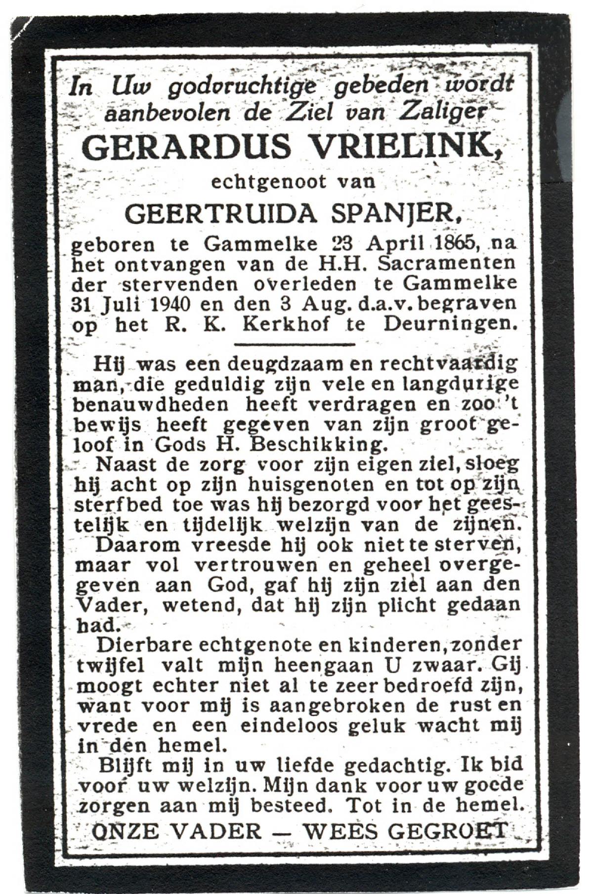 VRIELINK, Gerardus, geboren op 23-04-1865 te Gammelke, overleden op 31-7-1940 te Gammelke op 75-jarige leeftijd, begraven op 3-8-1940 te Deurningen.