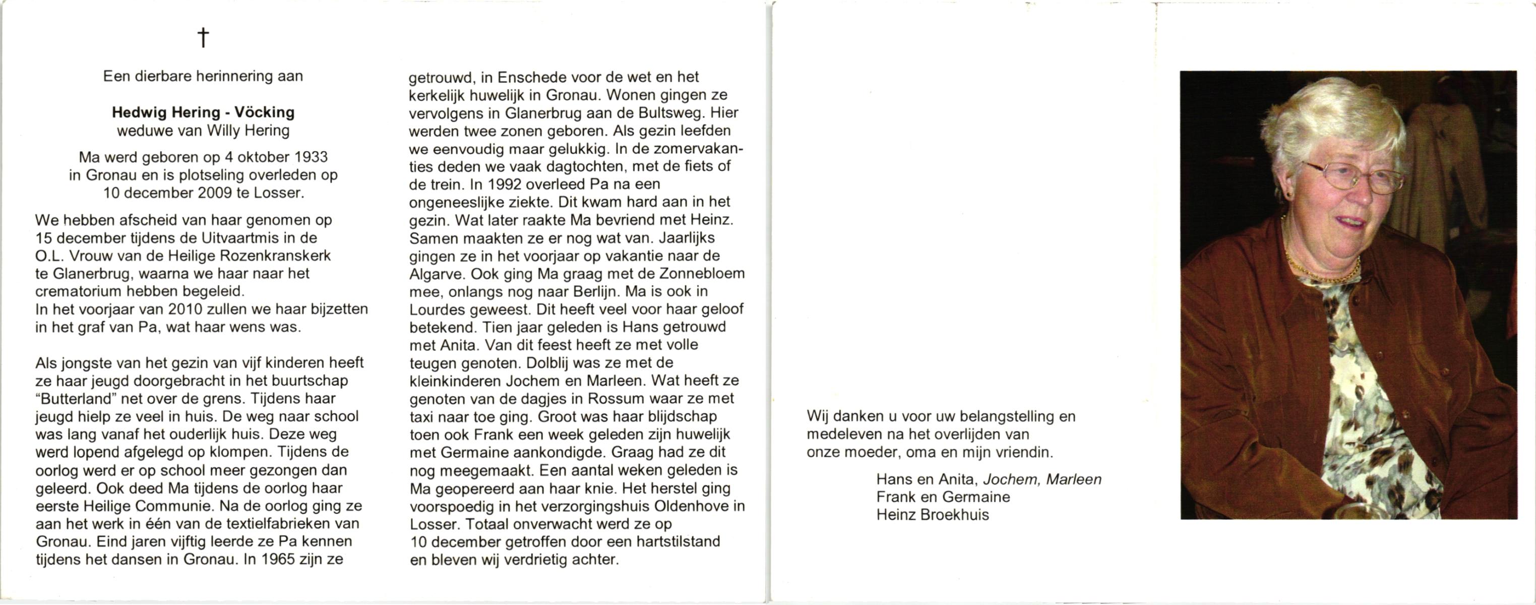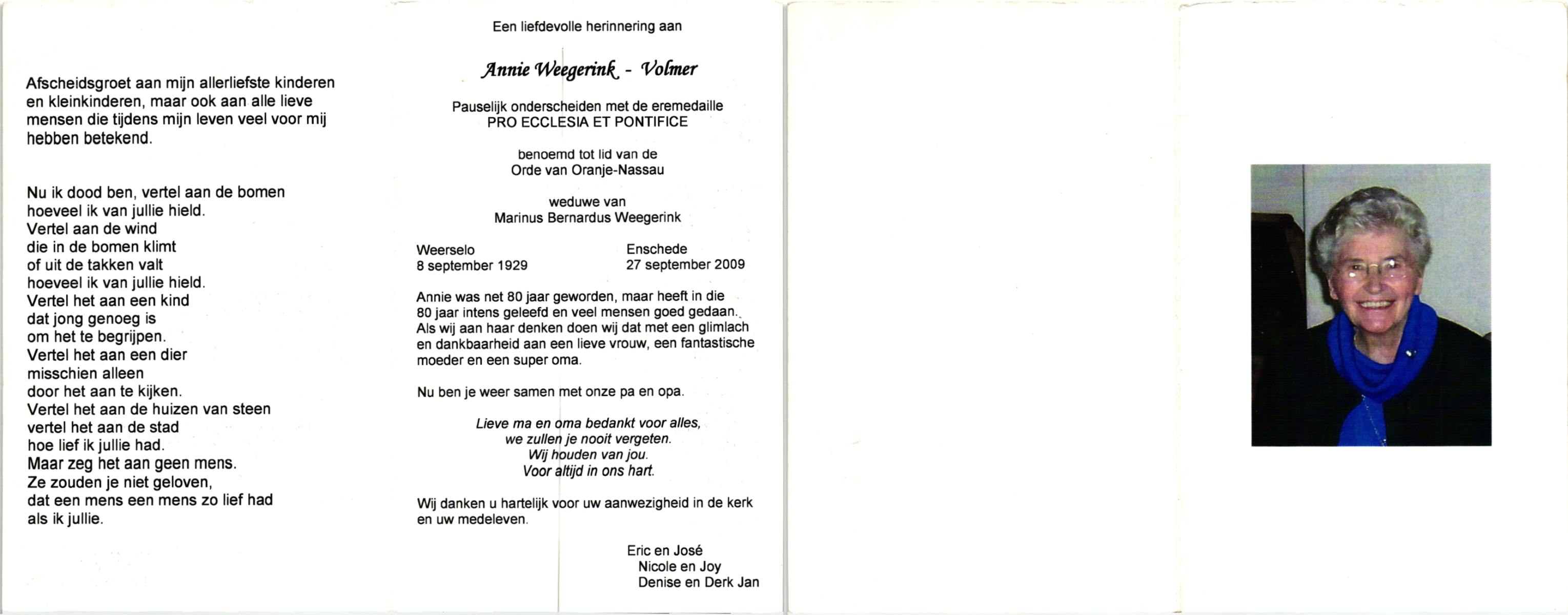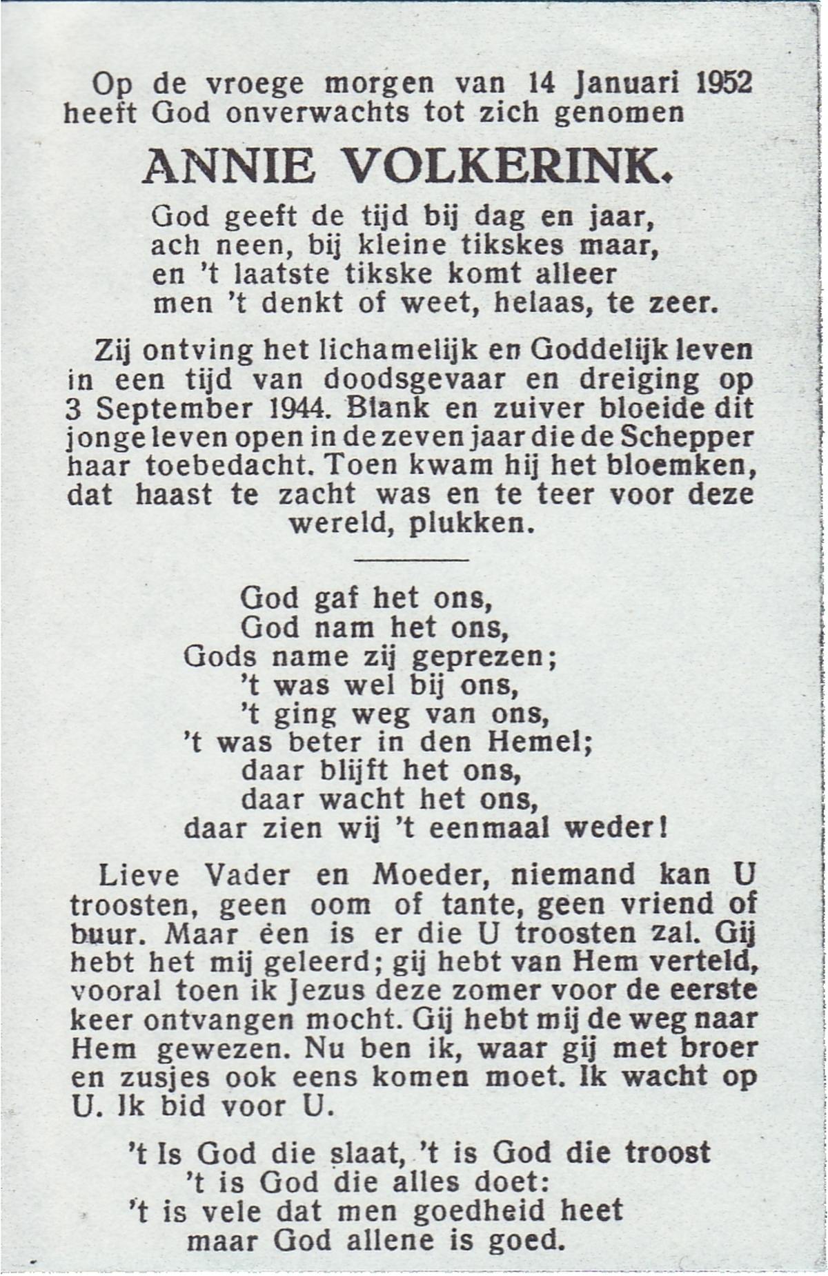 VRERINK, Annie, geboren op 16-1-1918 te Reutum, overleden op 26-1-2010 op 92-jarige leeftijd, begraven op 30-1-2010 te Overdinkel.