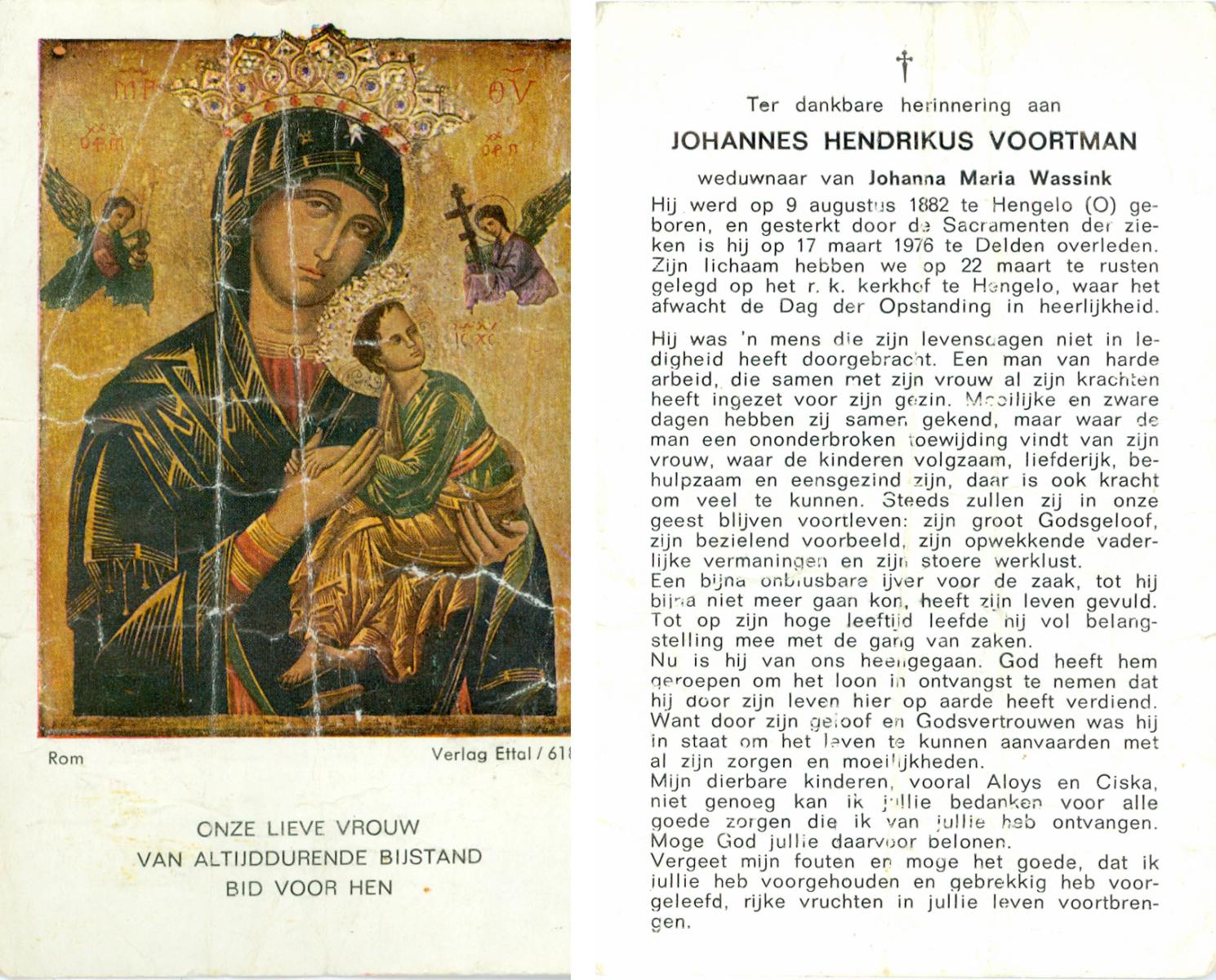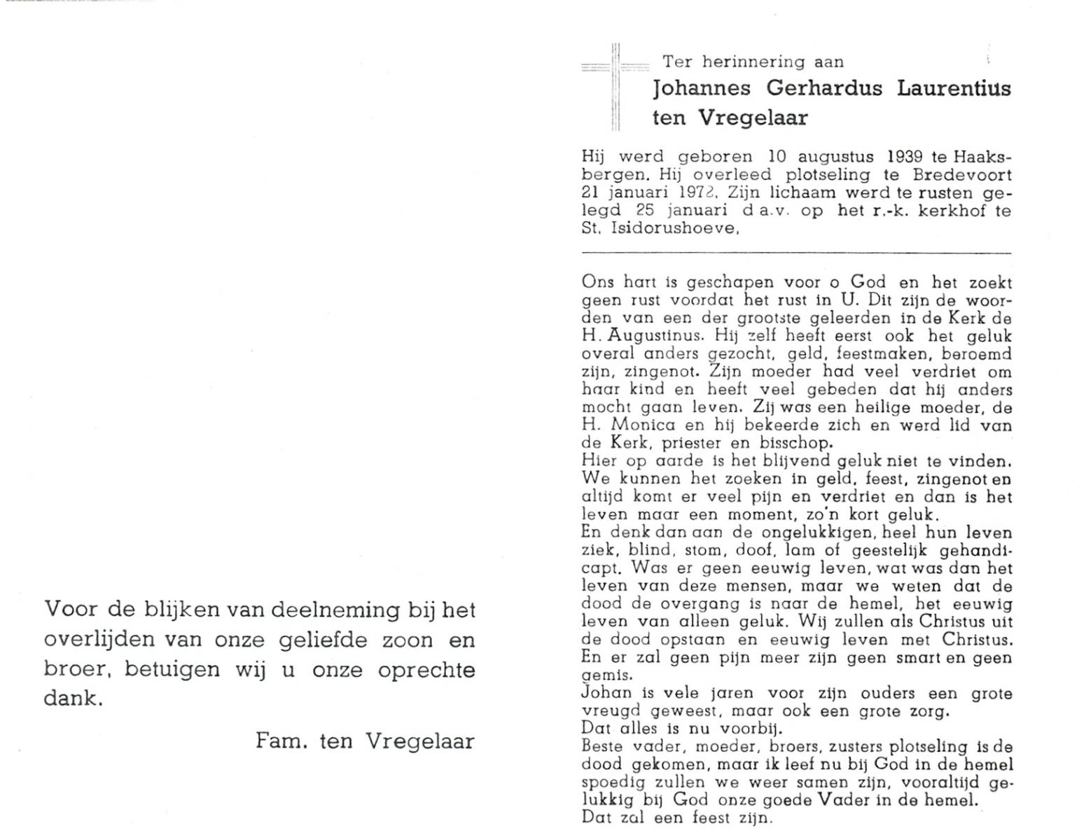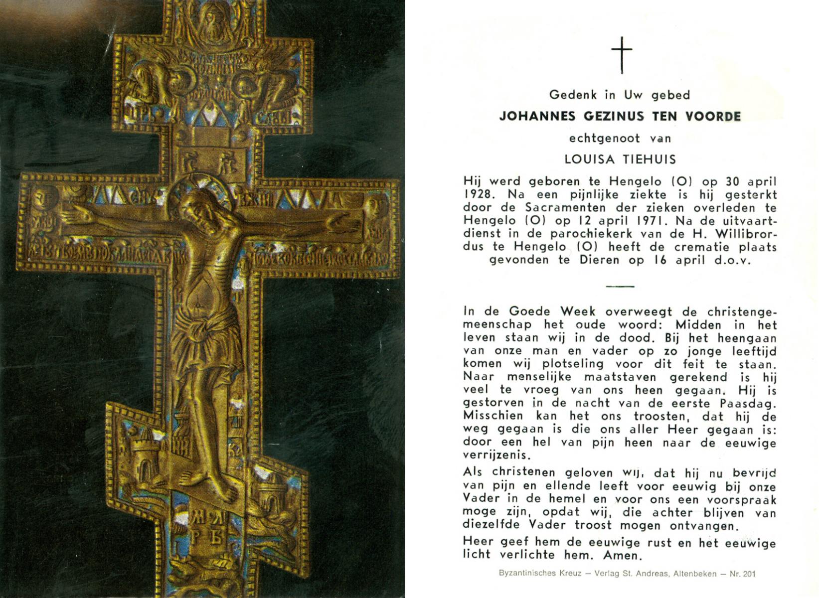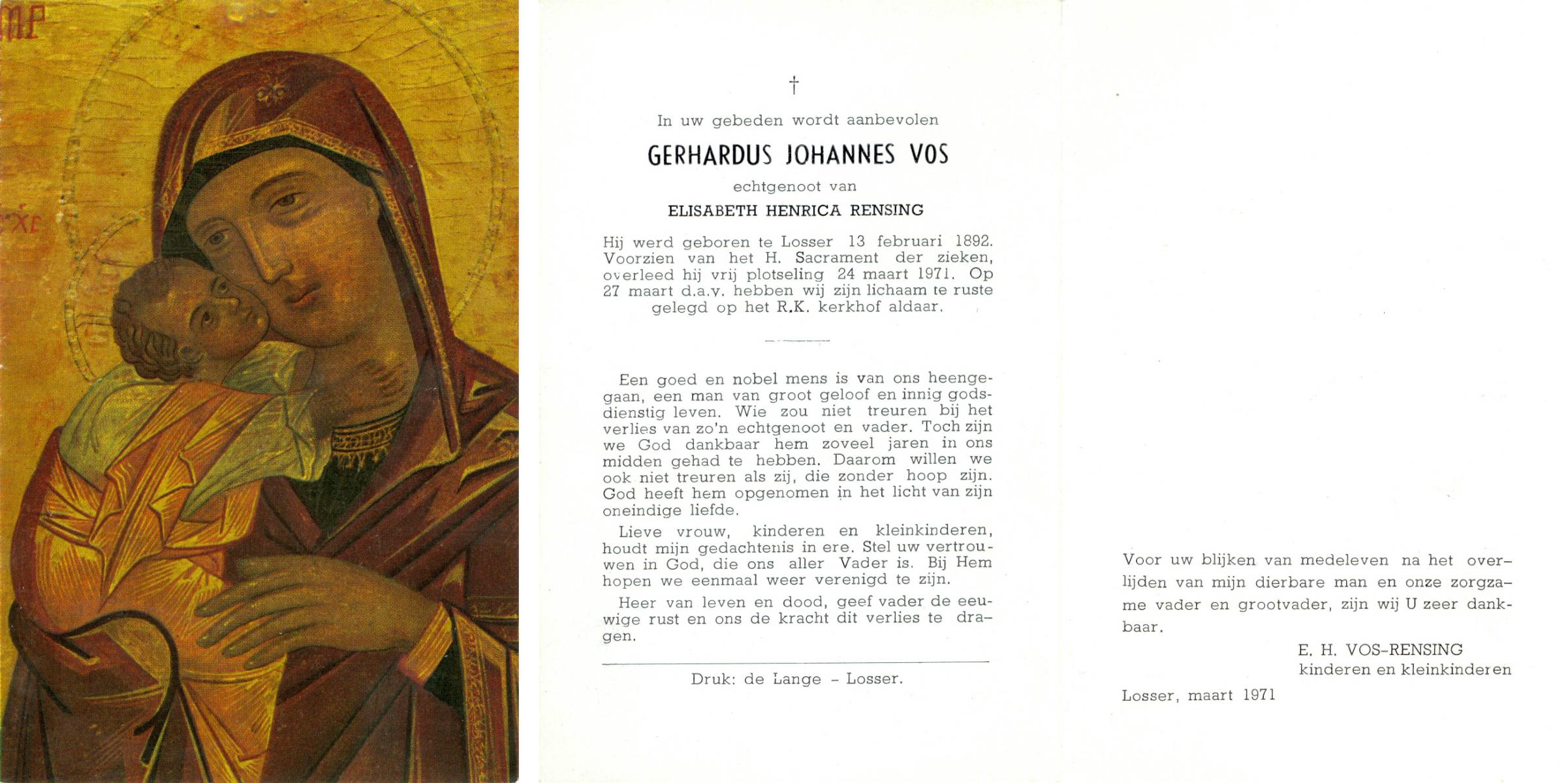 VRERINK, Johannes Lambertus, geboren op 16-11-1889 te Reutum, overleden op 27-2-1971 te Albergen op 81-jarige leeftijd, begraven op 3-3-1971 te Albergen.