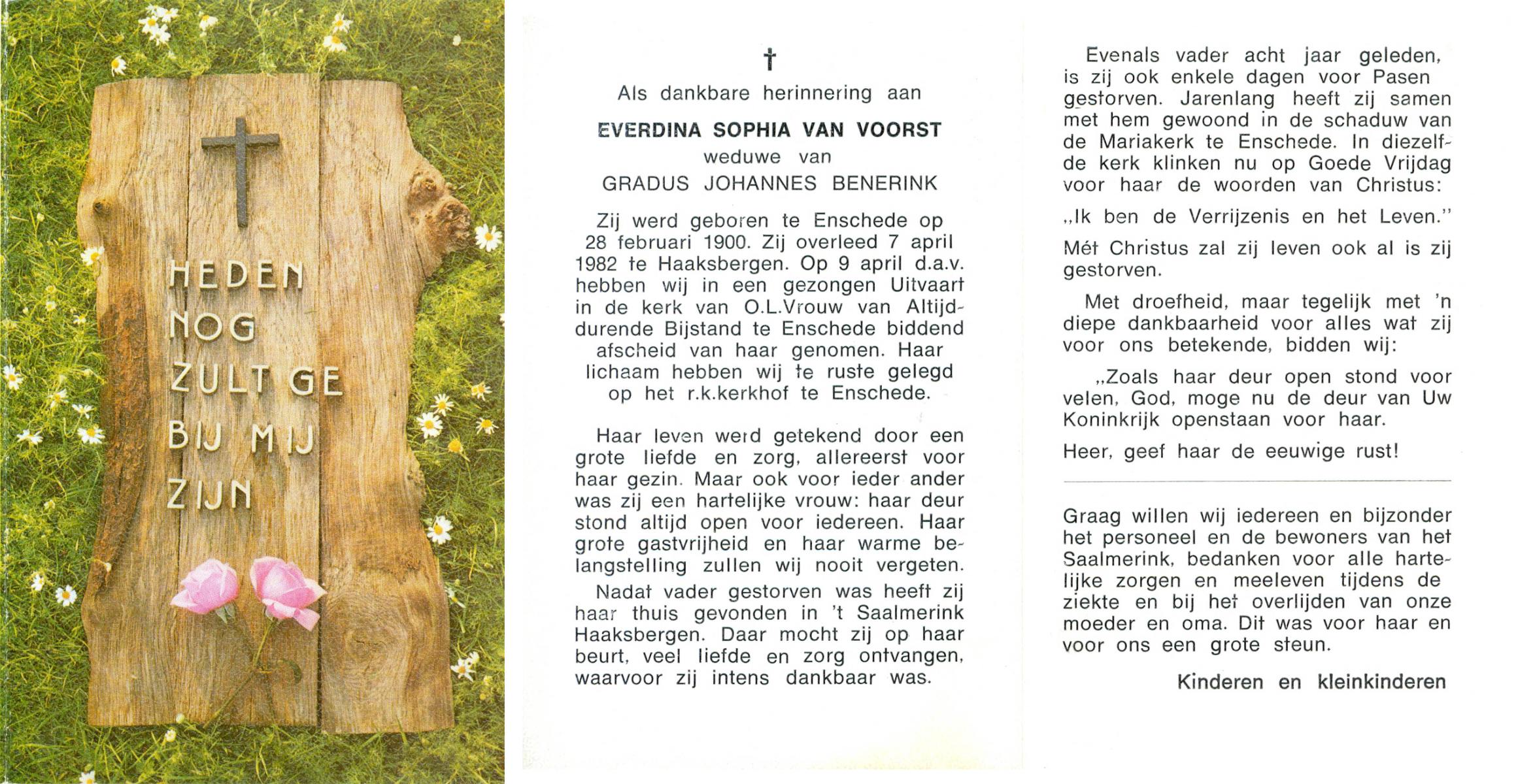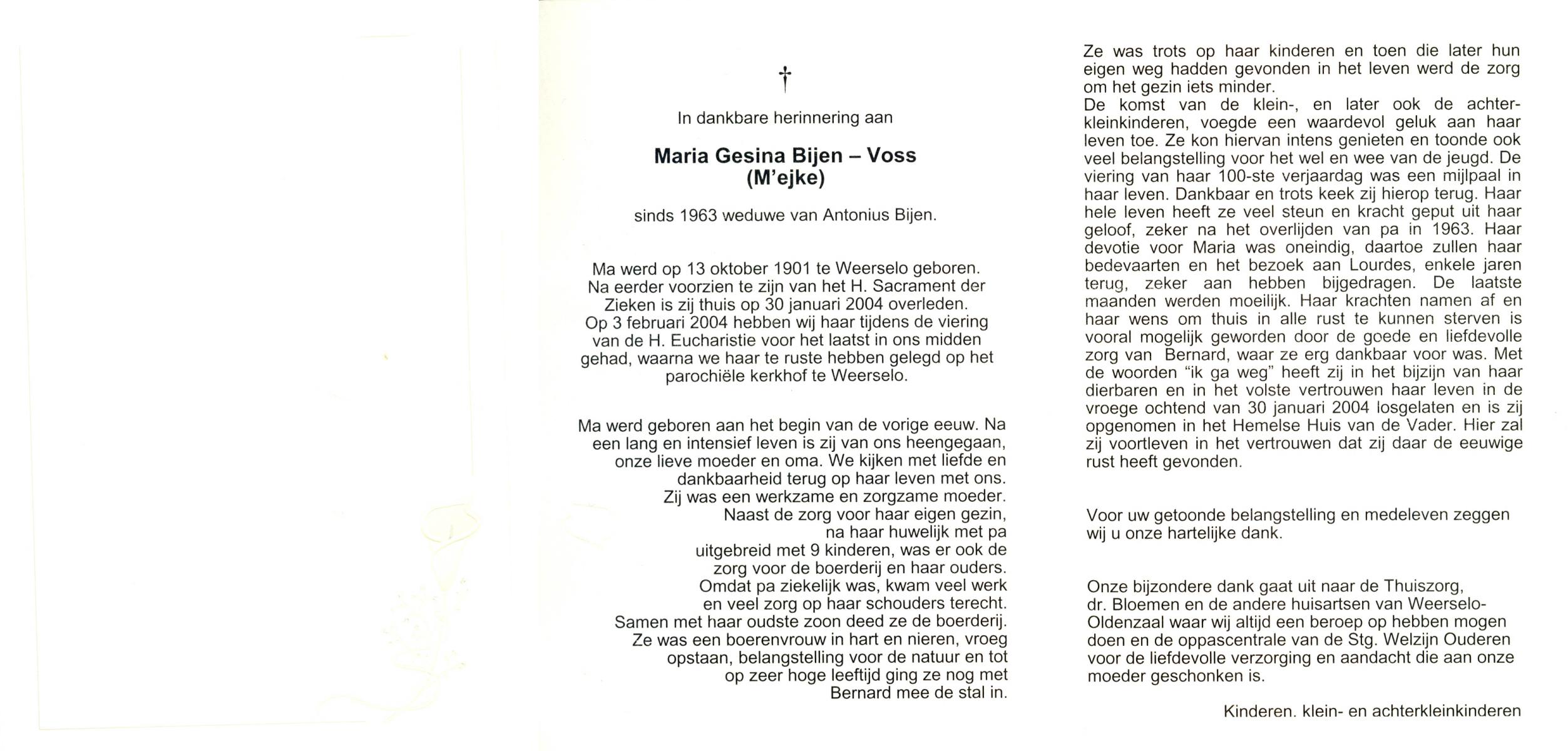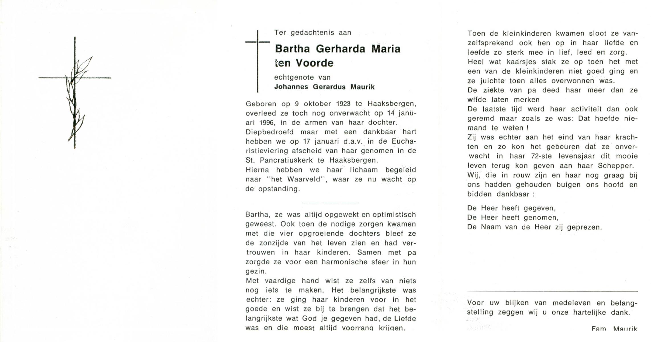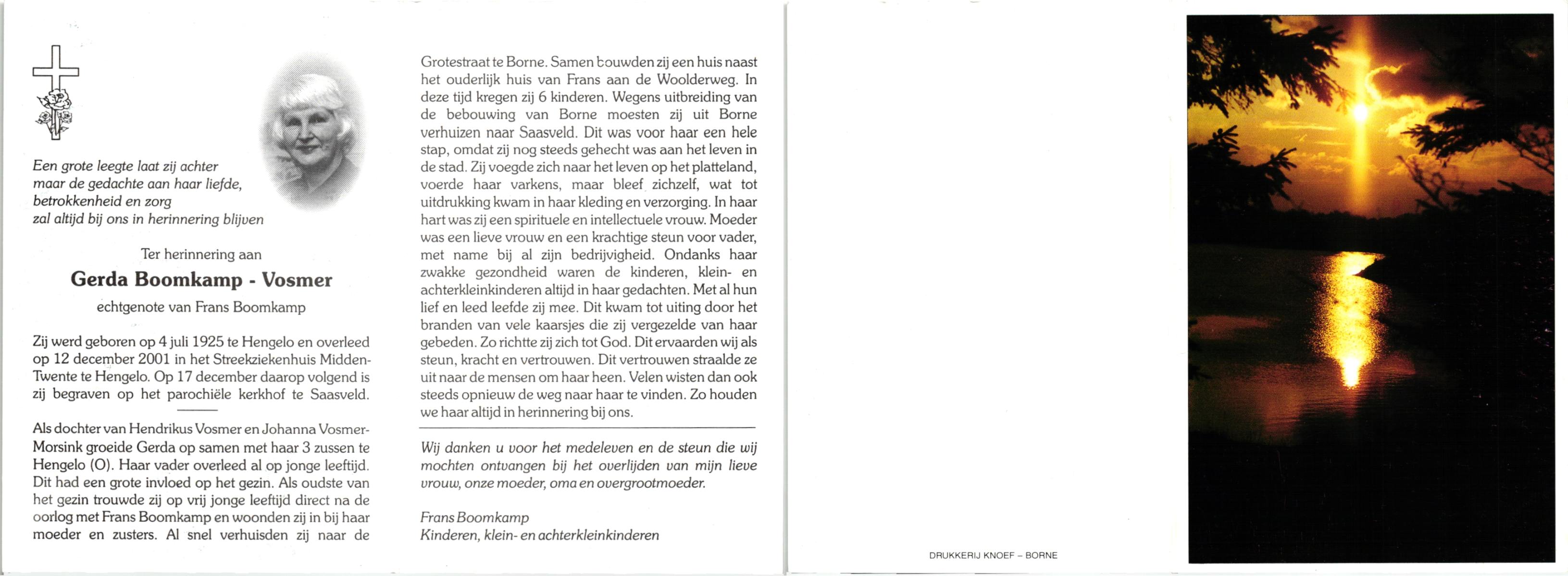 VLOEDBELD, Berendina Johanna Maria, geboren op 11-9-1904 te Borne, overleden op 13-9-1996 te Borne op 92-jarige leeftijd, begraven op 17-9-1996 te Borne.