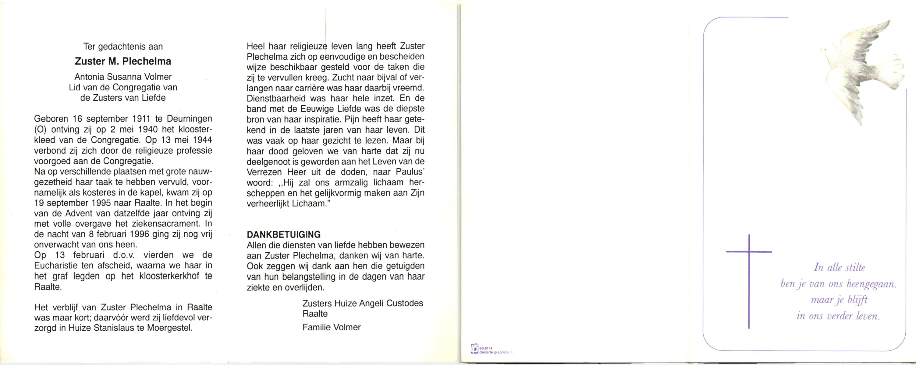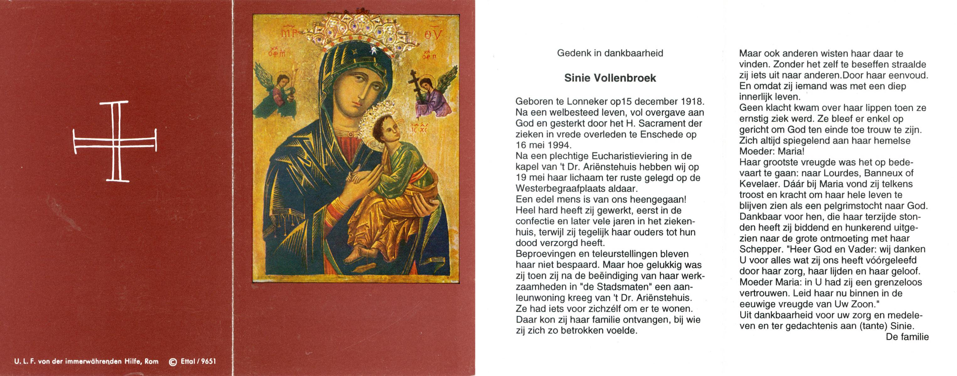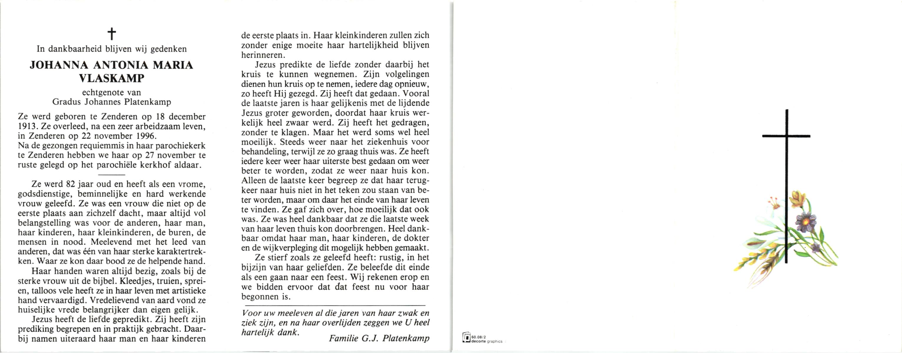 VLASKAMP, , Johanna Antonia Maria, geboren op 18-12-1913 te Zenderen, overleden op 22-11-1996 te Zenderen op 82-jarige leeftijd, begraven op 27-11-1996 te Zenderen.