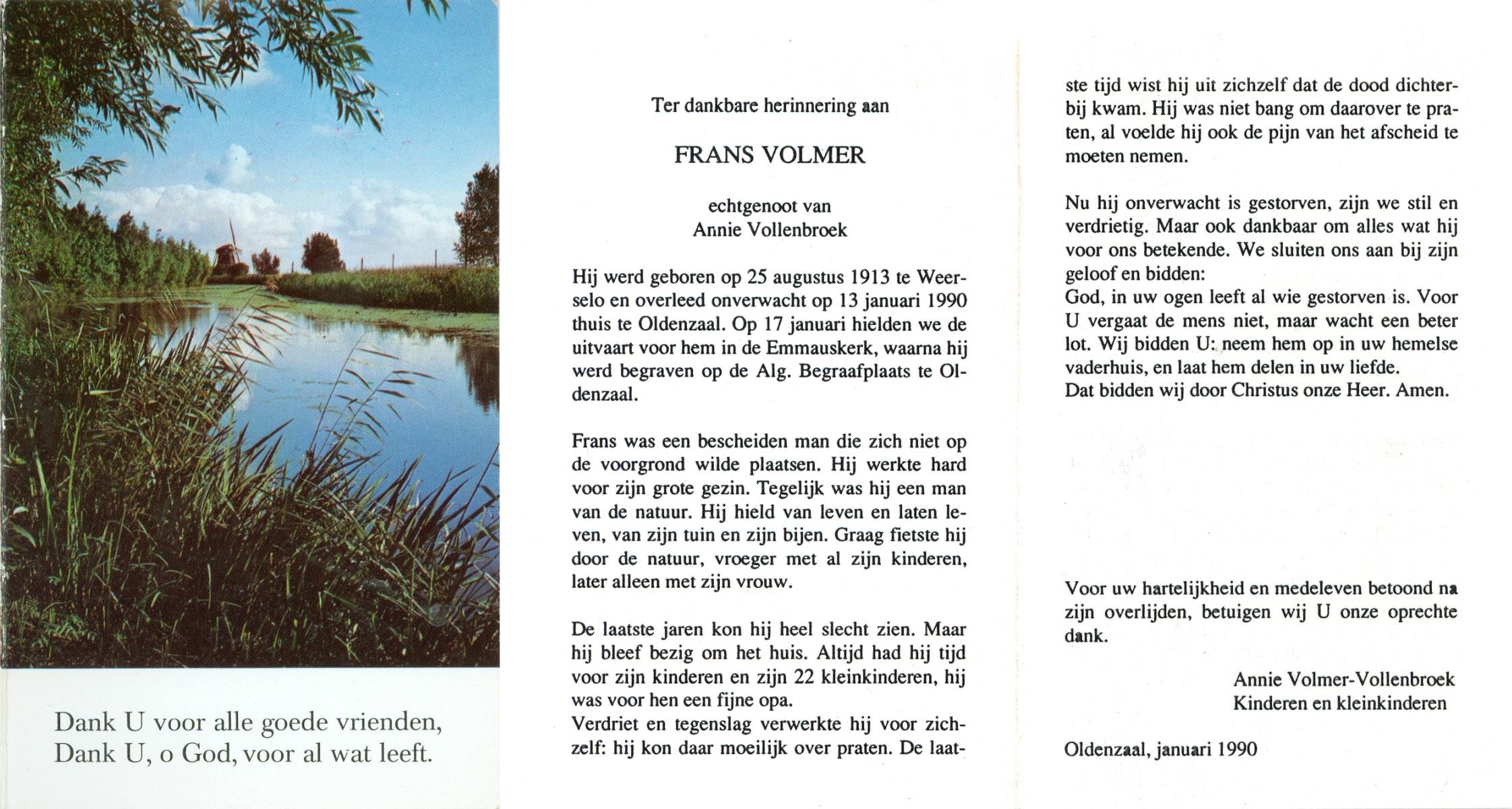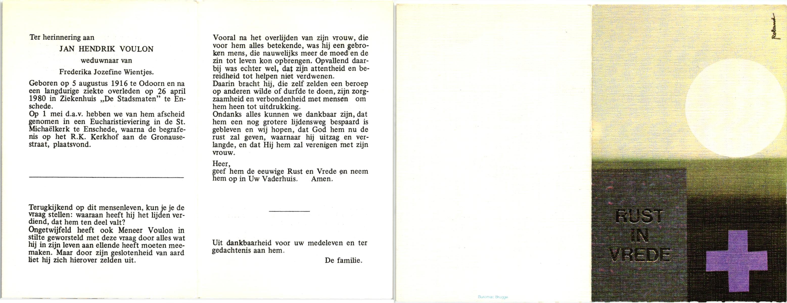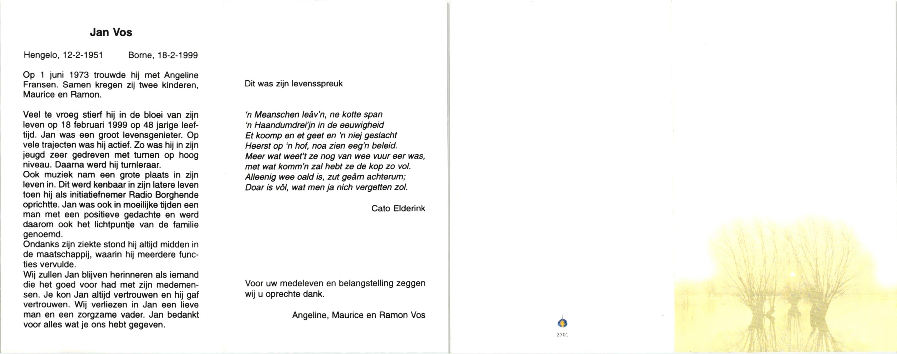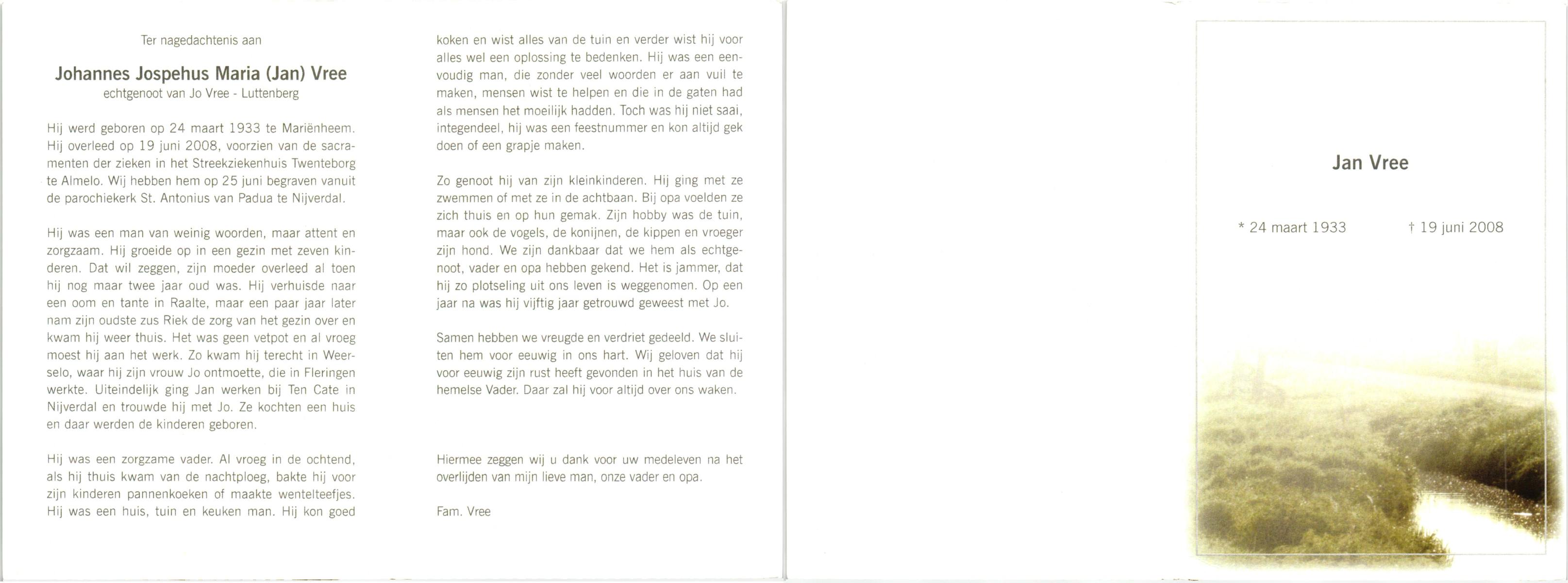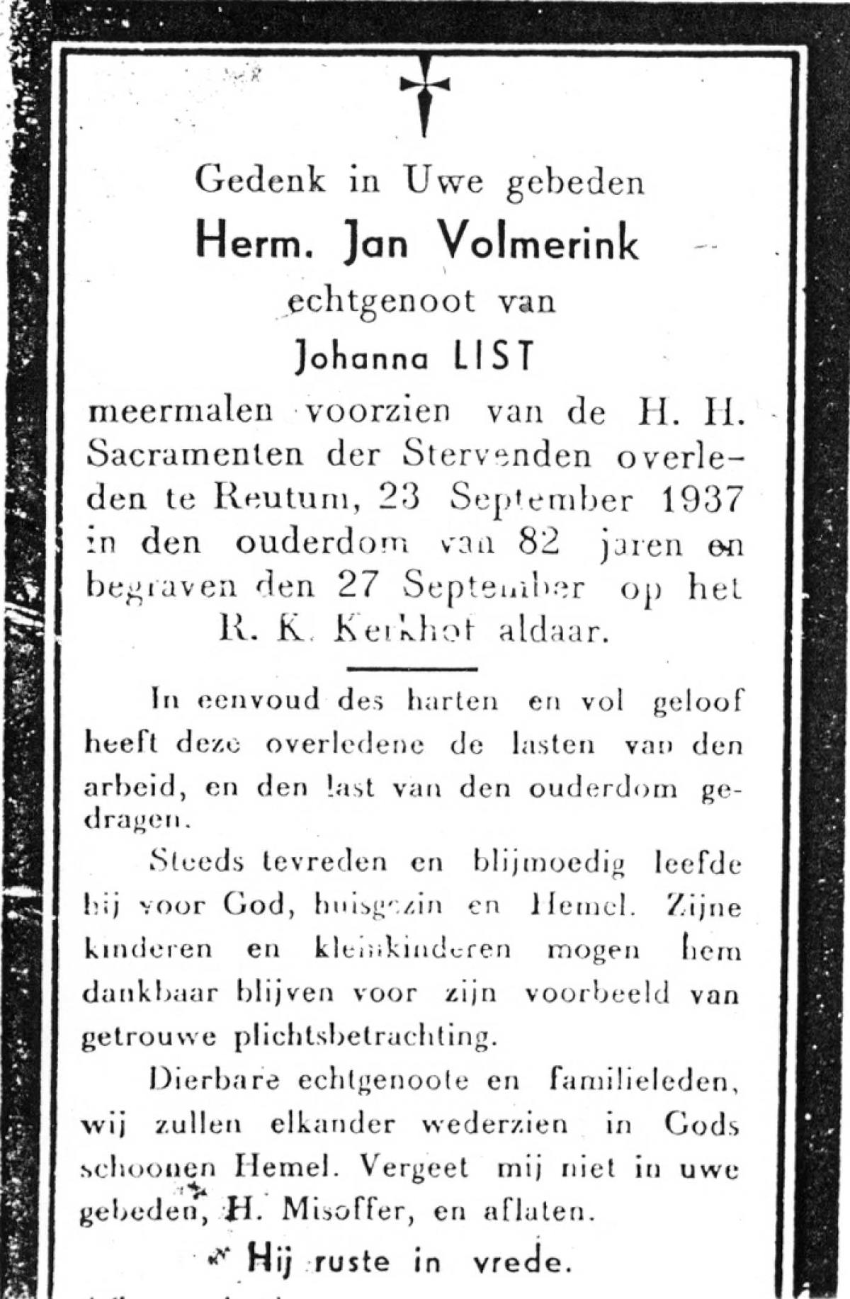VRERINK, Jan, geboren op 21-9-1922 te Reutum, overleden op 7-9-1996 te Almelo op 73-jarige leeftijd, begraven te Maria Parochie.