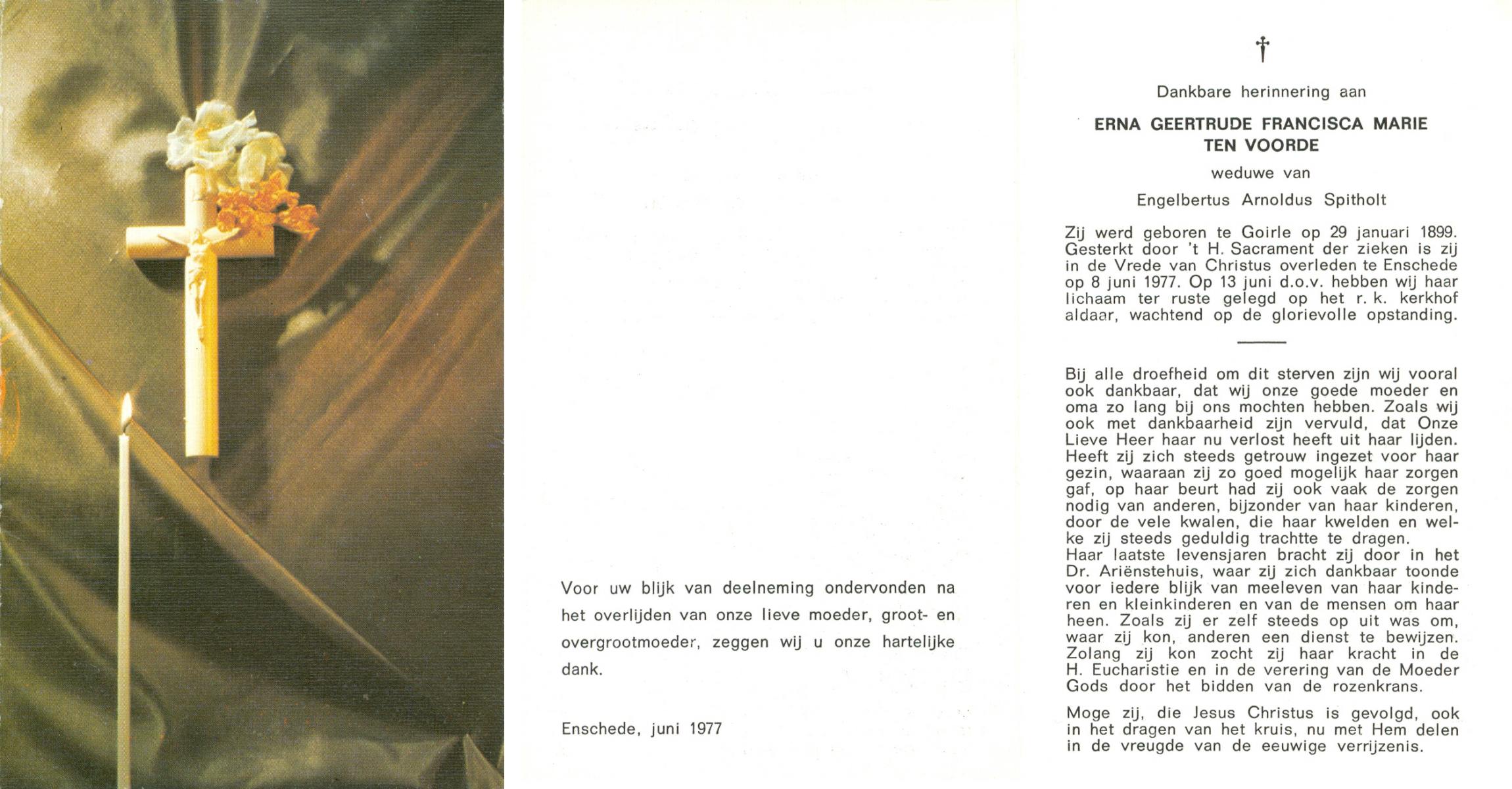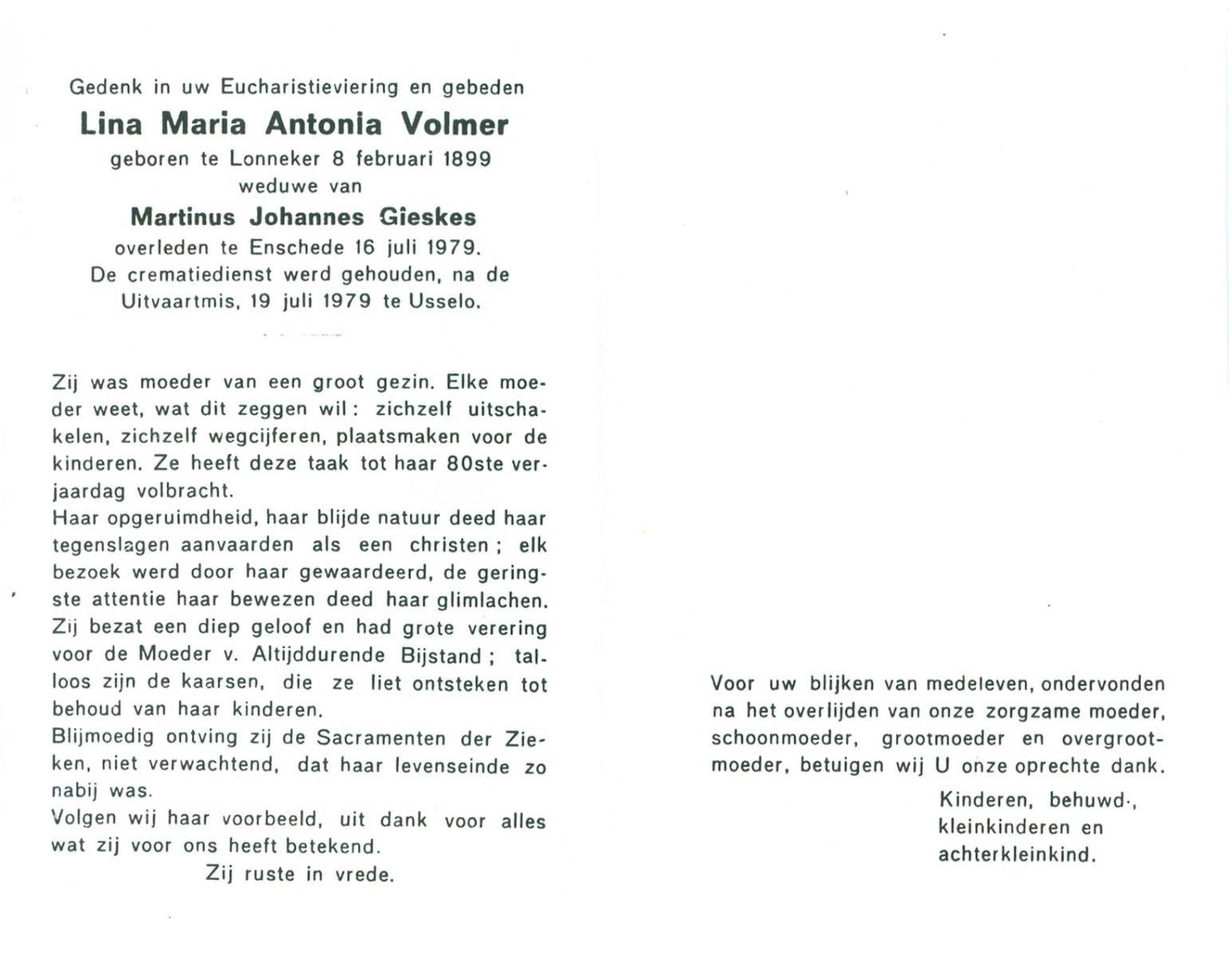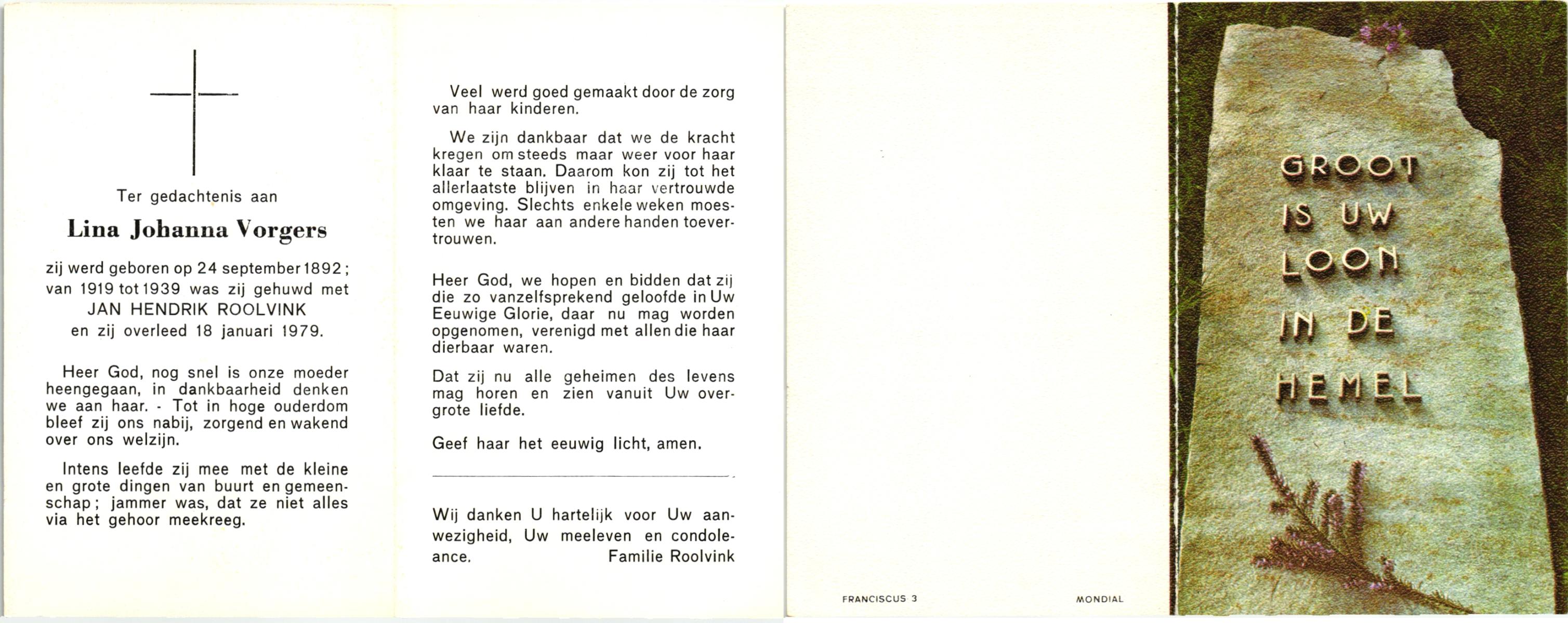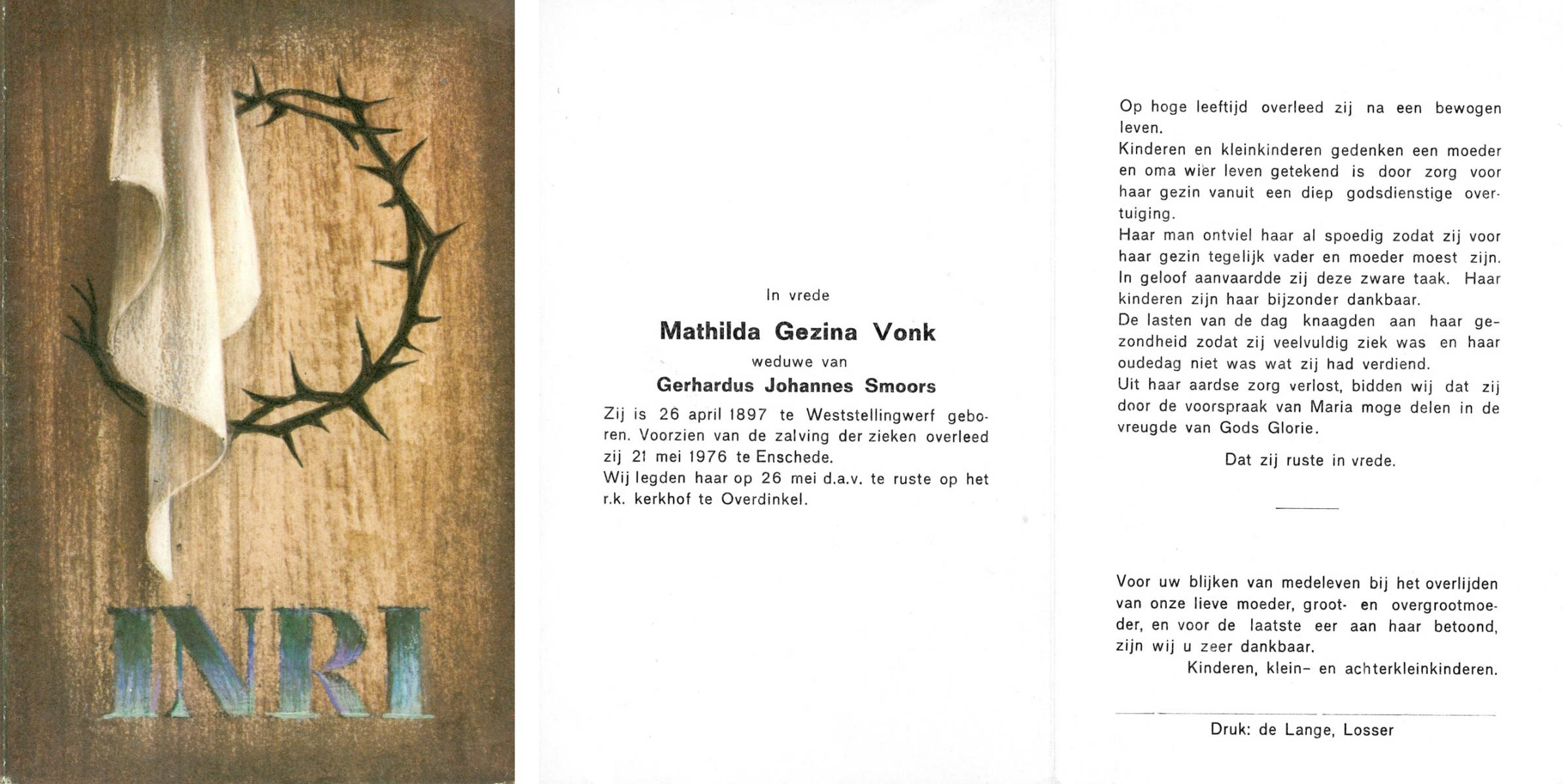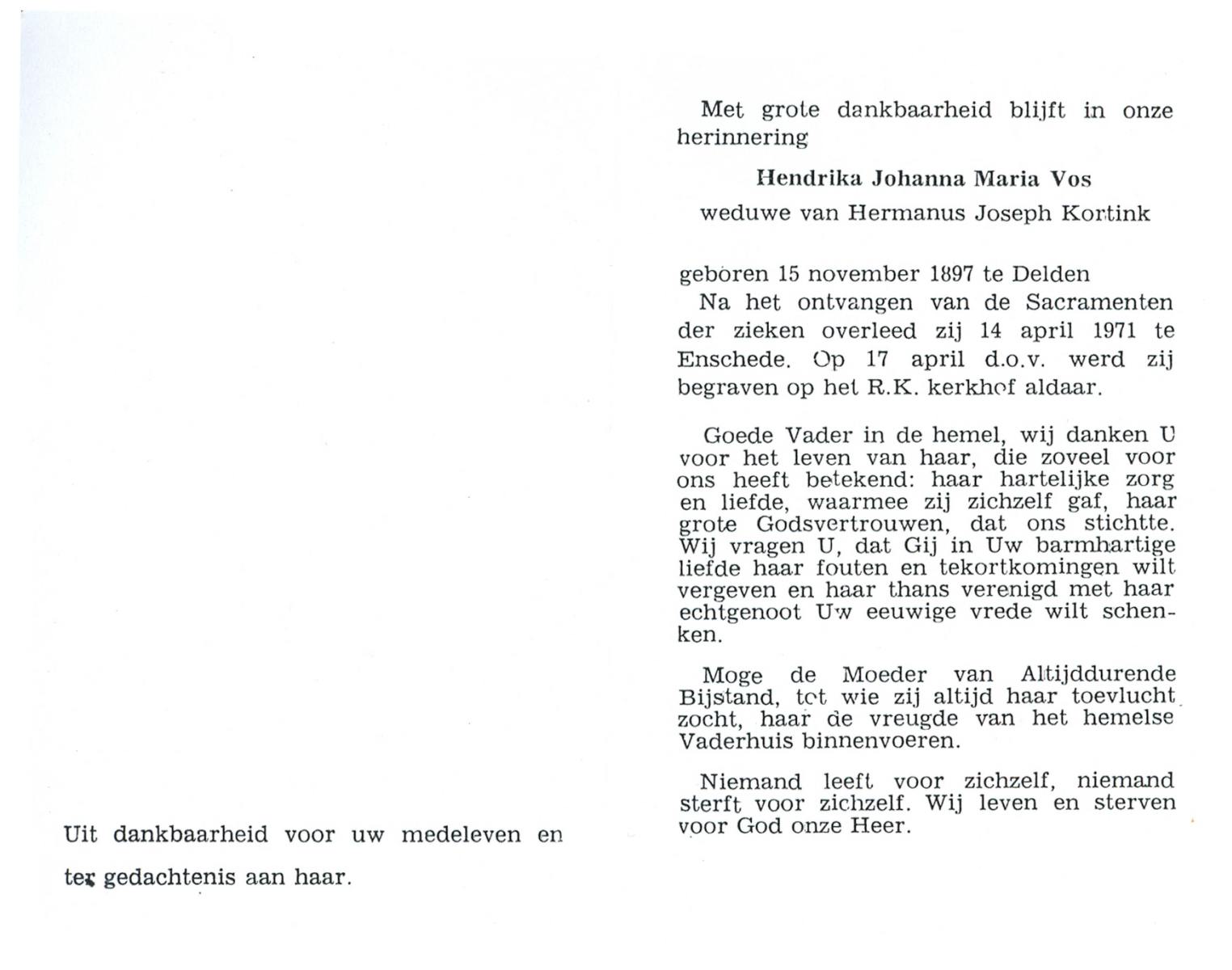 VRIELINK, Gesina Maria, geboren op 08-04-1898 te Hertme, overleden op 25-4-1976 te Delden op 78-jarige leeftijd, begraven op 28-4-1976 te Borne.