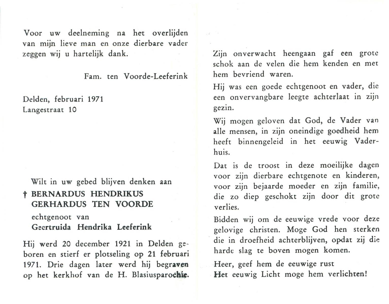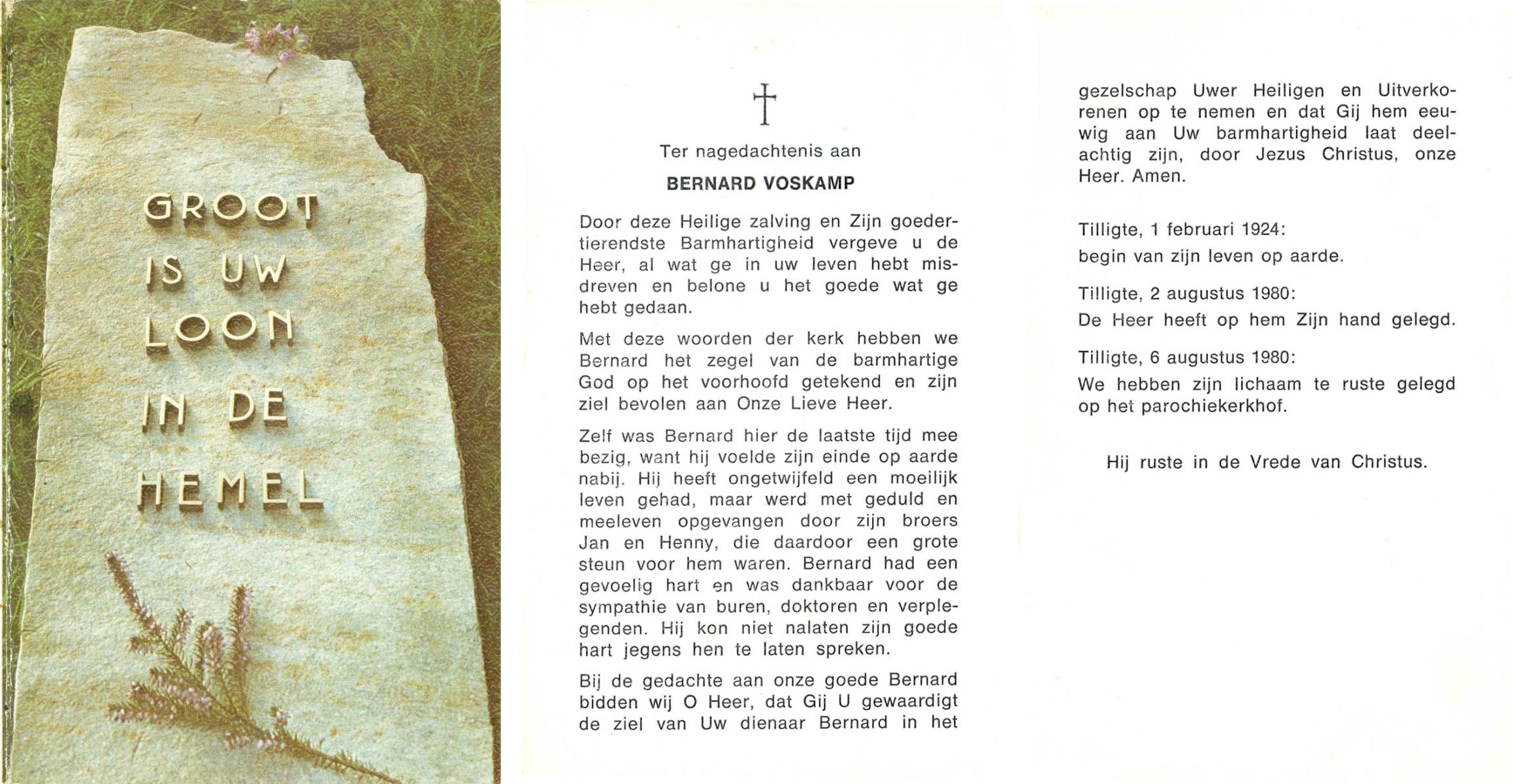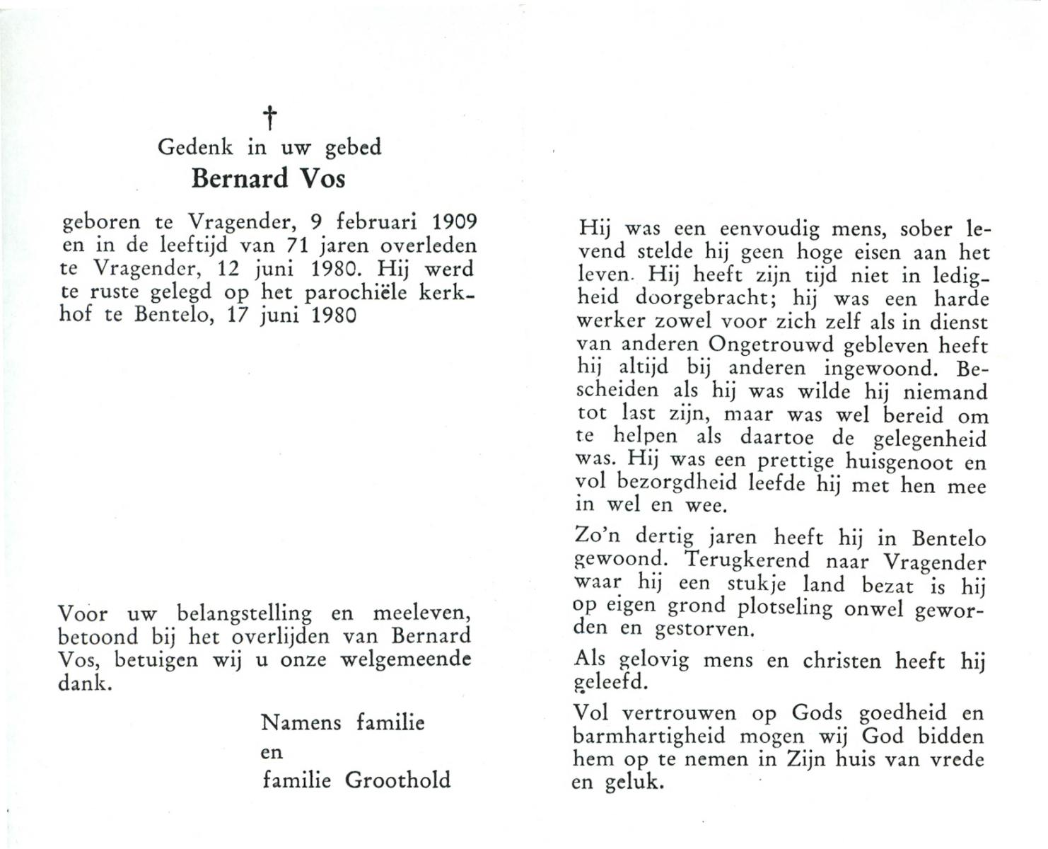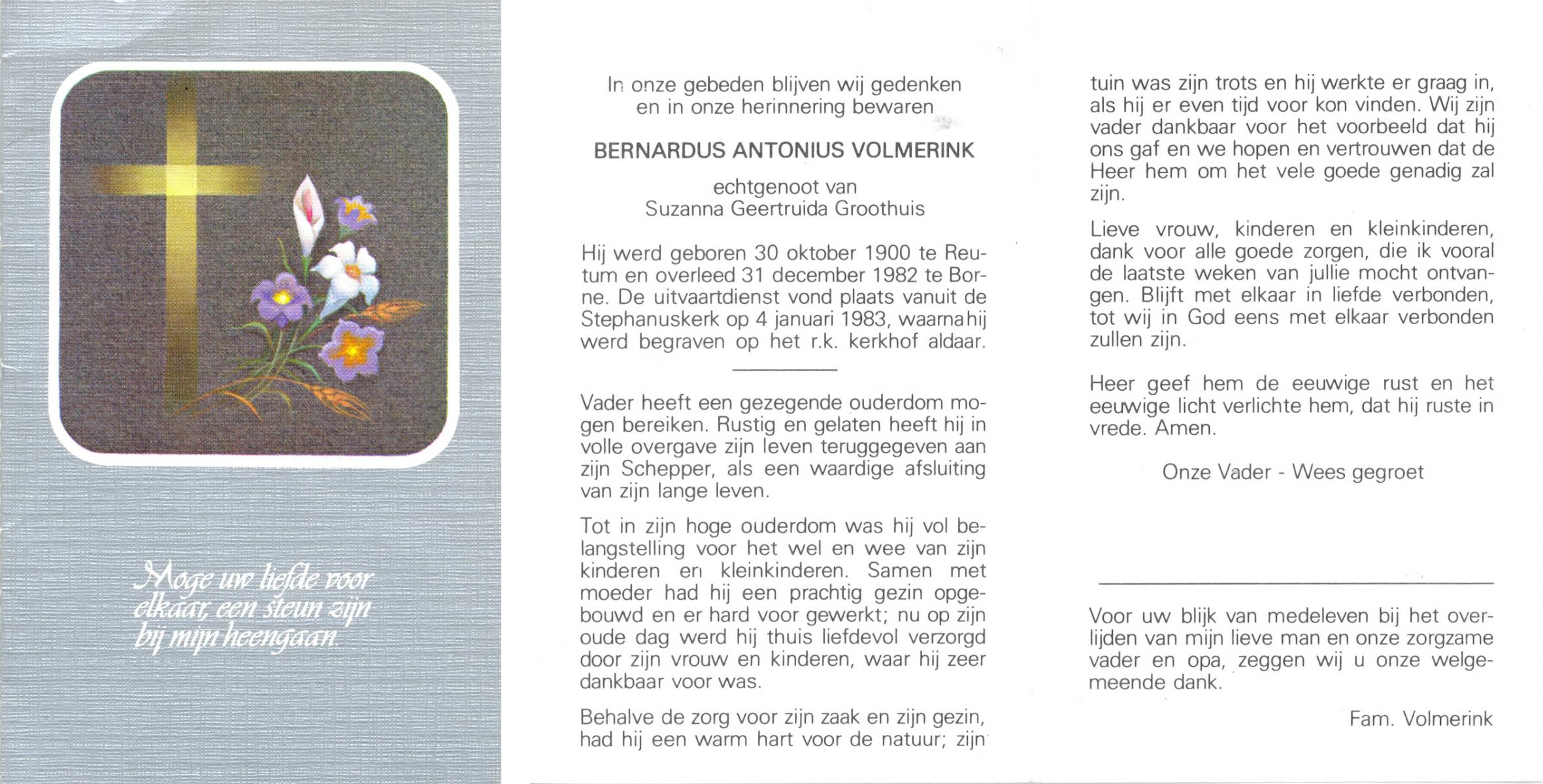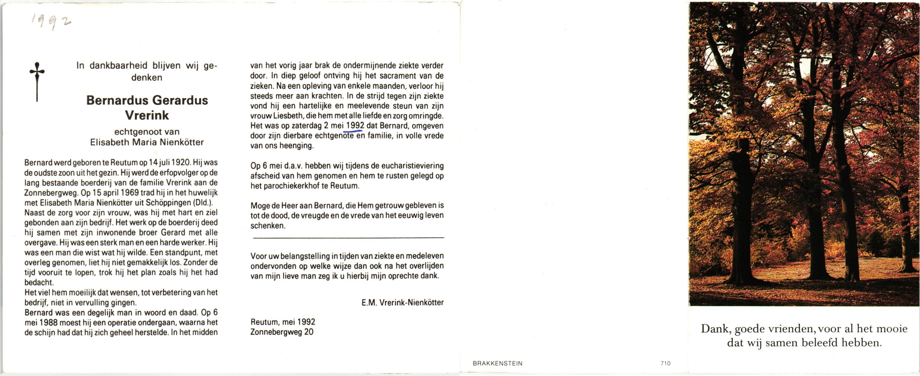 VRERINK, Bernardus Gerardus, geboren op 14-7-1920 te Reutum, overleden op 2-5-1992 op 71-jarige leeftijd, begraven op 6-5-1992 te Reutum.