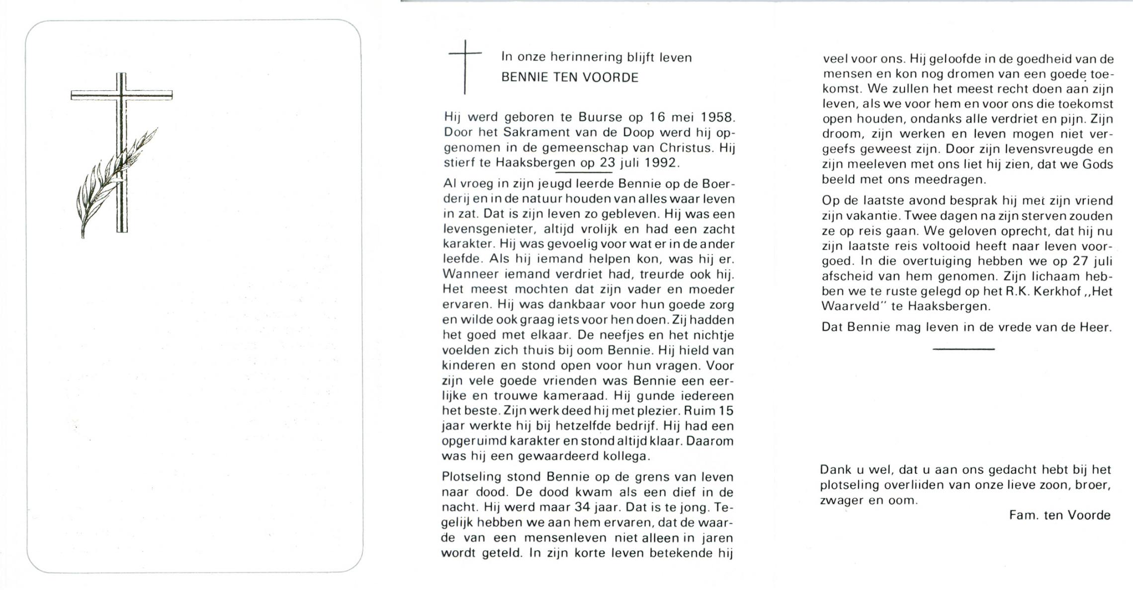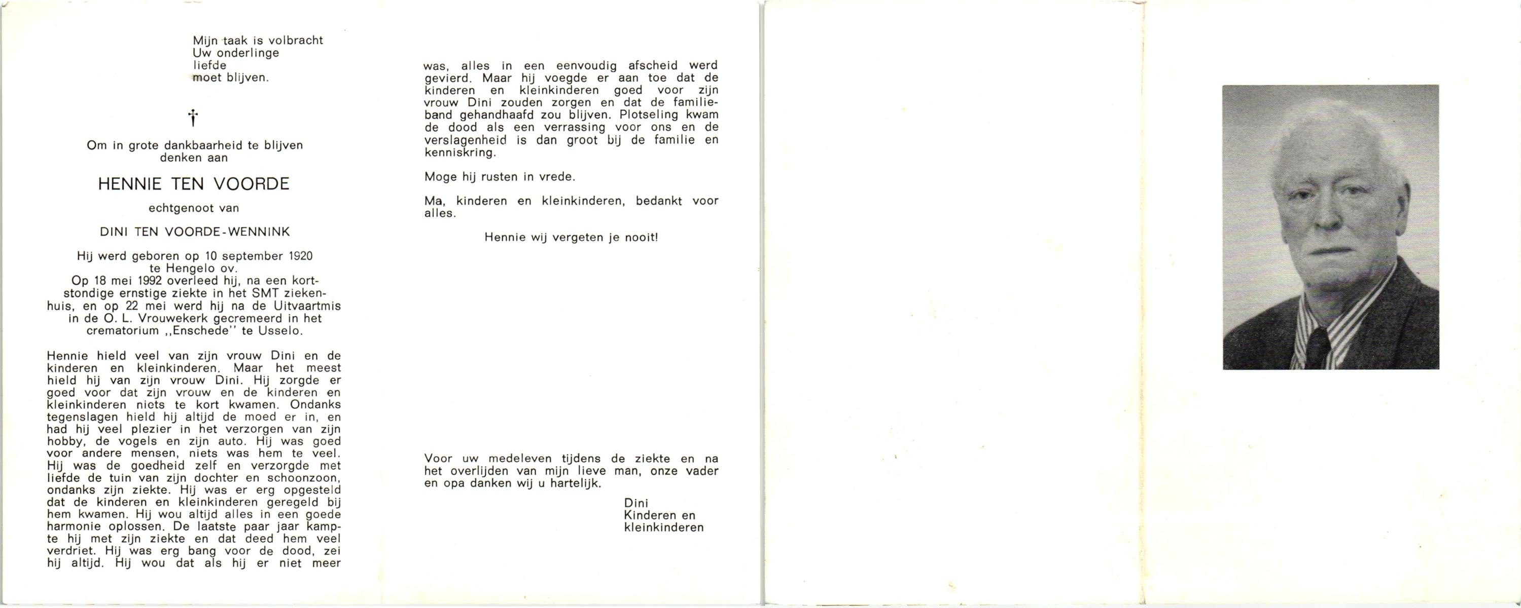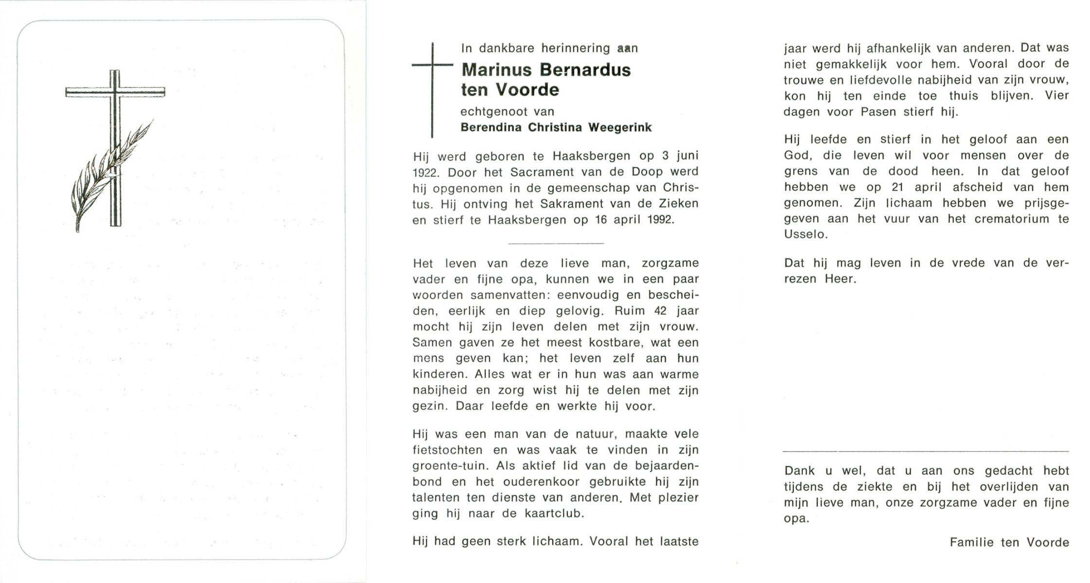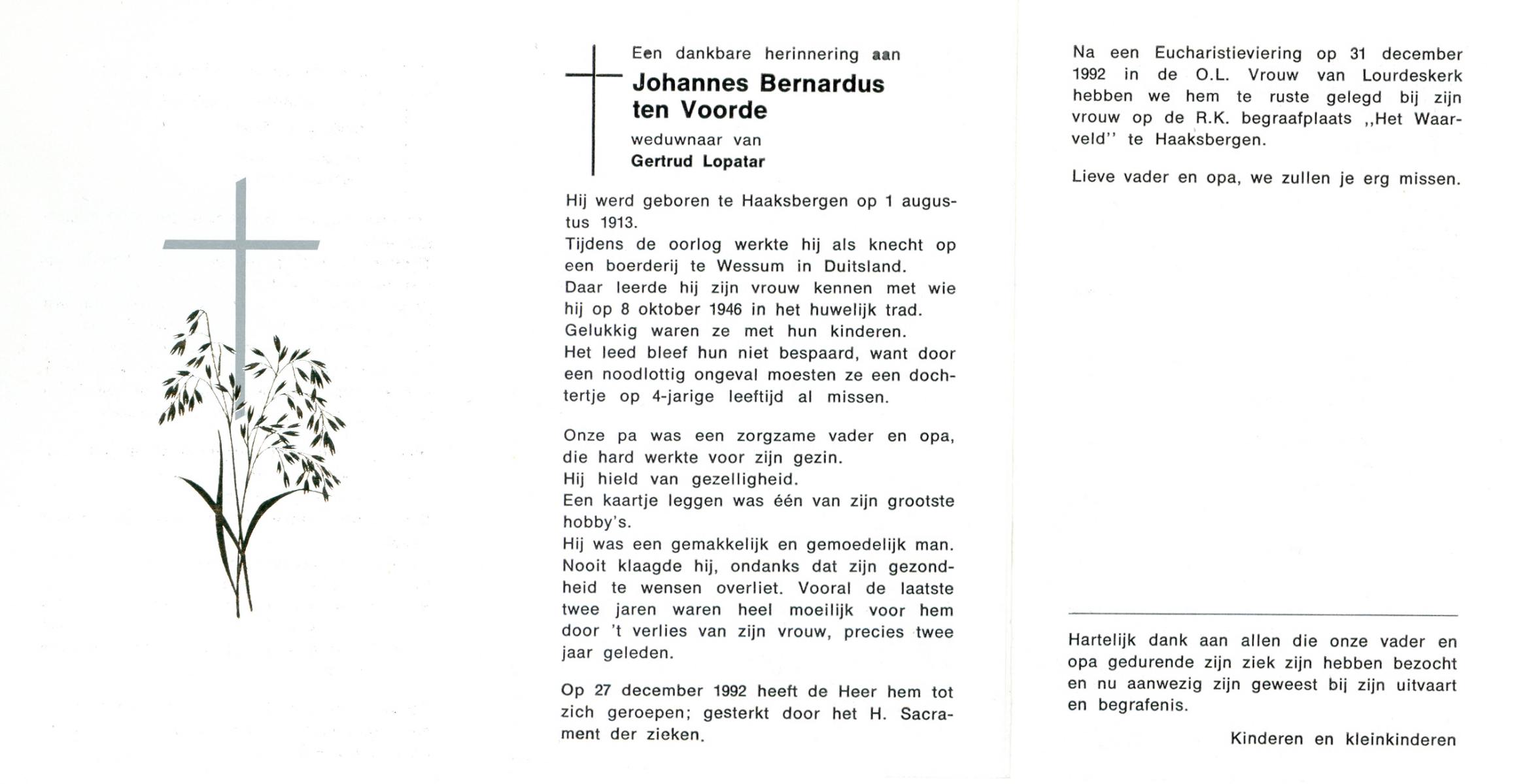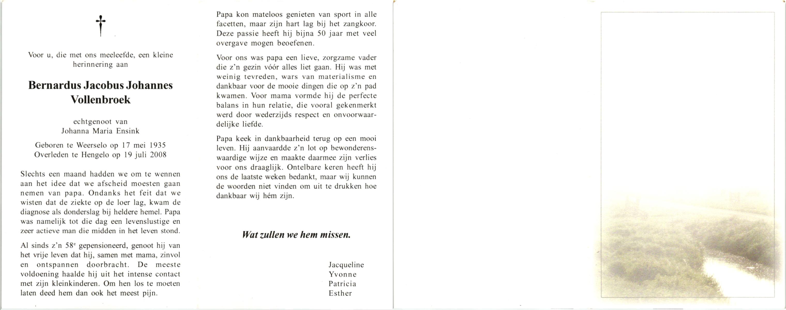 VRERINK, Bernardus Gerardus, geboren op 14-7-1920 te Reutum, overleden op 2-5-1992 op 71-jarige leeftijd, begraven op 6-5-1992 te Reutum.