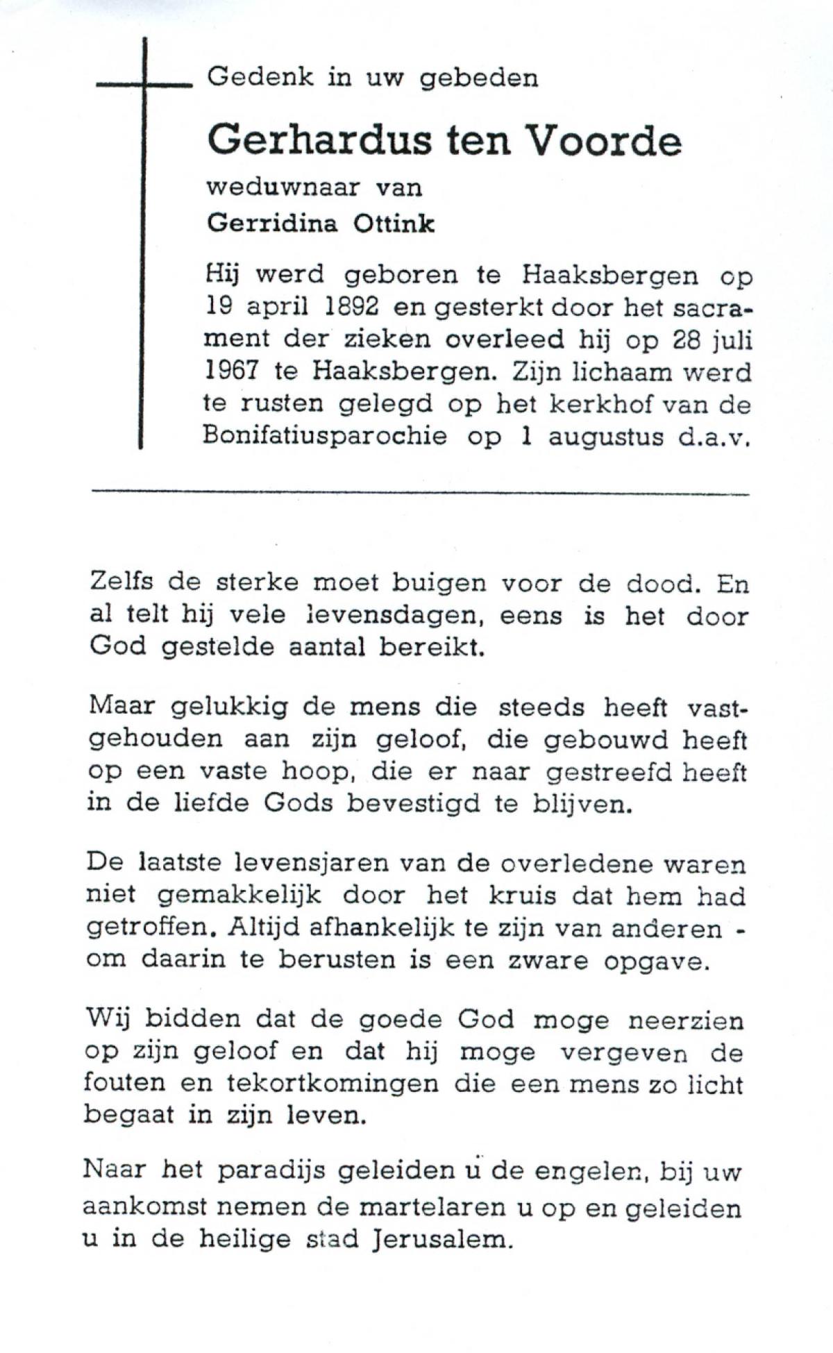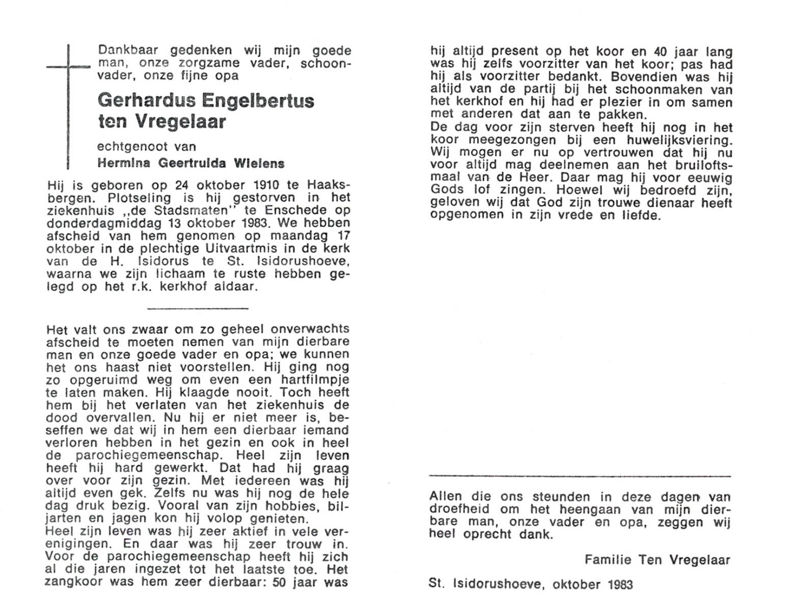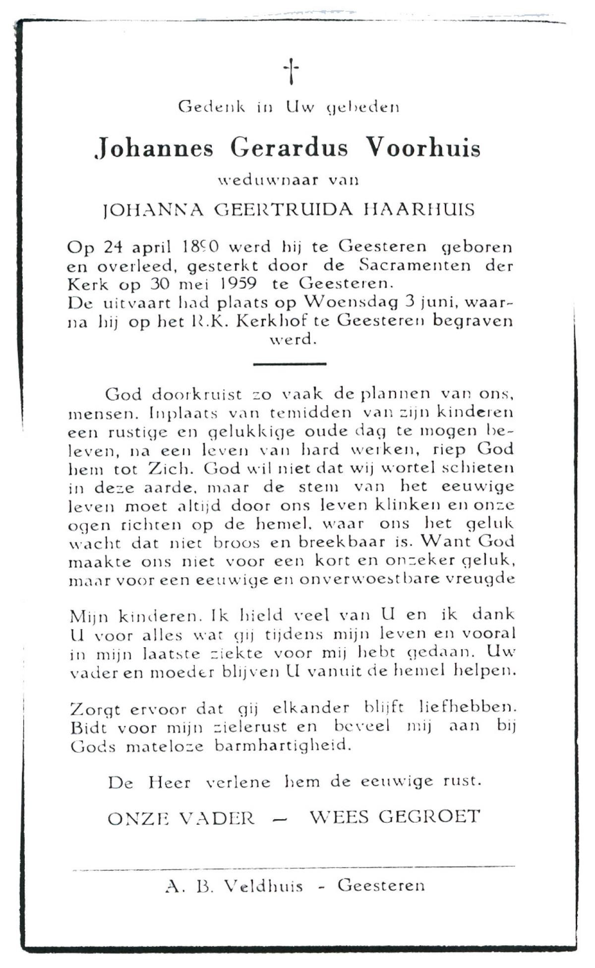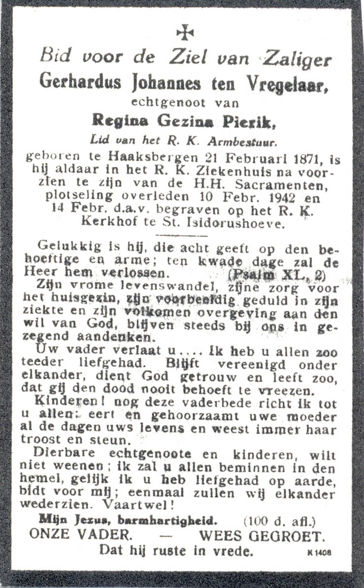 VRIELINK, Gerardus Johannes, geboren op 04-10-1883 te Tubbergen, overleden op 18-1-1957 te Geesteren op 73-jarige leeftijd, begraven op 22-1-1957 te Geesteren.
