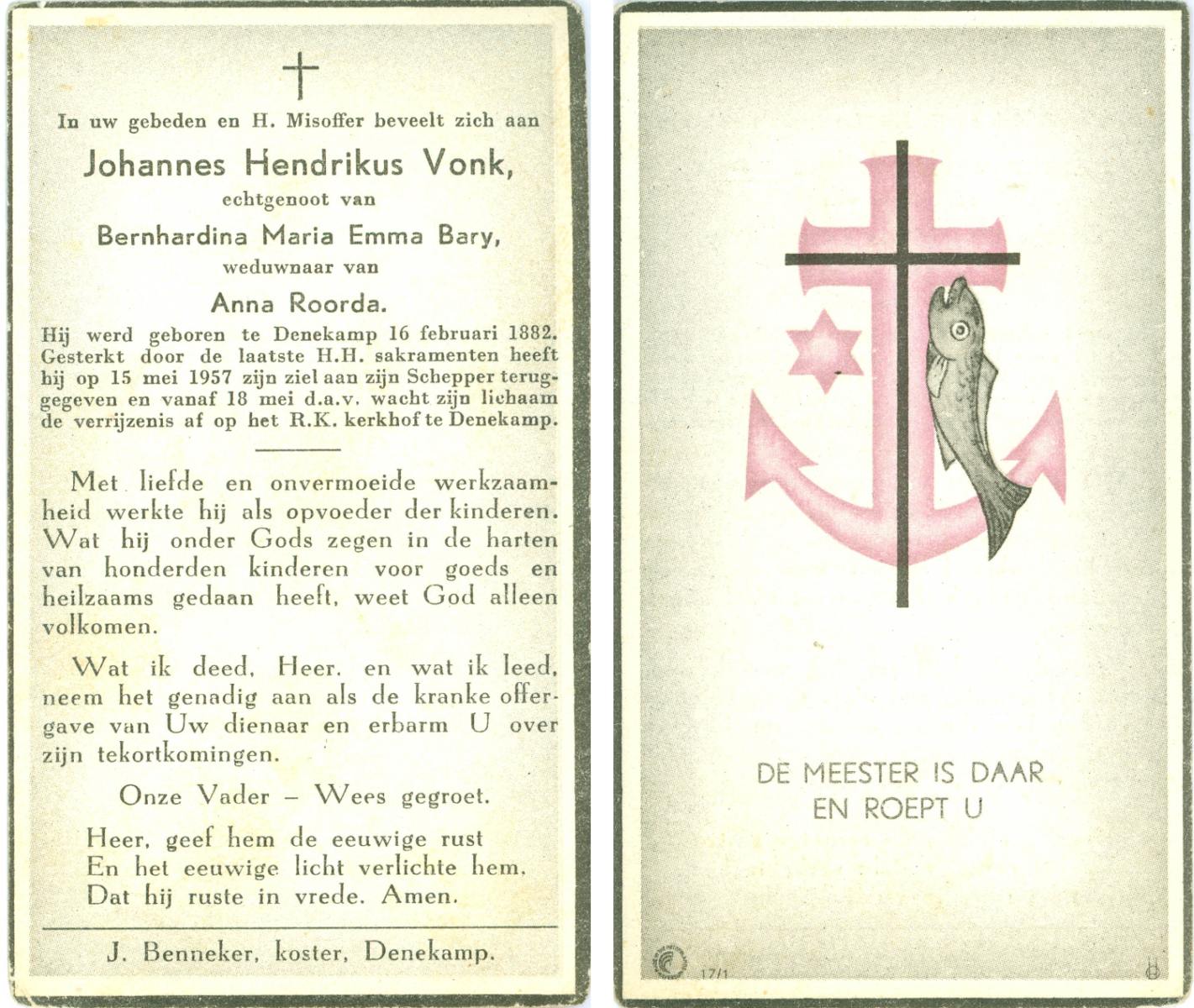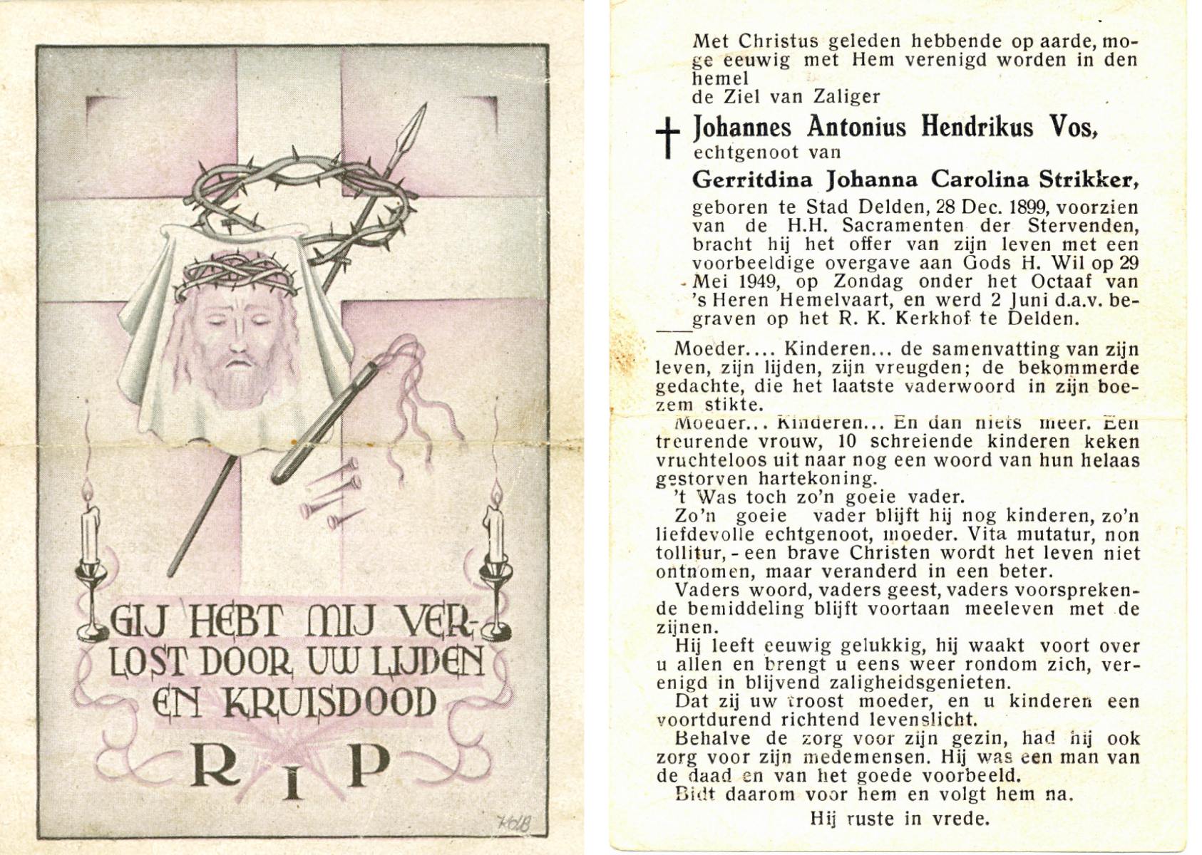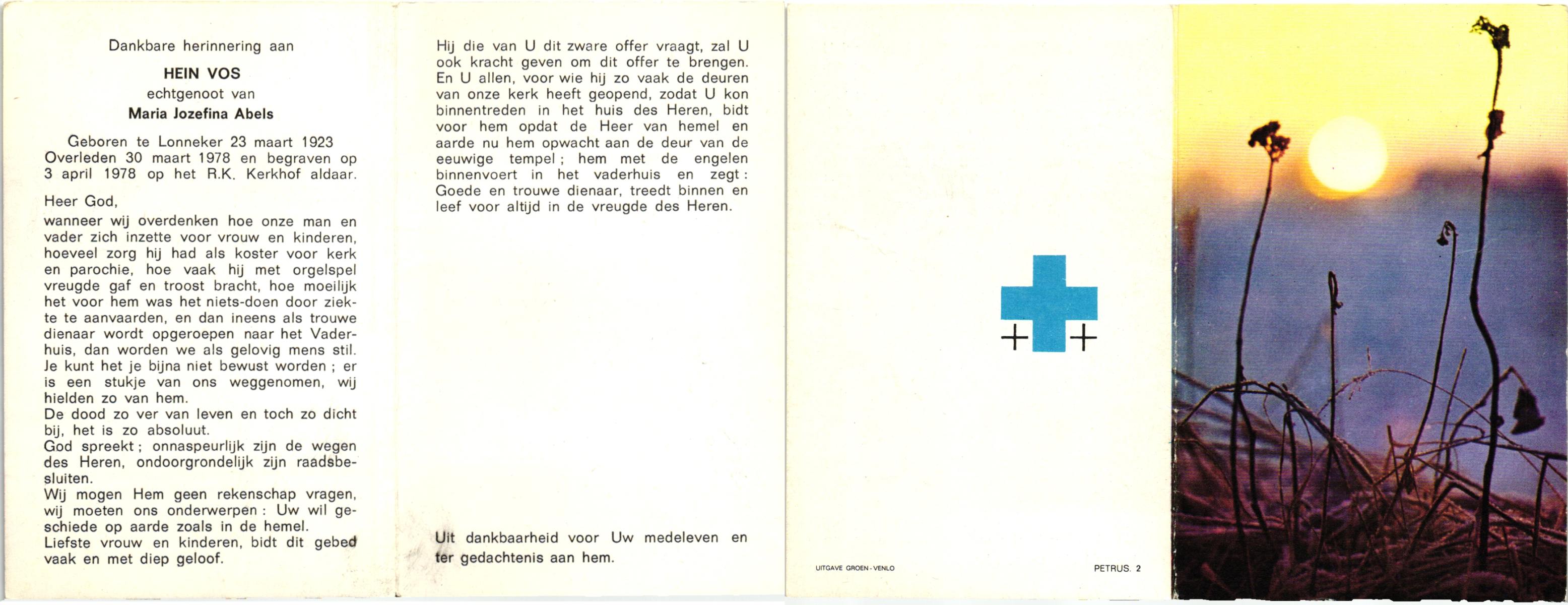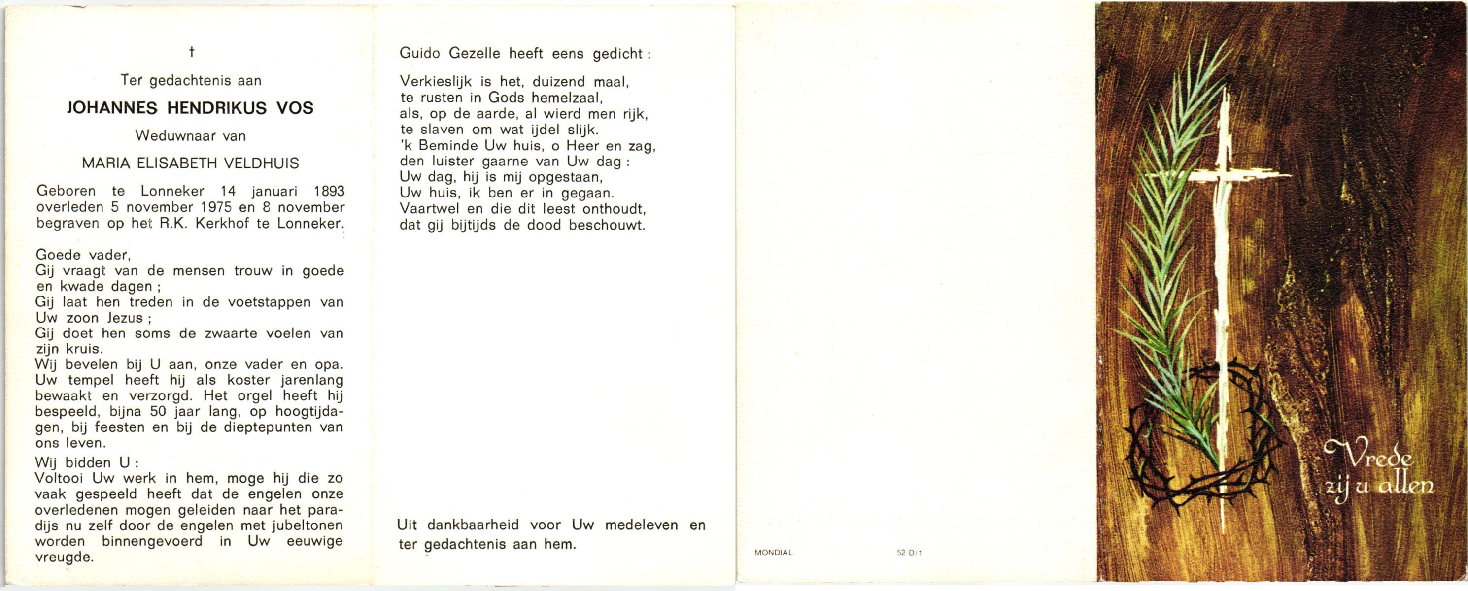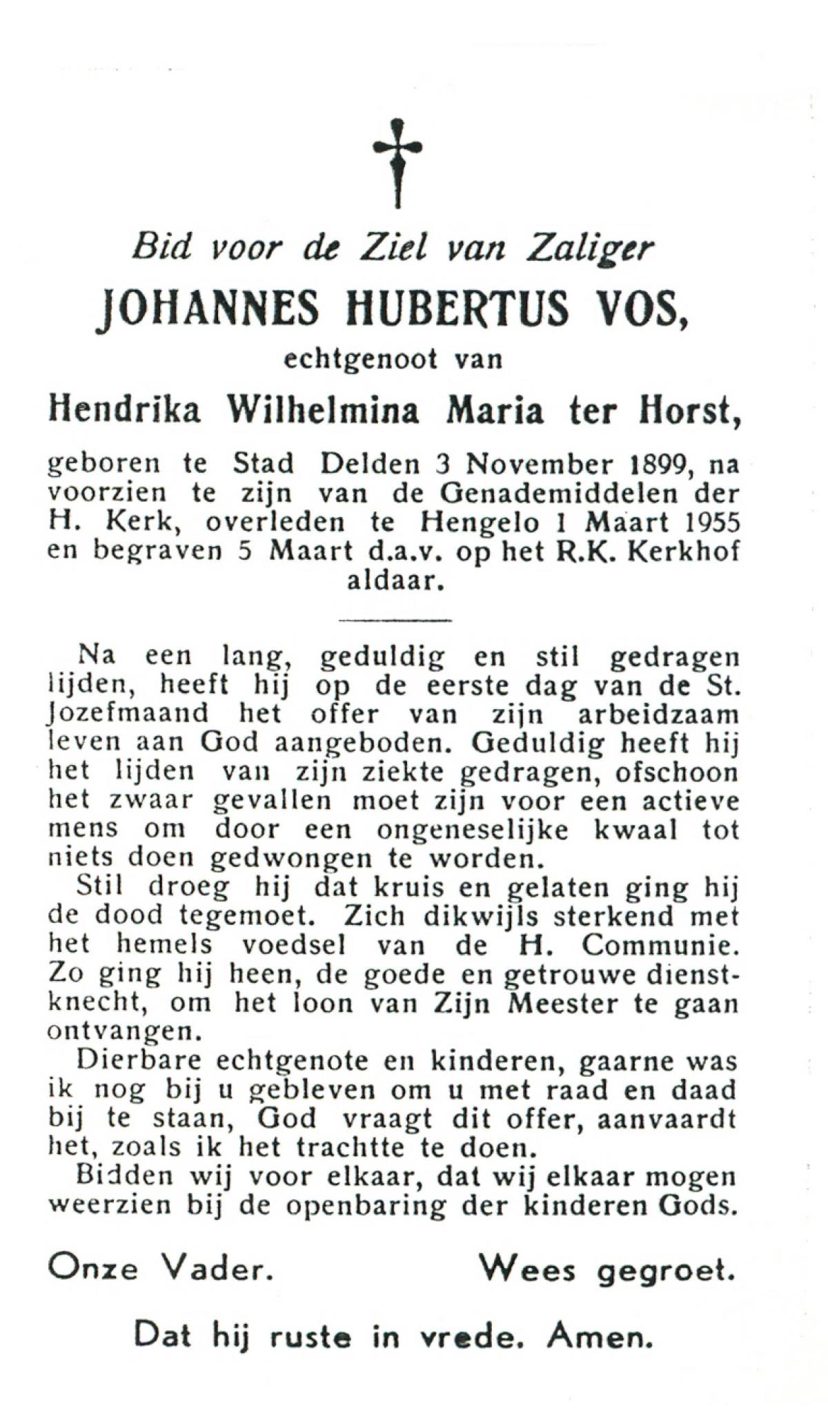 VRERIKS, Jozef Martinus, geboren op 2-6-1915 te Losser, overleden op 23-5-1978 op 62-jarige leeftijd, begraven op 27-5-1978 te Denekamp R.K.kerkhof.