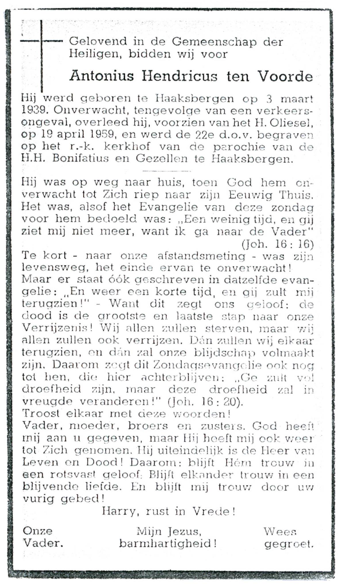 VRIES, de, Johannes Antonius, geboren op 3-5-1918, overleden op 23-6-1954 te Enschede op 36-jarige leeftijd, begraven op 26-6-1954 te Overdinkel.