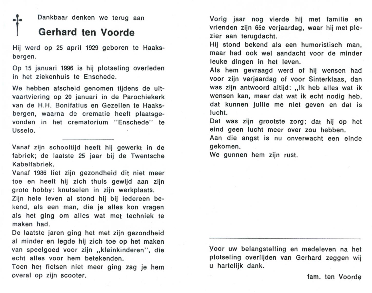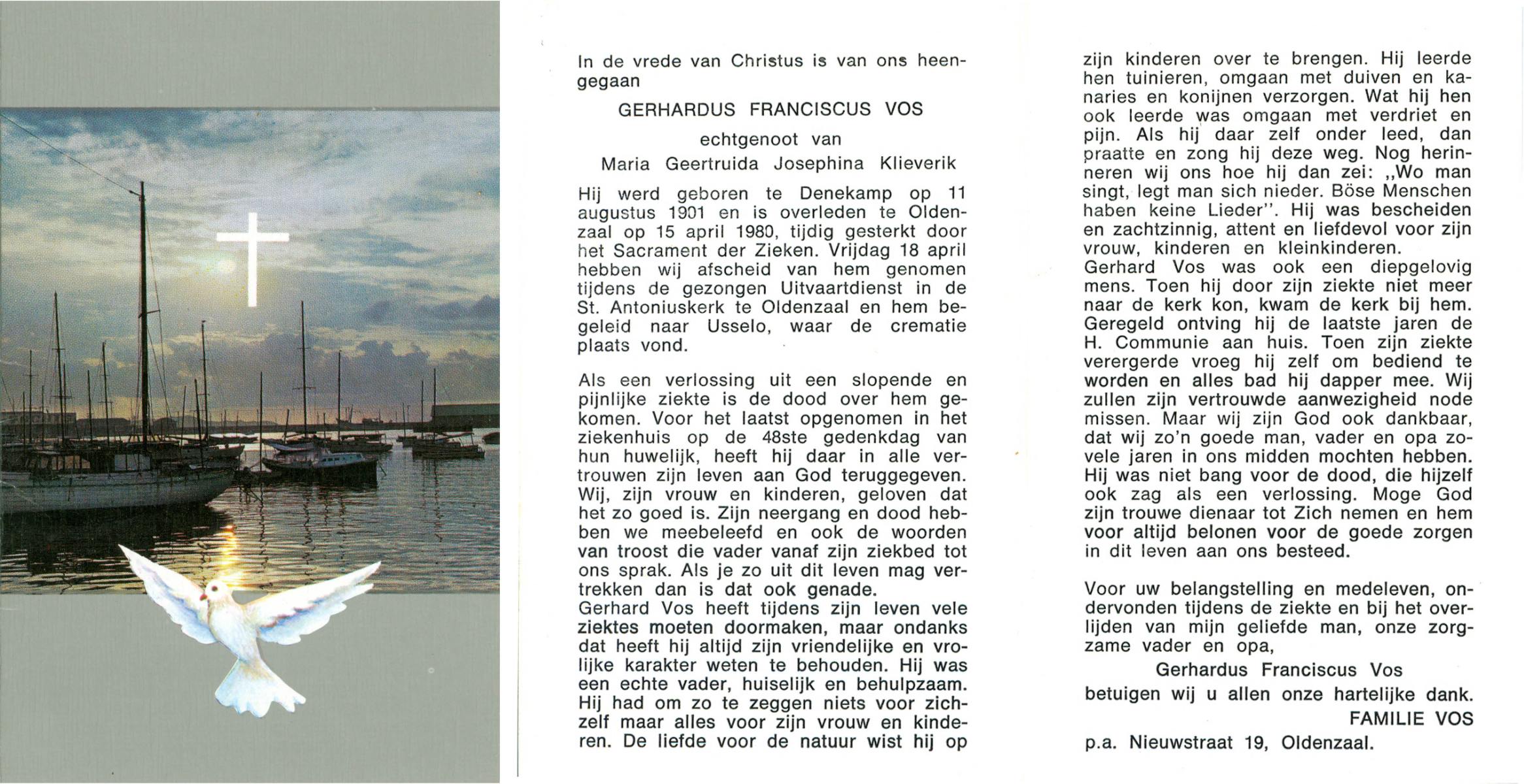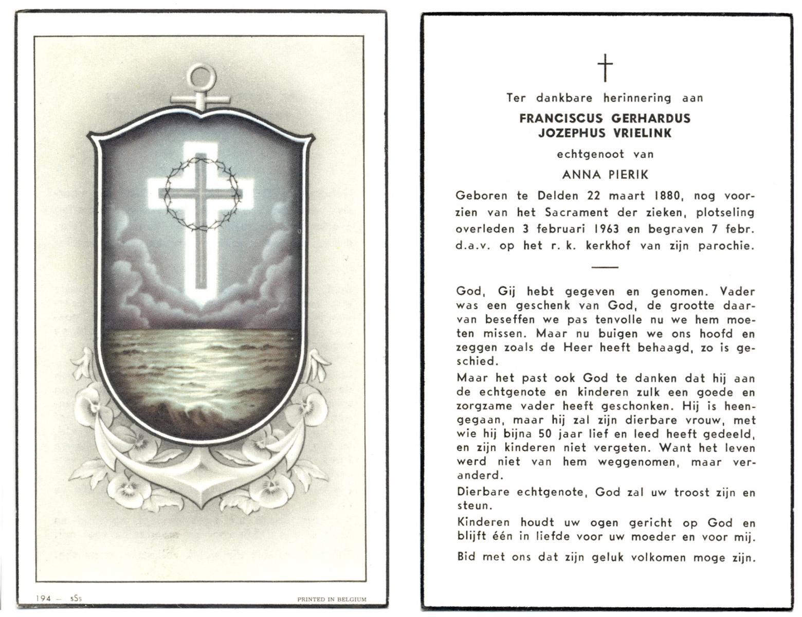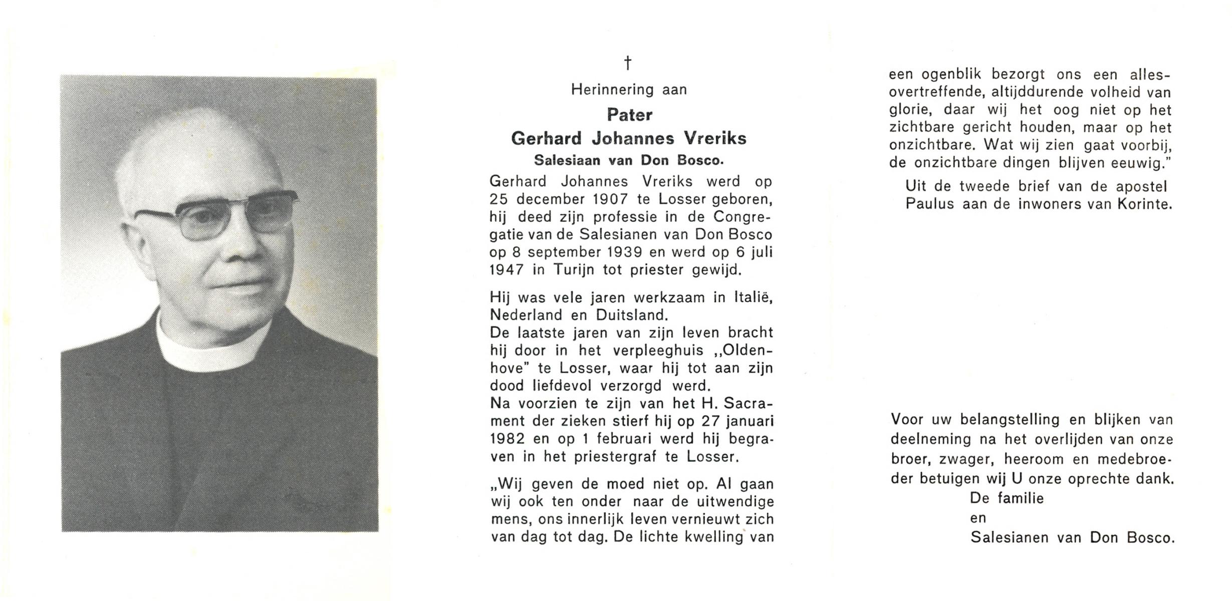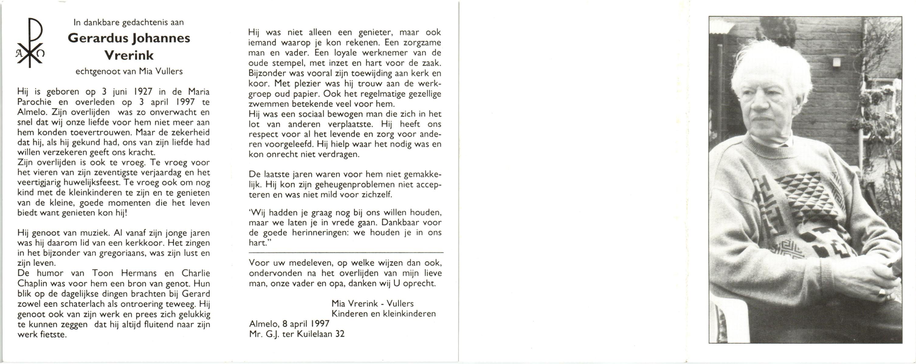 VRERINK, Gerardus Johannes, geboren op 3-6-1927 te Mariaparochie, overleden op 3-4-1997 te Almelo op 69-jarige leeftijd.