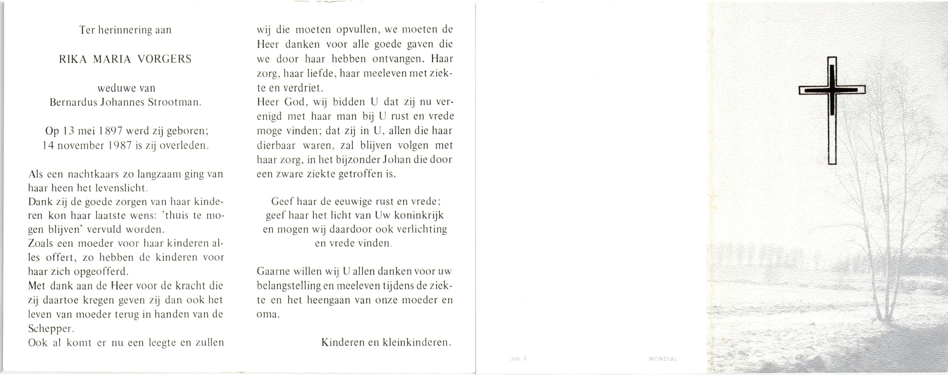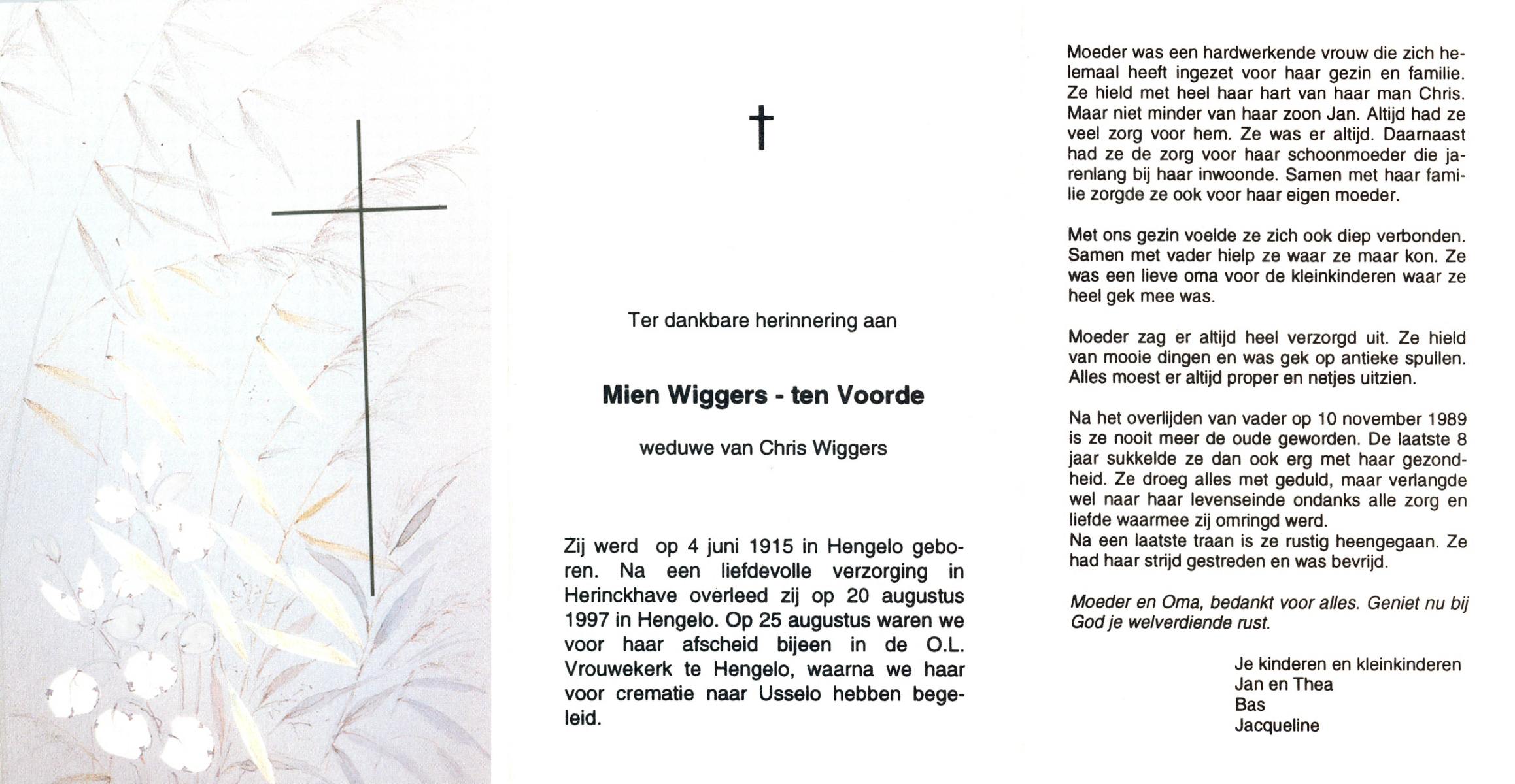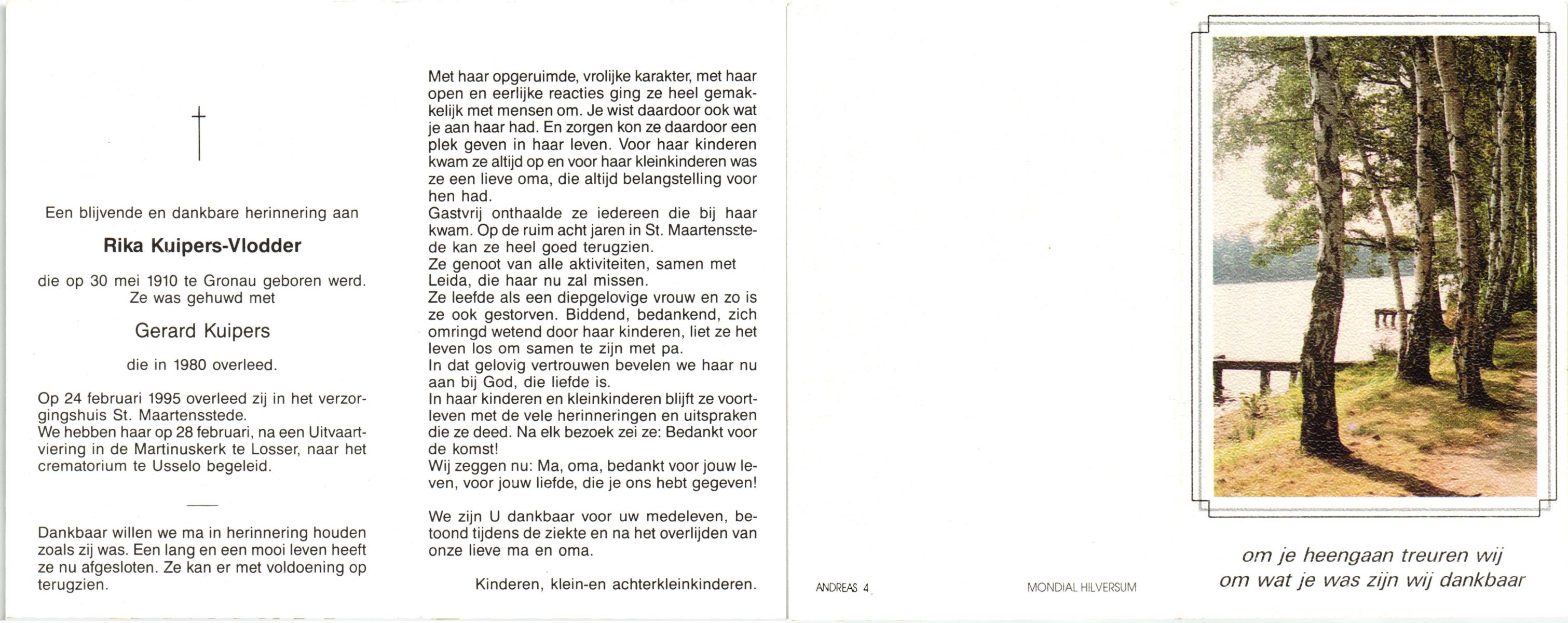 VLODDER, Rika, geboren op 30-5-1910 te Gronau, Dld, overleden op 24-2-1995 te Losser op 84-jarige leeftijd, gecremeerd op 28-2-1995 te Usselo.