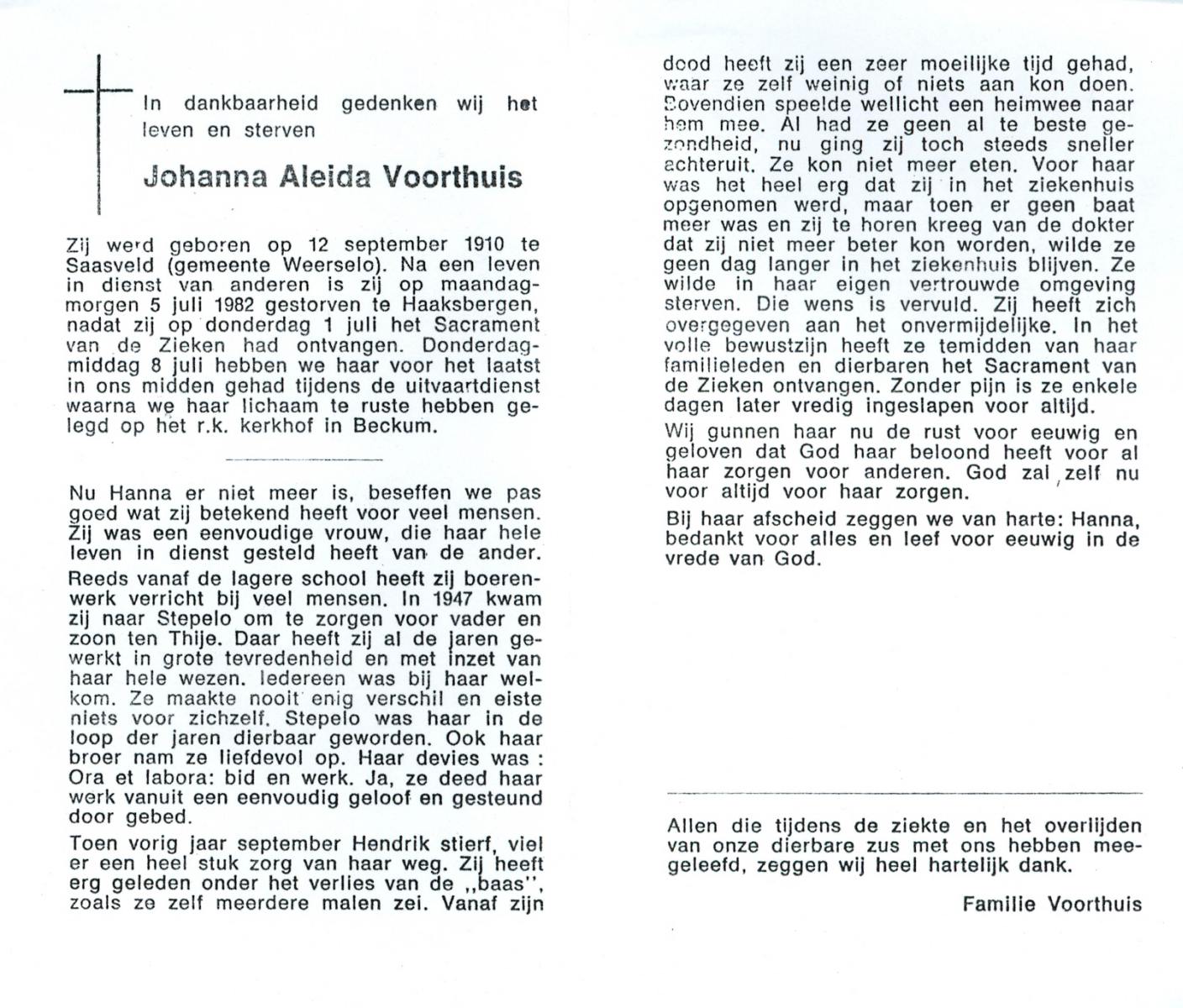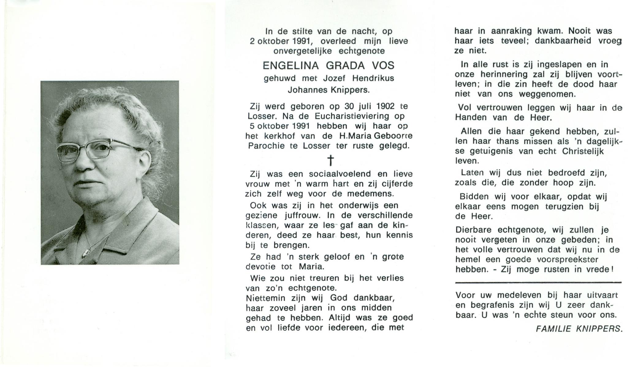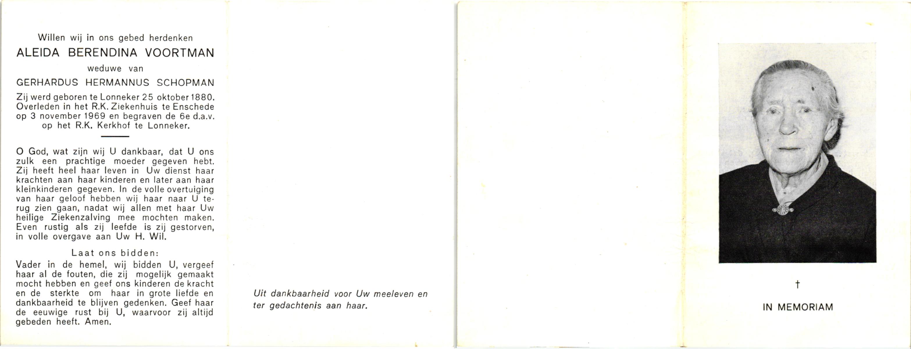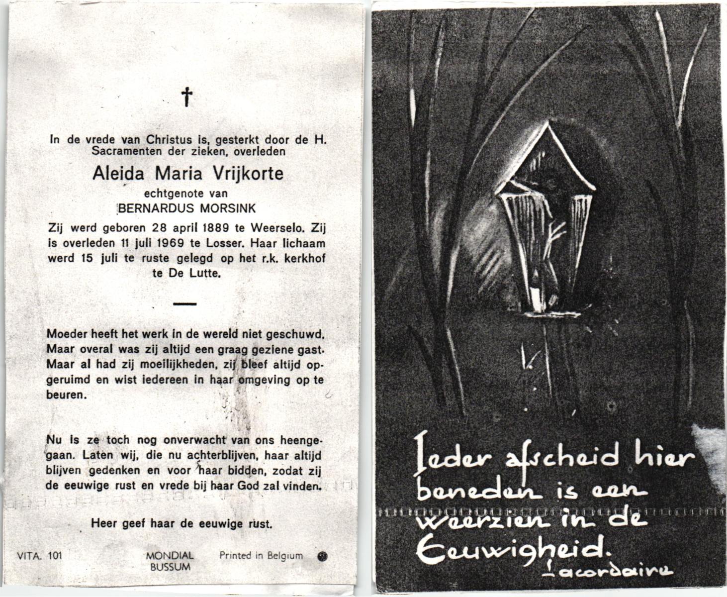 VRIJKORTE, Aleida Maria, geboren op 28-04-1889 te Weerselo, overleden op 11-7-1969 te Losser op 80-jarige leeftijd, begraven op 15-7-1969 te De Lutte.