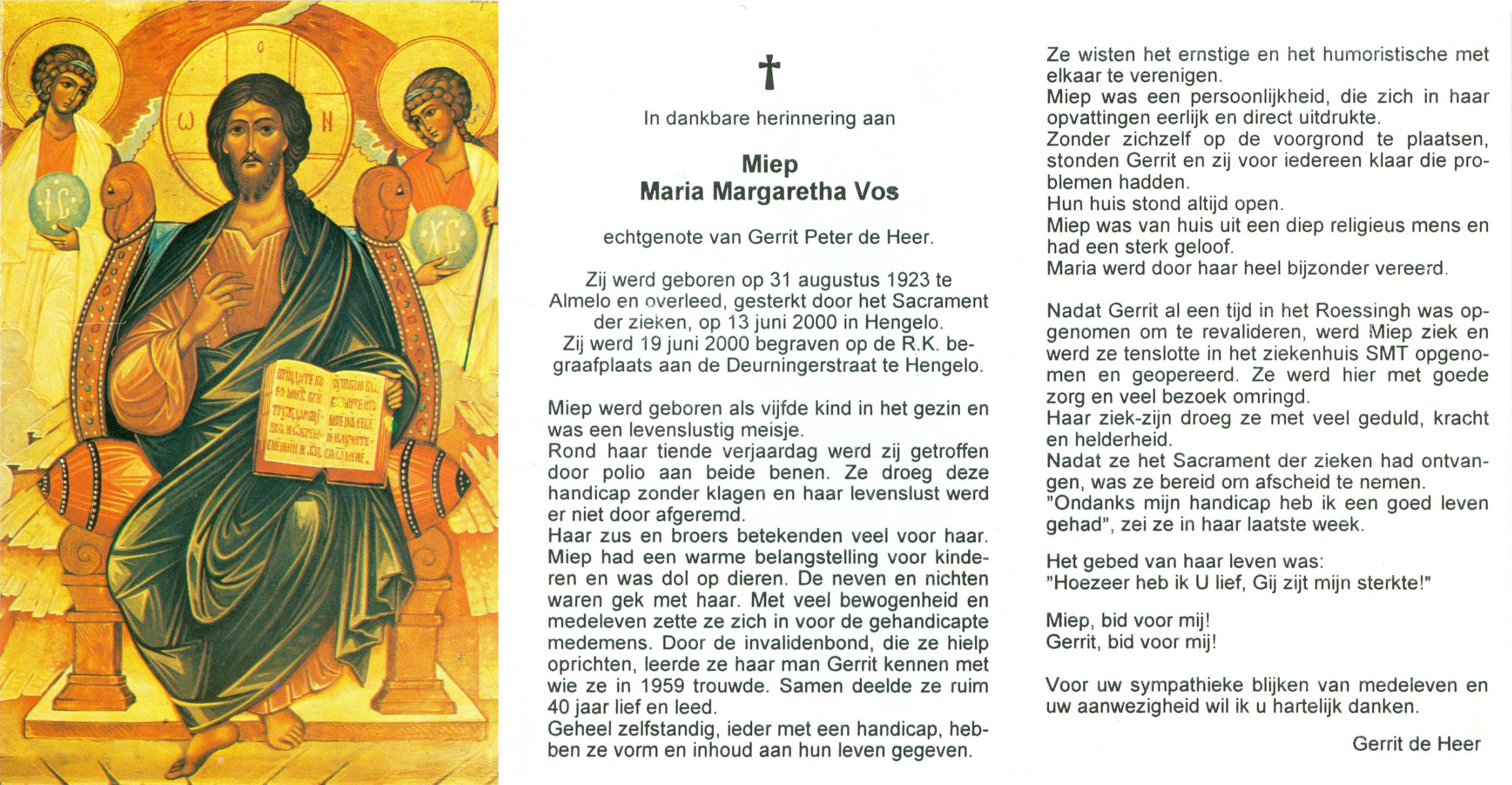 VISSCHERS, , Marietje, geboren op 27-12-1929 te Losser, overleden op 3-1-2000 op 70-jarige leeftijd.