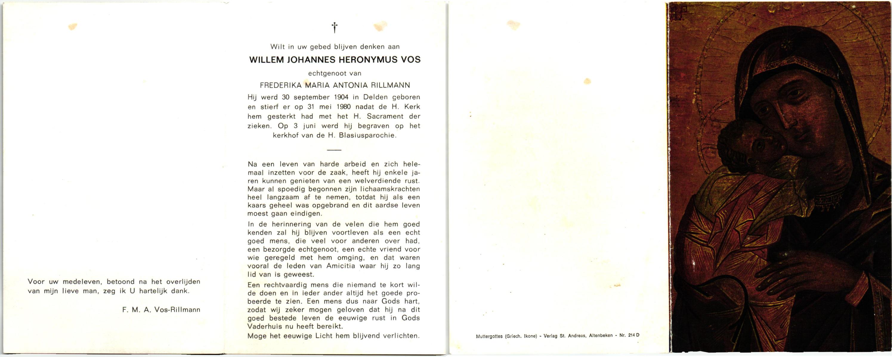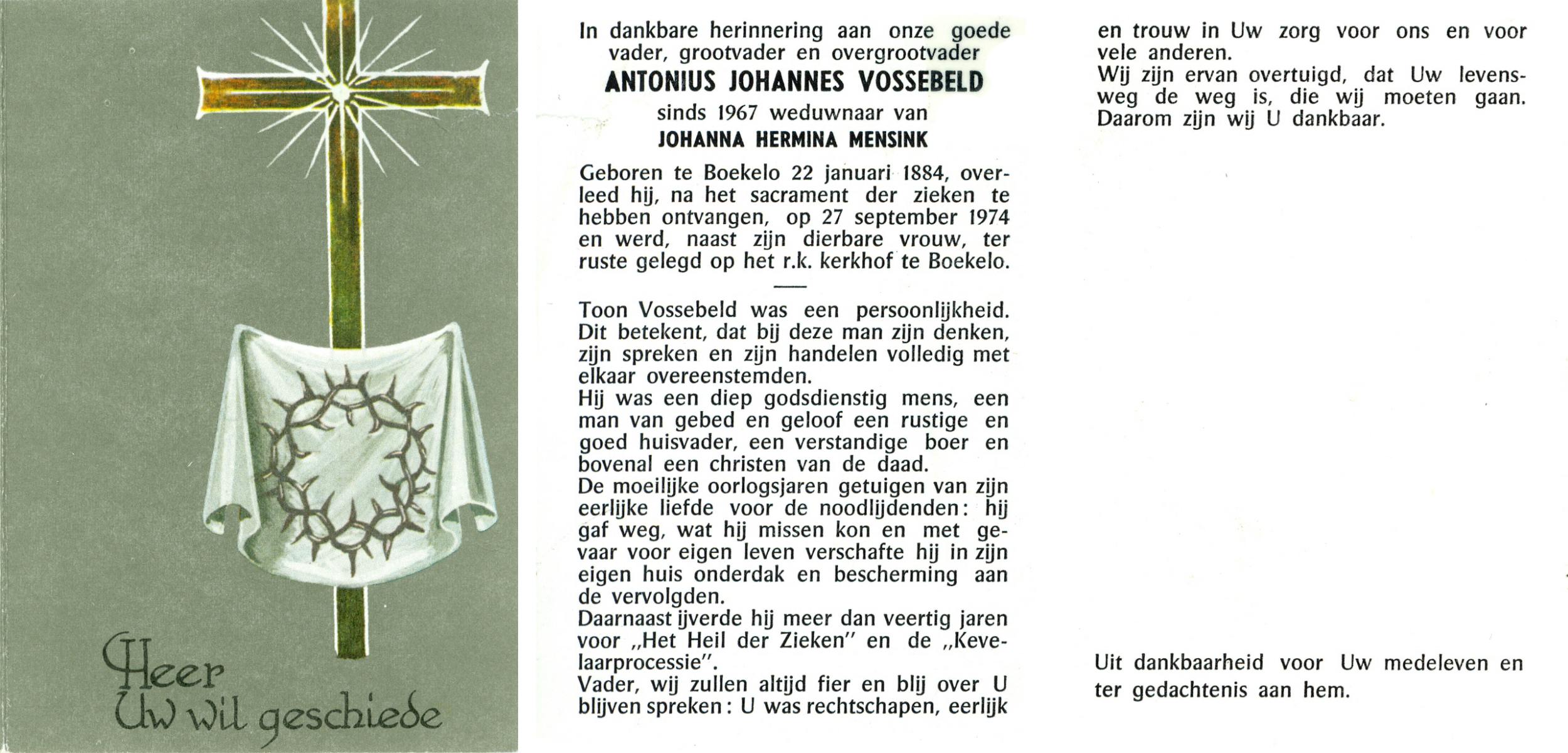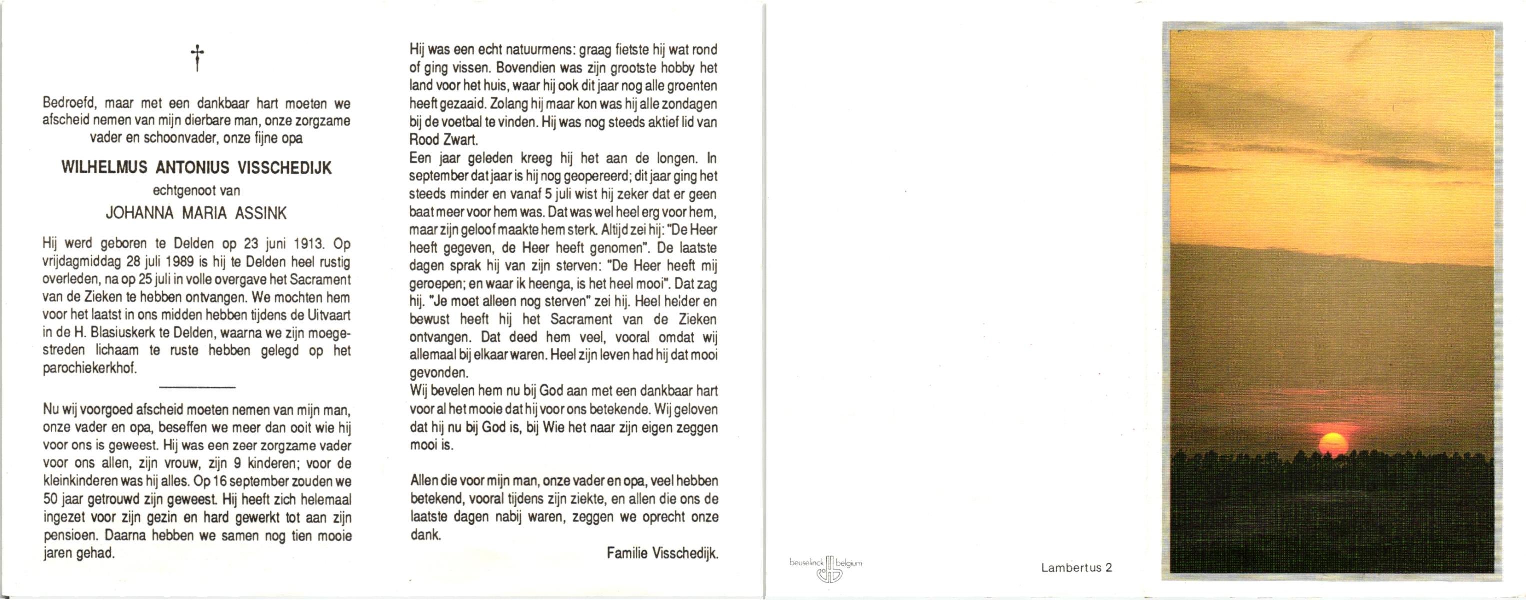 VISSCHEDIJK, , Wilhelmus Antonius, geboren op 23-6-1913 te Delden, overleden op 28-7-1989 te Delden op 76-jarige leeftijd, begraven te Delden.