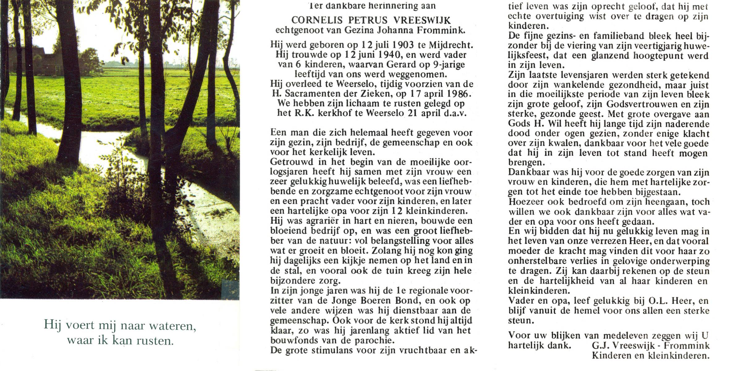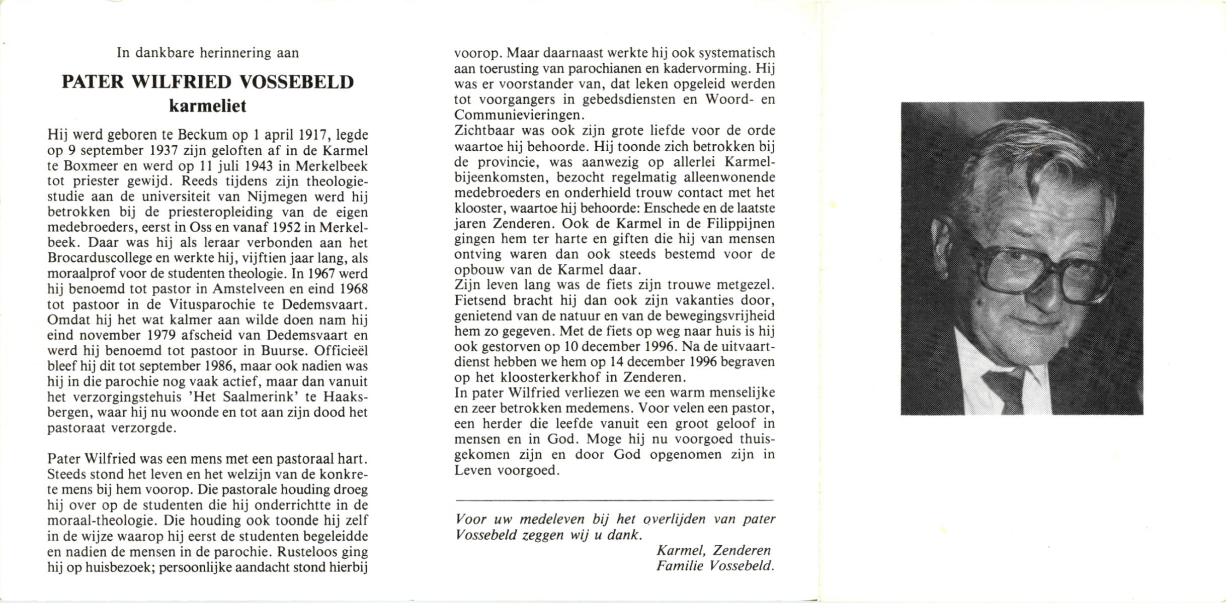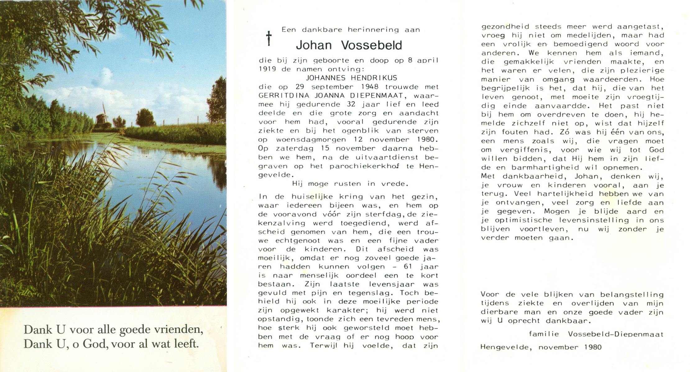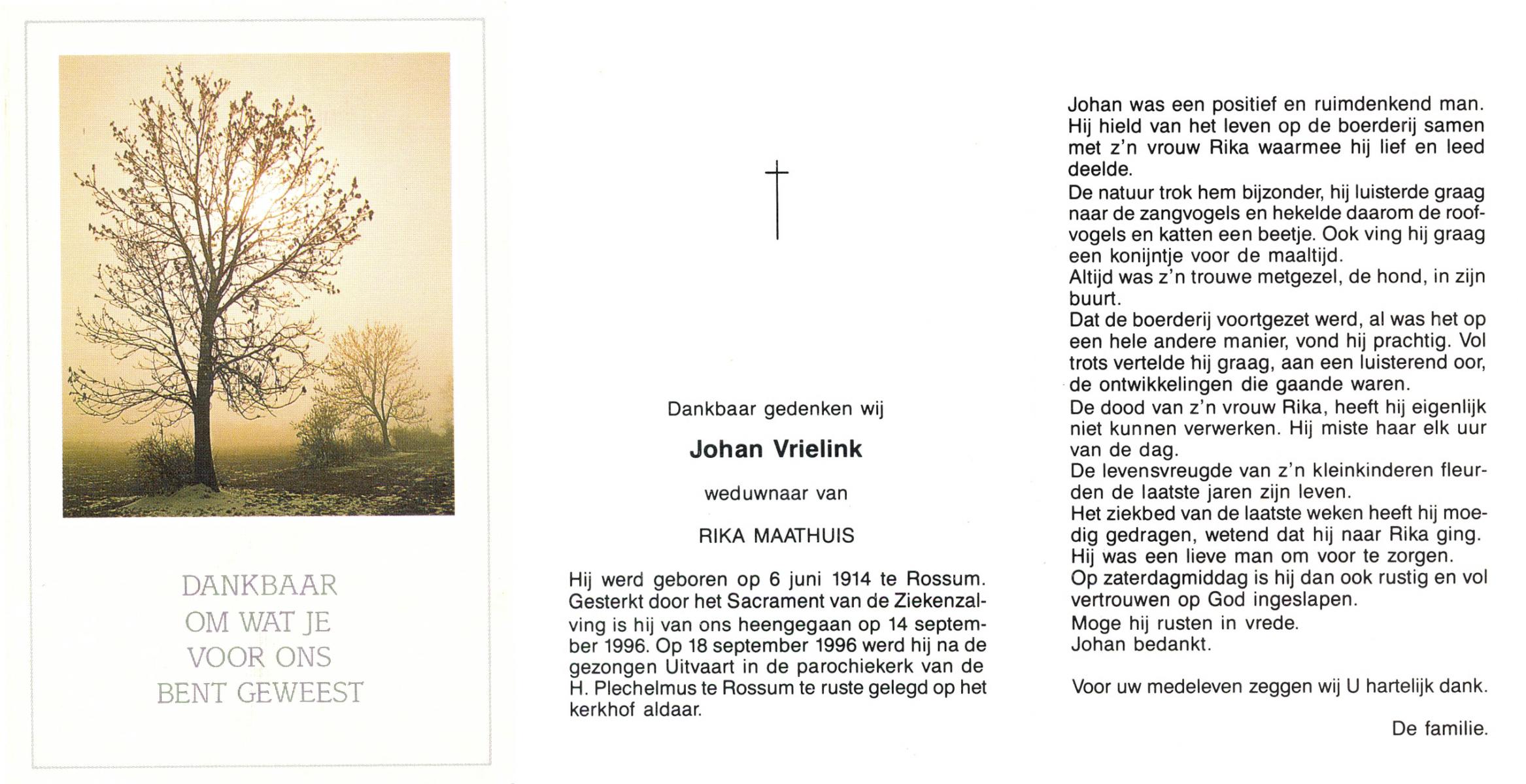 VRIELINK, Johan, geboren op 6-6-1914 te Rossum, overleden op 14-9-1996 op 82-jarige leeftijd, begraven op 18-9-1996 te Rossum.