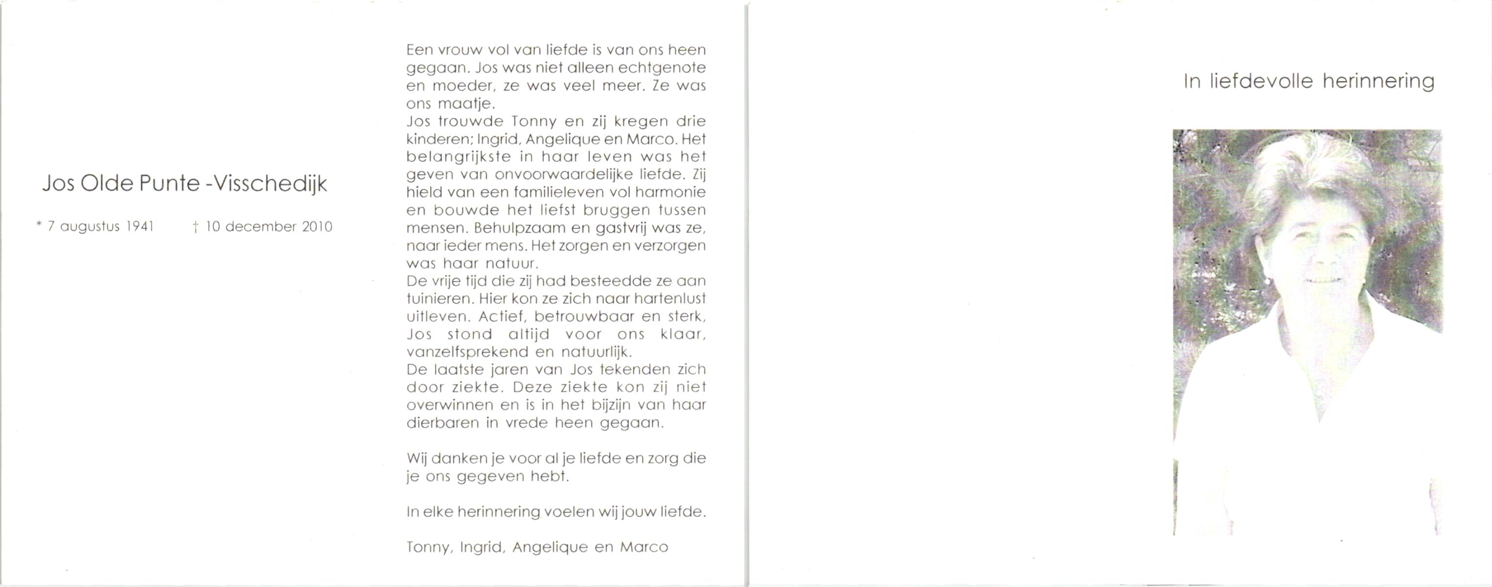 VISSCHEDIJK, , Jos, geboren op 7-8-1941, overleden op 10-12-2010 op 69-jarige leeftijd.