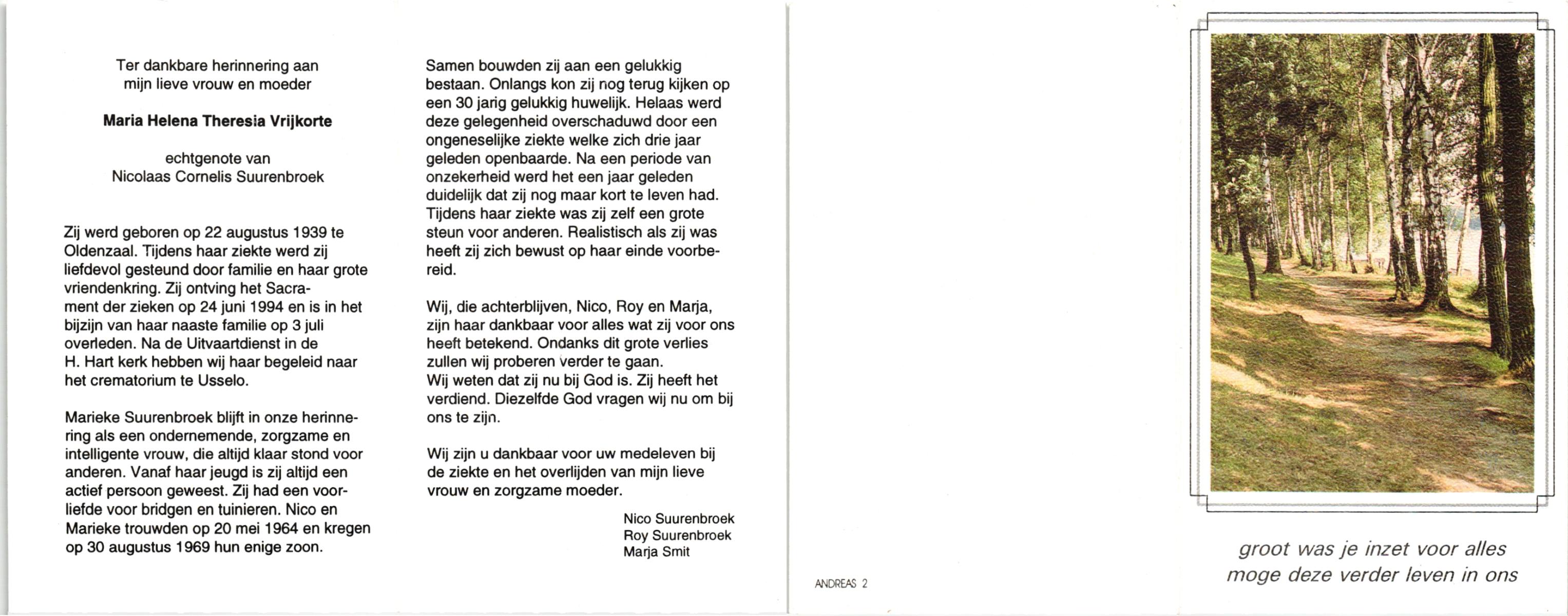 VRIJKORTE, , Maria Helena Theresia, geboren op 22-8-1939 te Oldenzaal, overleden op 3-7-1994 op 54-jarige leeftijd, gecremeerd te Usselo.