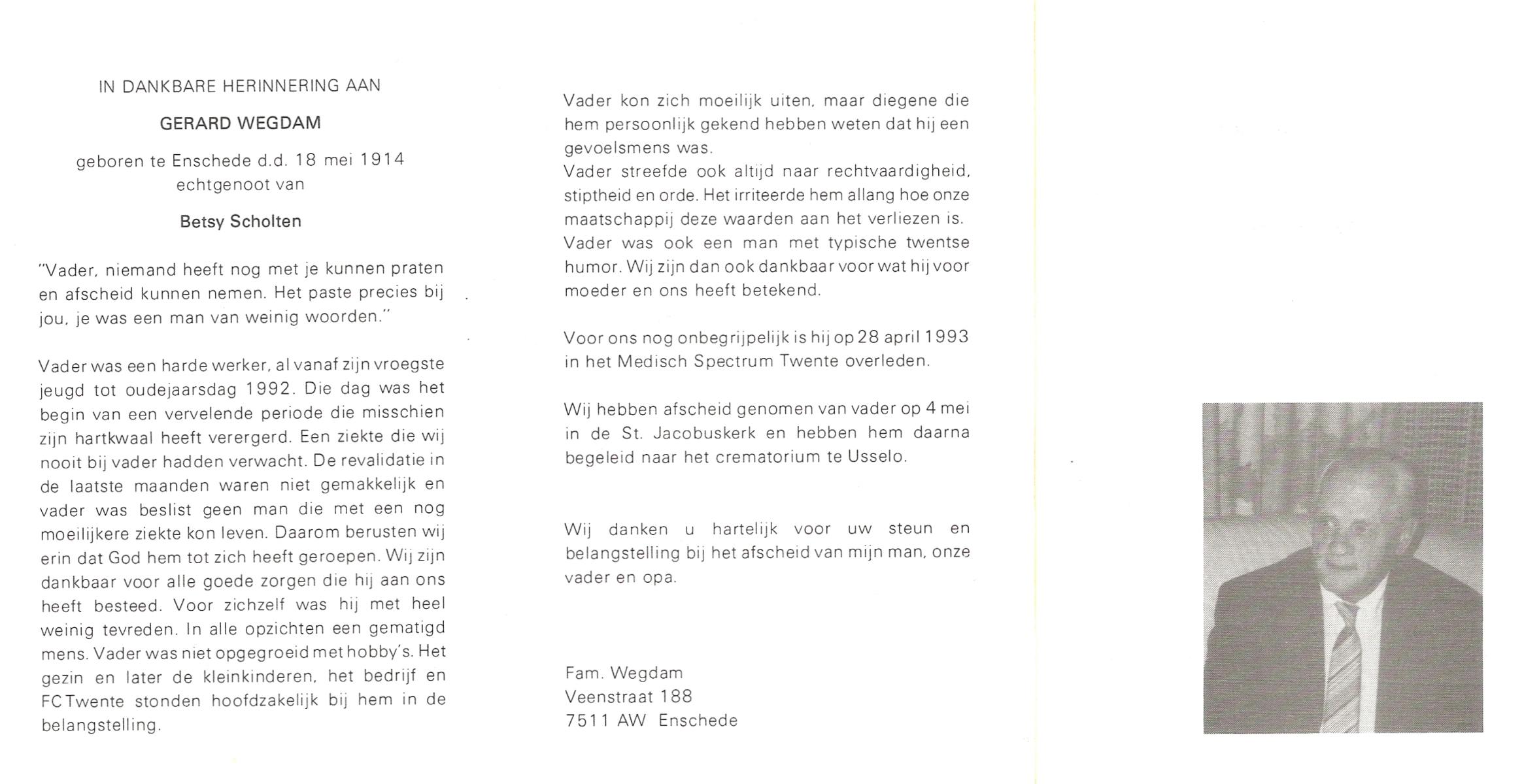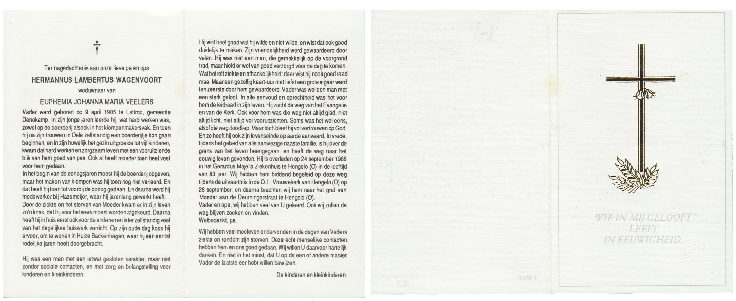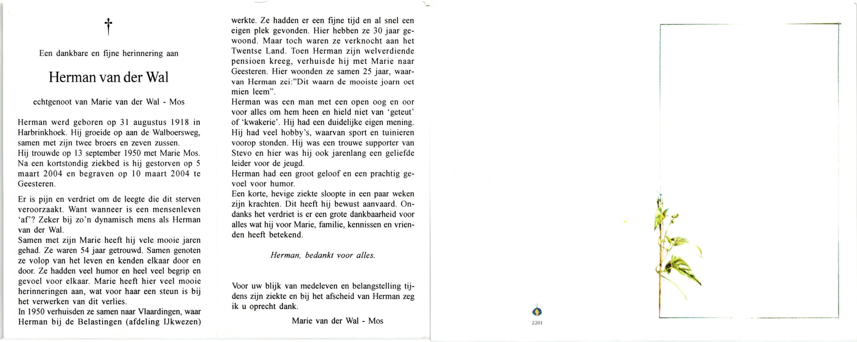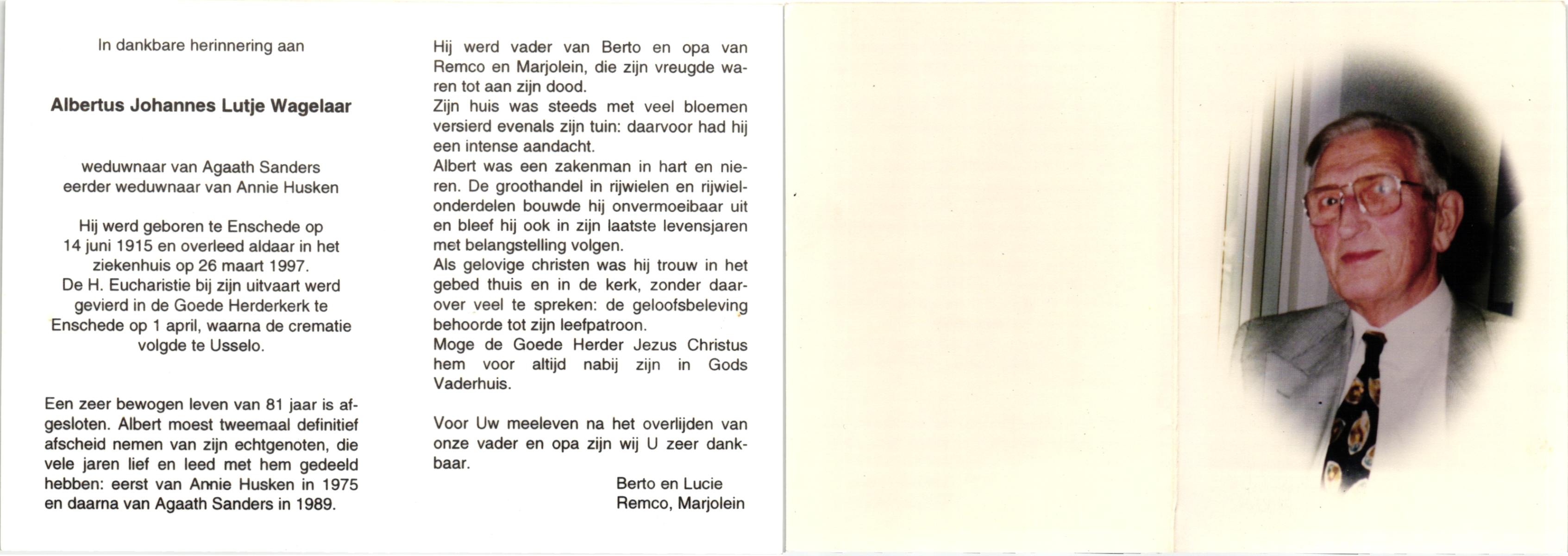 WAGELAAR, Herman, geboren op 1-8-1914 te Hengelo (O), overleden op 21-4-1991 op 76-jarige leeftijd, gecremeerd op 25-4-1991 te Usselo.