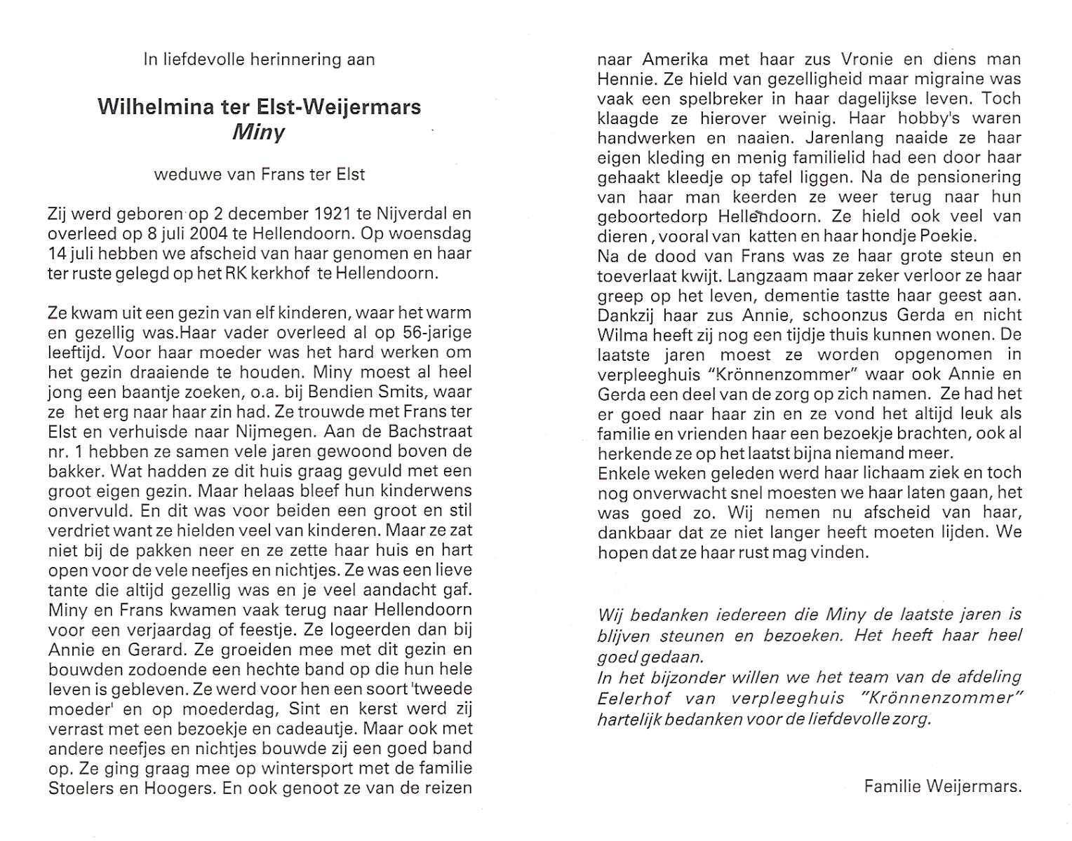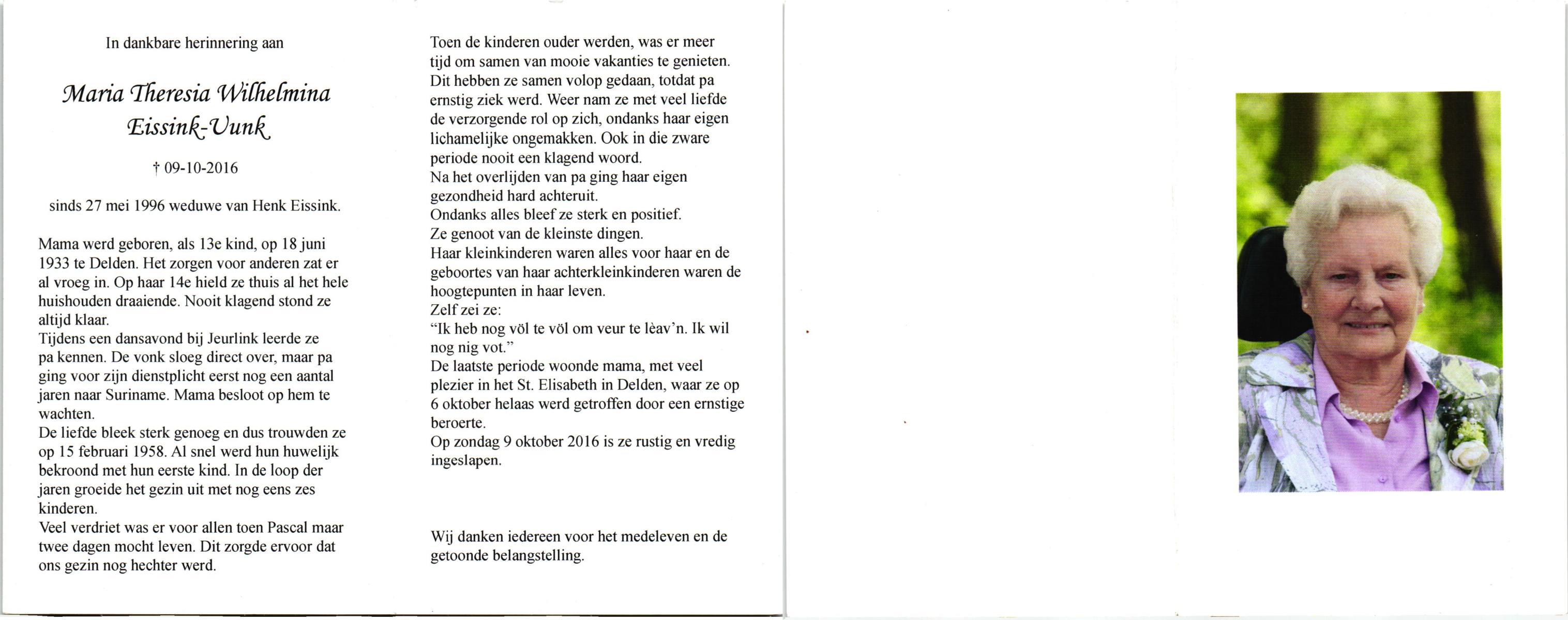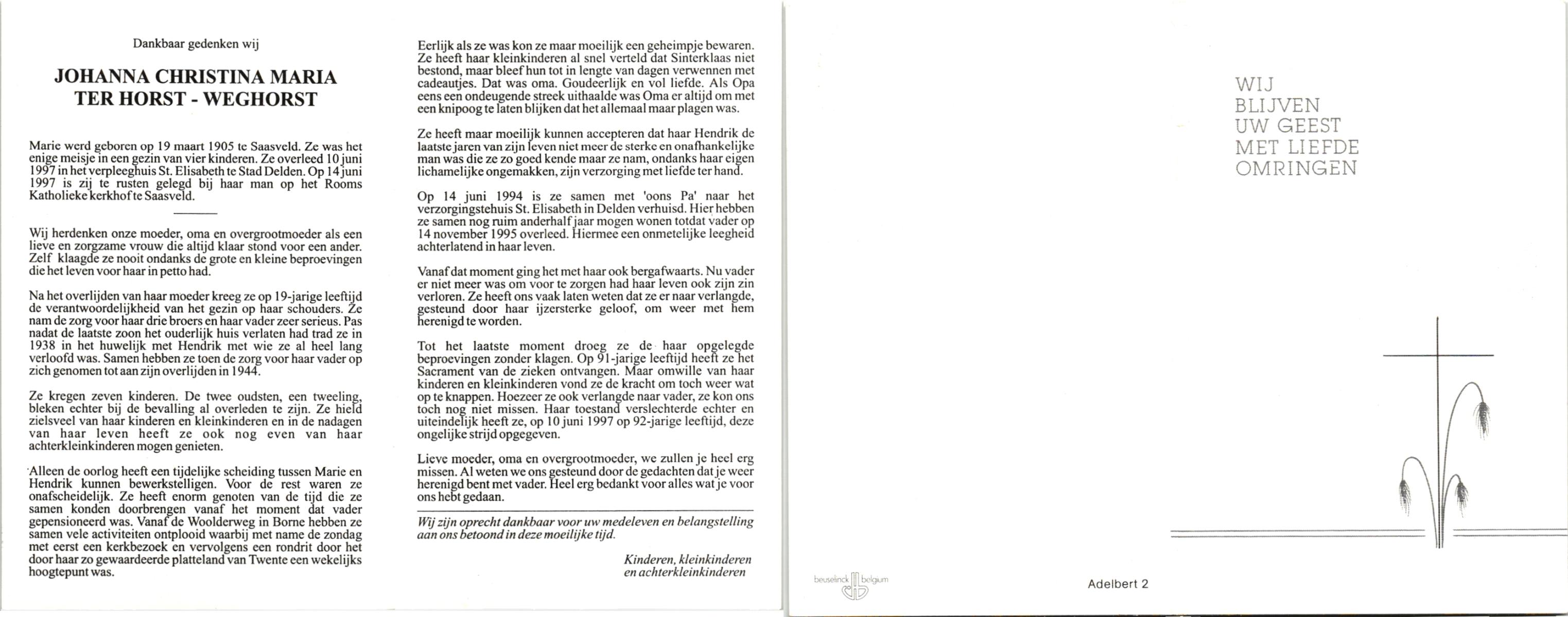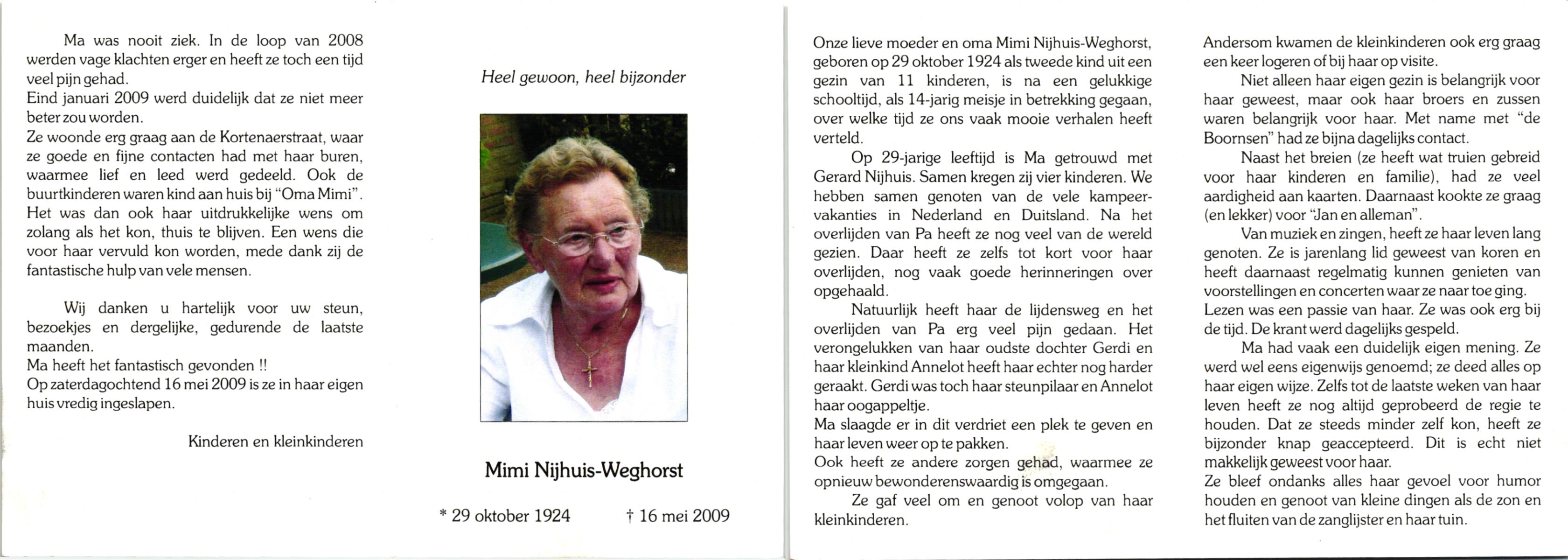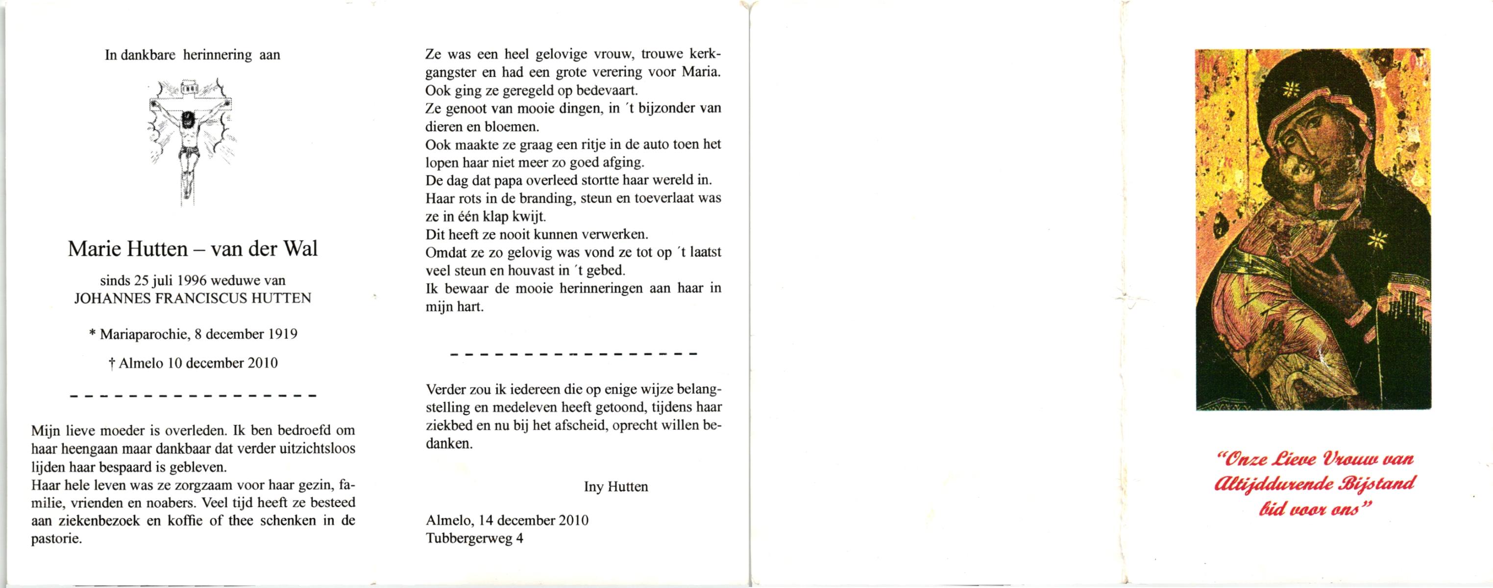 WELHUIS, Marie, geboren op 28-11-1923 te De Lutte, overleden op 11-8-1992 te Enschede op 68-jarige leeftijd, begraven op 15-8-1992 te De Lutte.