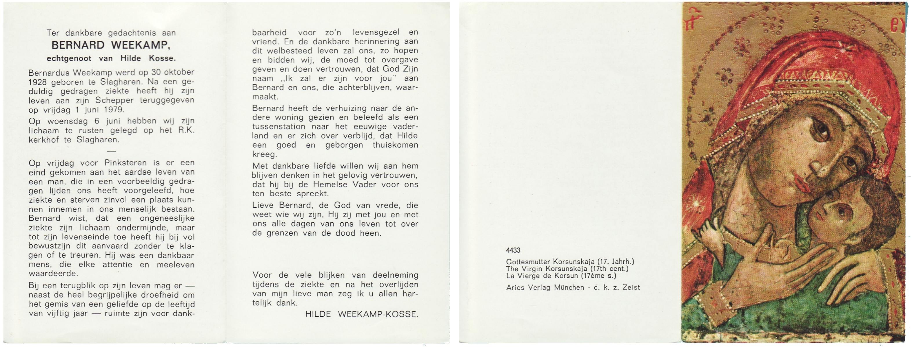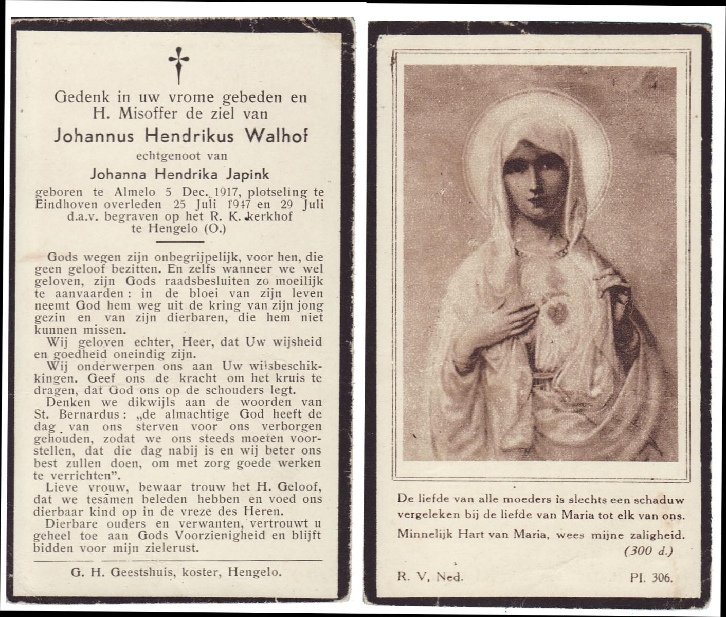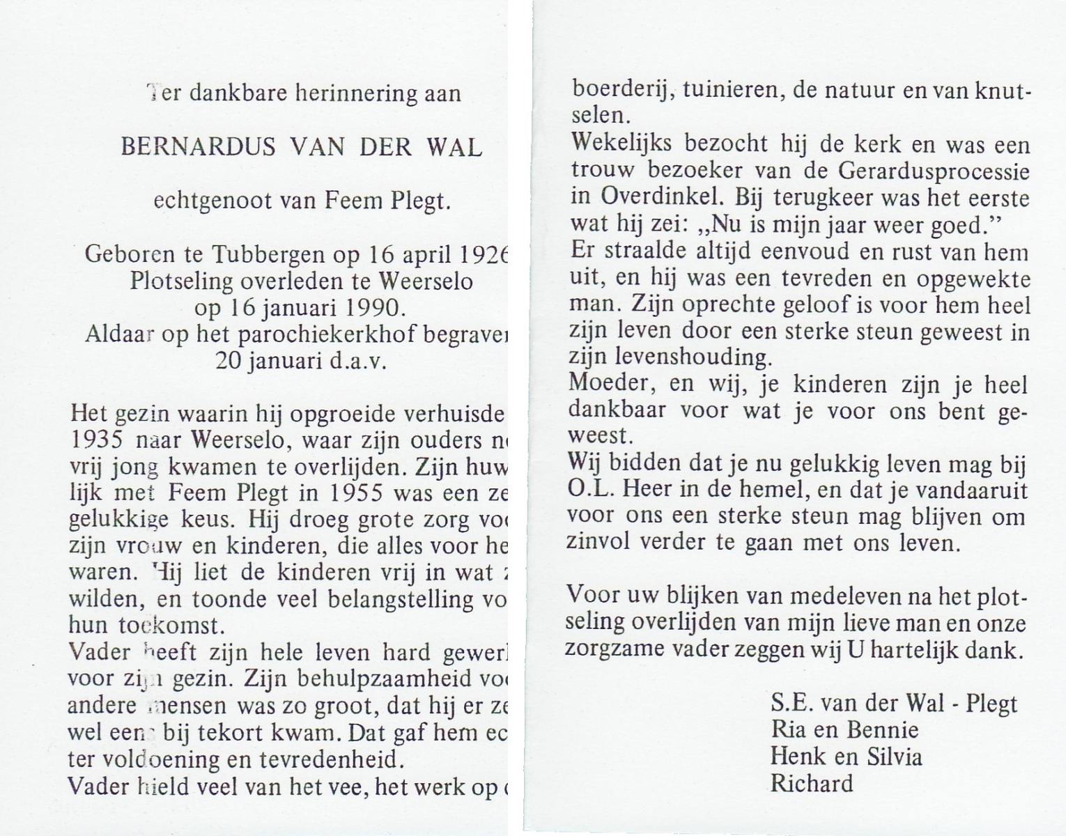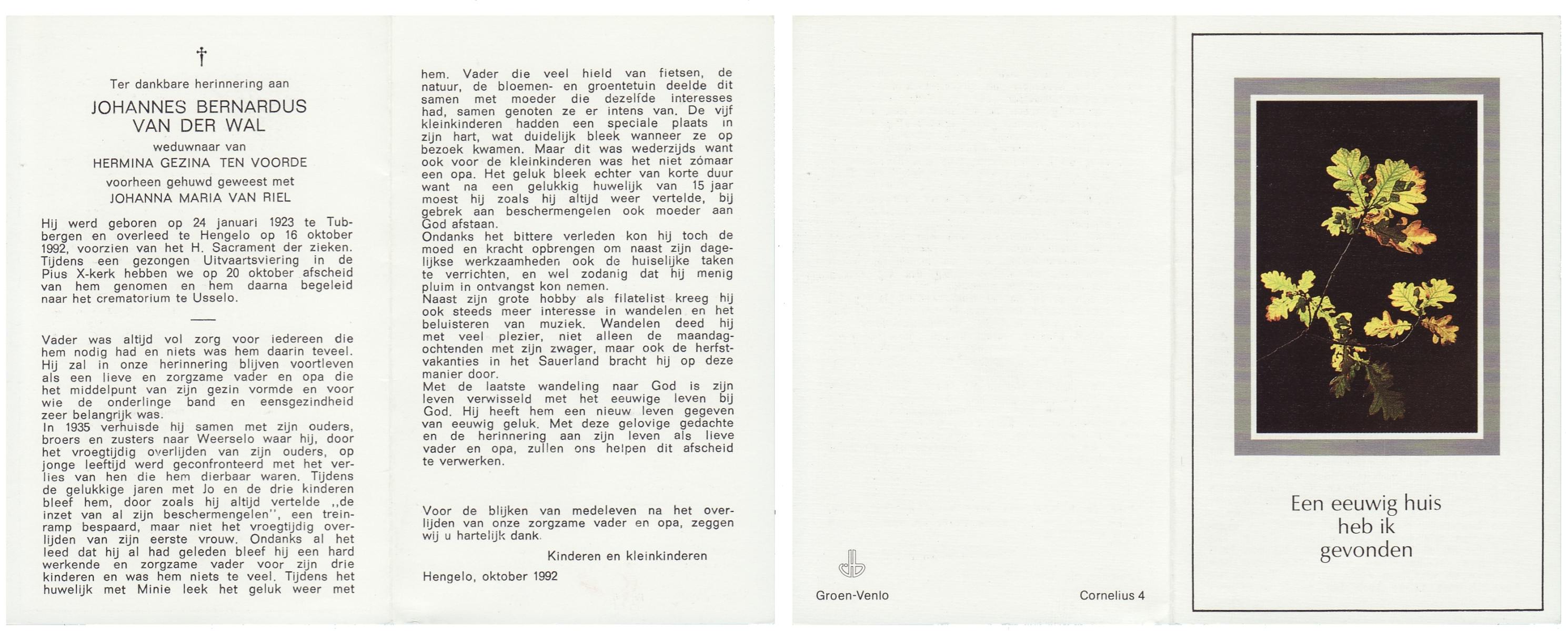 WAAIJER, Bernardus Johannes, geboren op 5-3-1923 te Langeveen, overleden op 17-11-1987 te Almelo op 64-jarige leeftijd, begraven op 21-11-1987 te Langeveen R.K.kerhof.