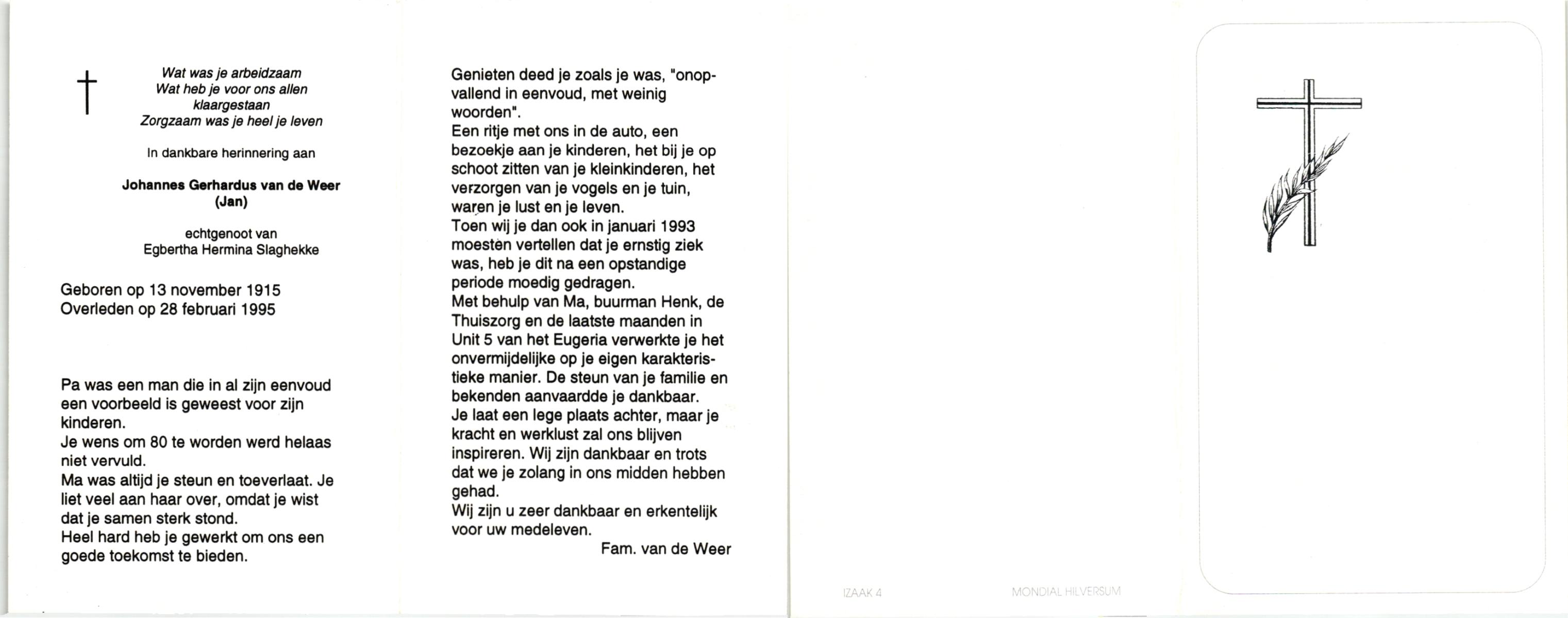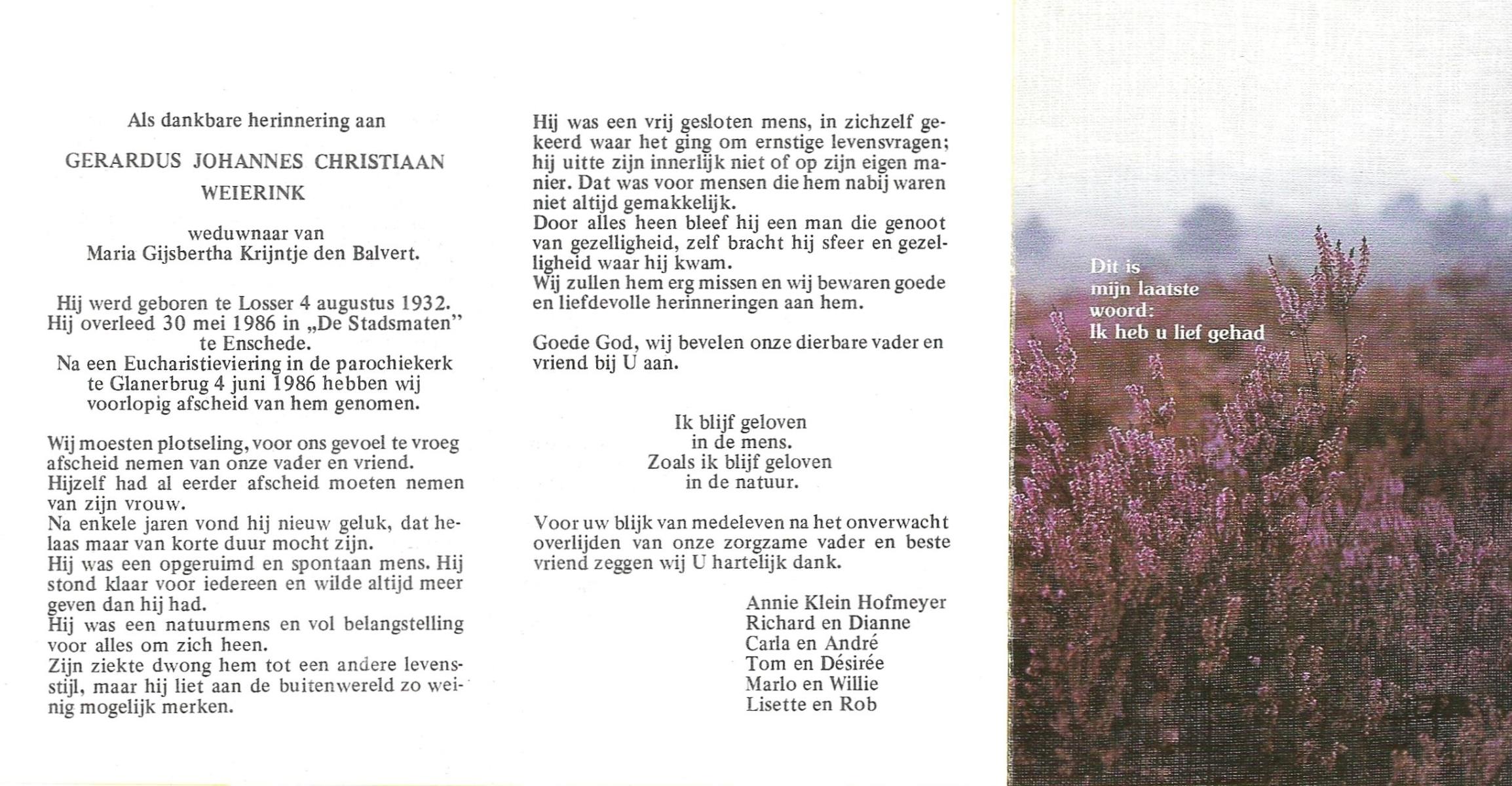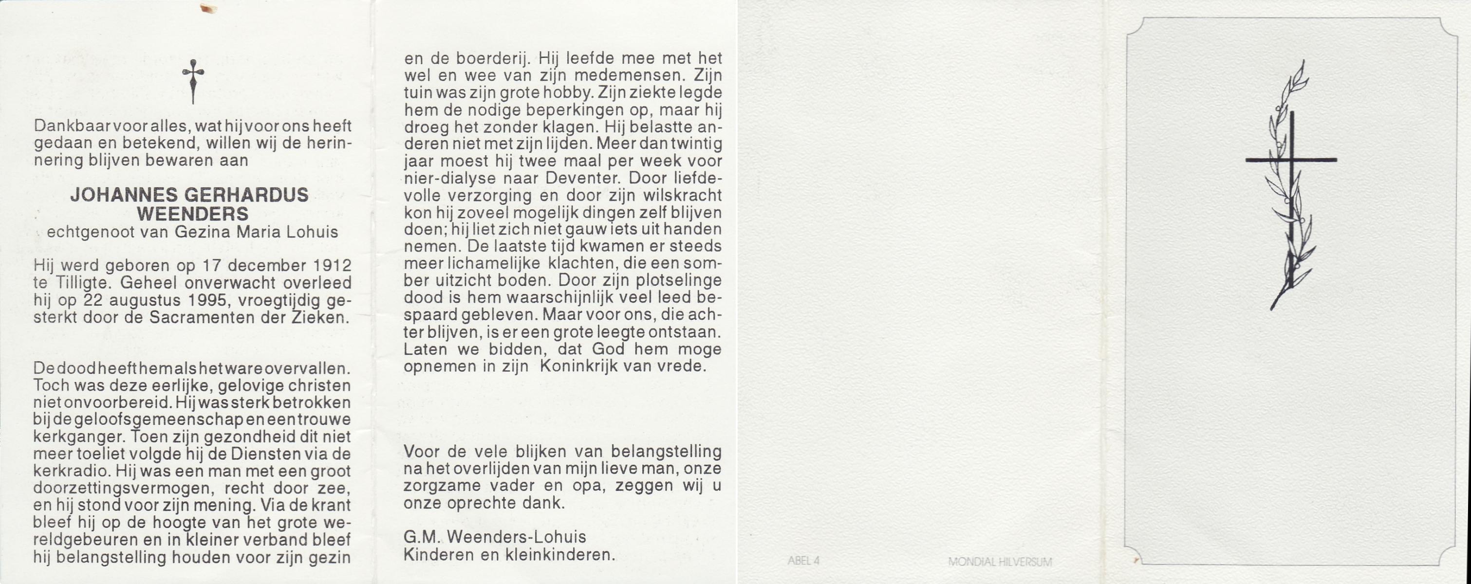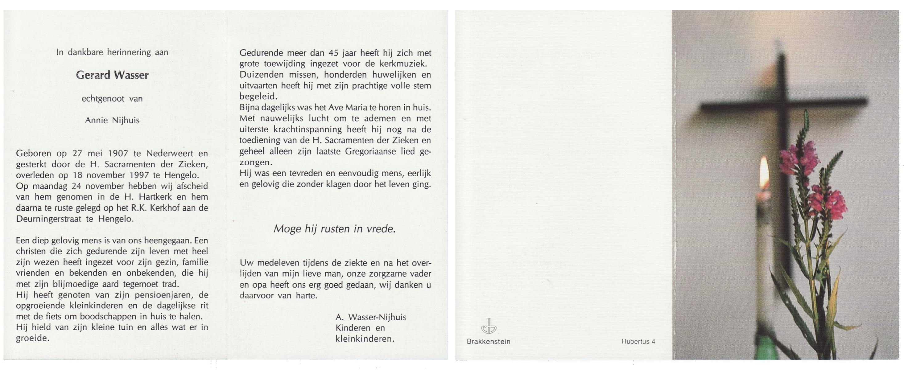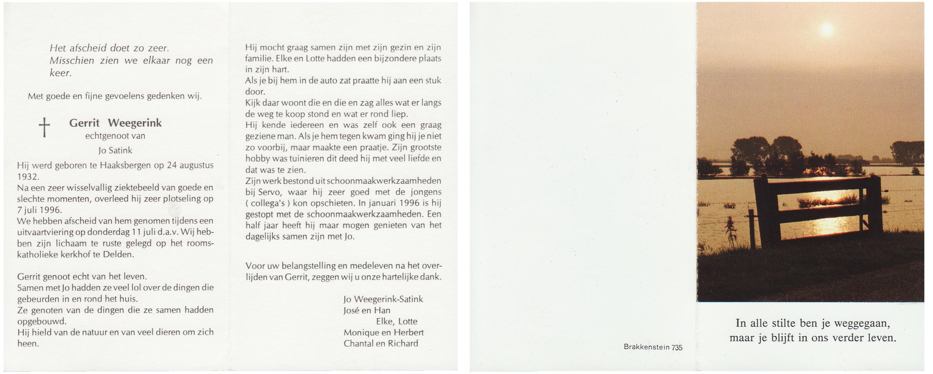 WAAIJER, Gerhardus Bernardus, geboren op 7-1-1916 te Langeveen, overleden op 16-7-1998 te Tubbergen op 82-jarige leeftijd, begraven op 21-7-1998 te Langeveen.