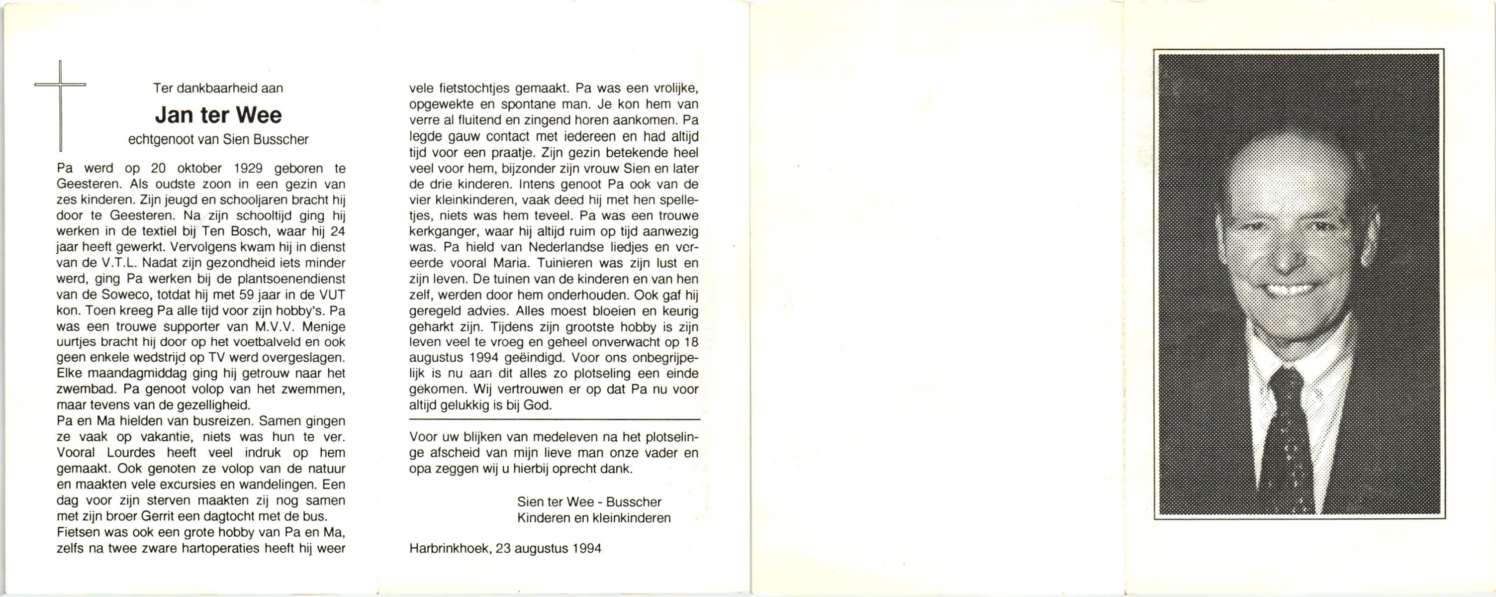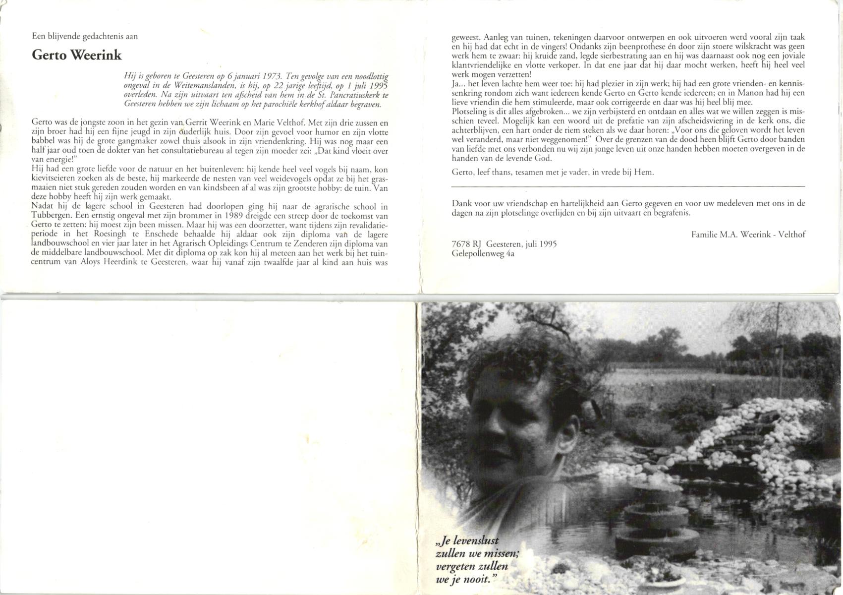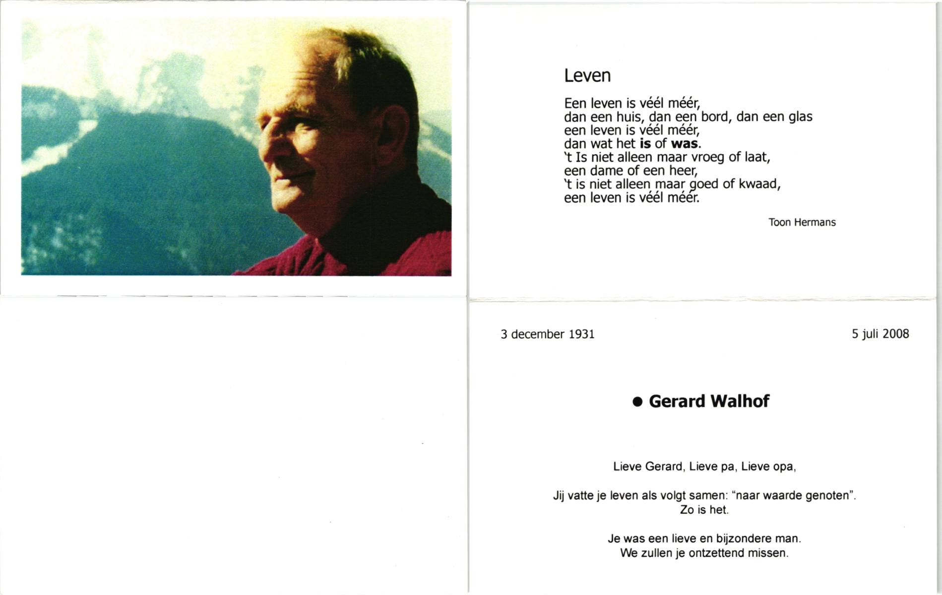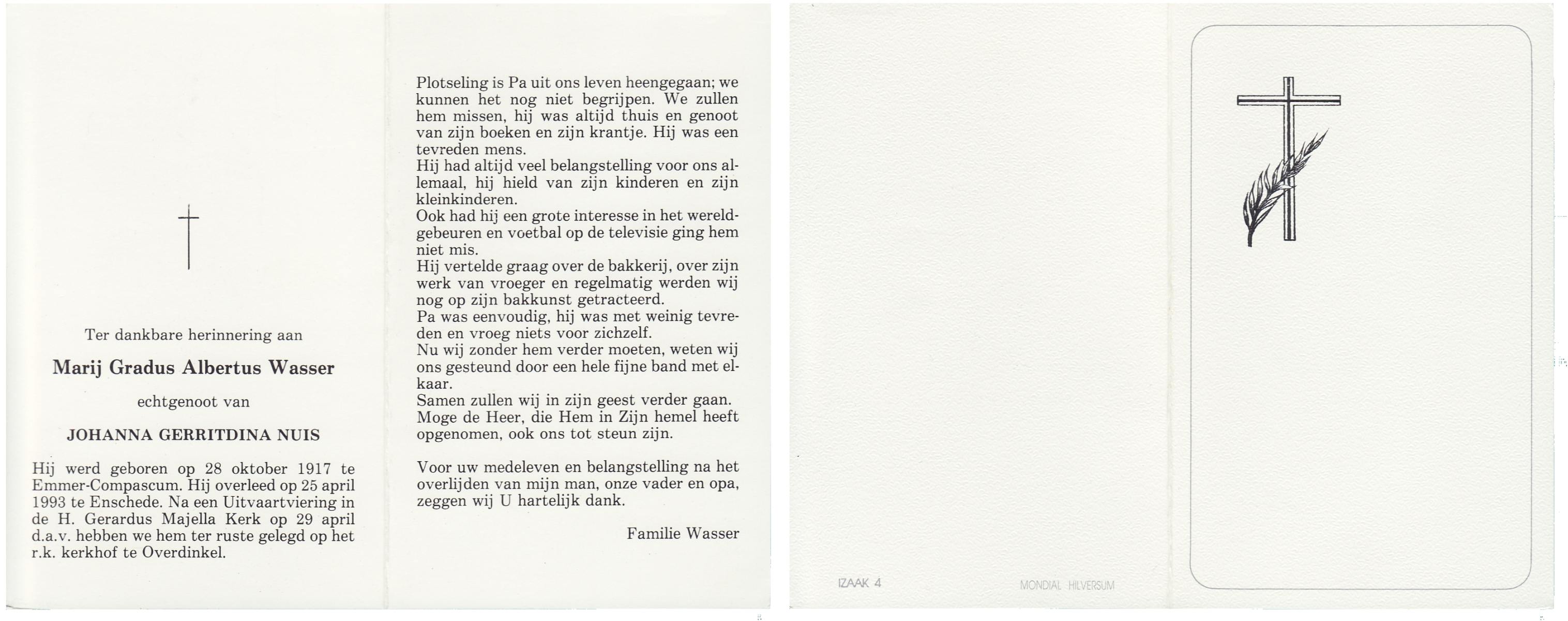 WAAIJER, Gerhardus Bernardus, geboren op 7-1-1916 te Langeveen, overleden op 16-7-1998 te Tubbergen op 82-jarige leeftijd, begraven op 21-7-1998 te Langeveen.