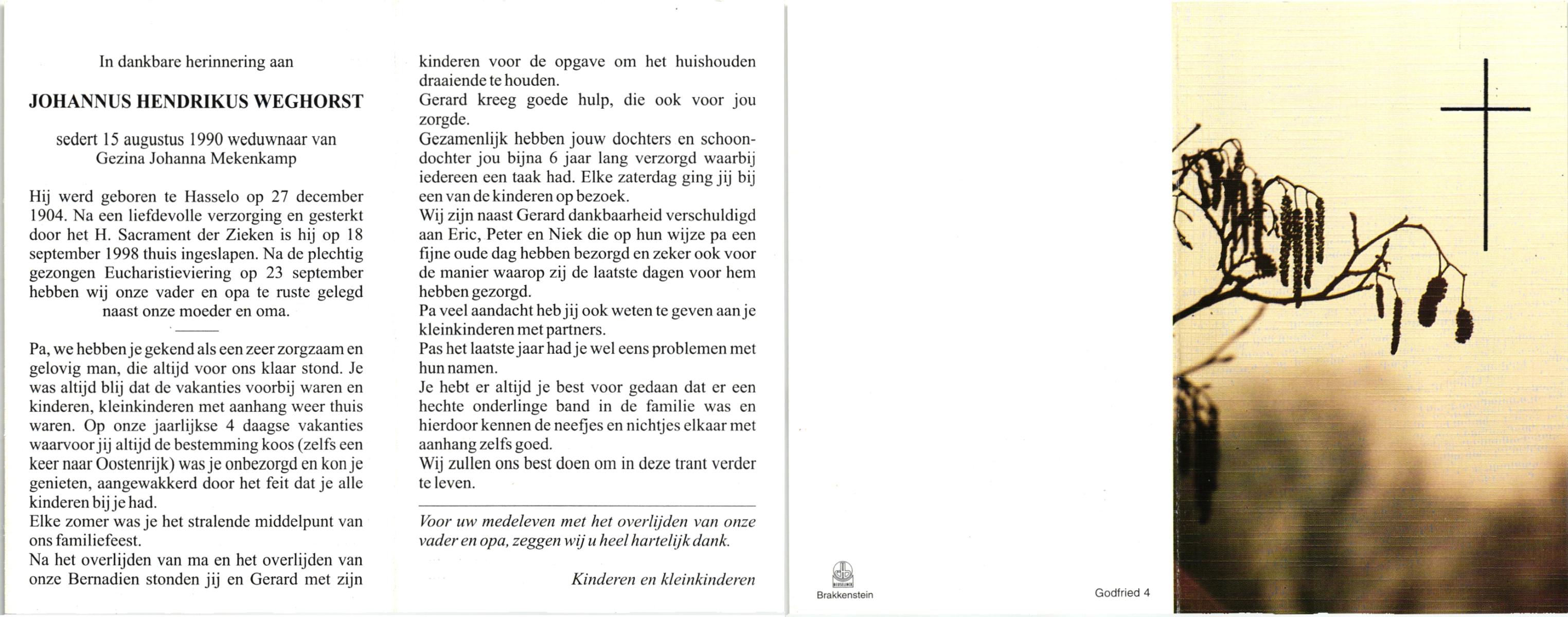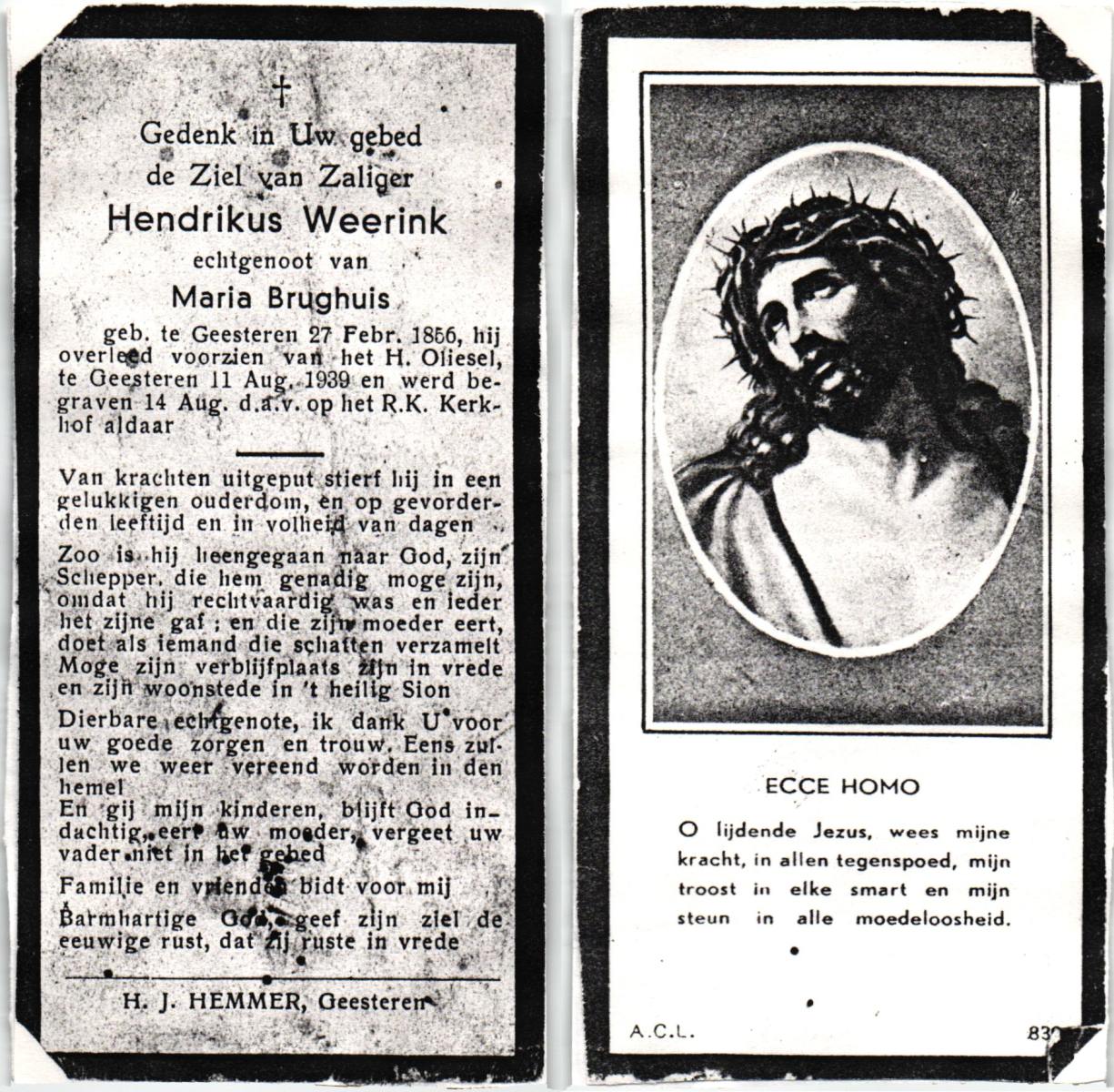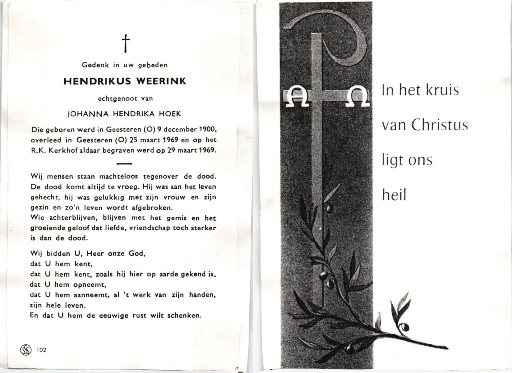 WAAIJER, Hendrikus Johannes, geboren op 25-3-1931 te Geesteren (Ov.), overleden op 30-7-1998 te Hengelo (Ov.) op 67-jarige leeftijd, begraven op 4-8-1998.