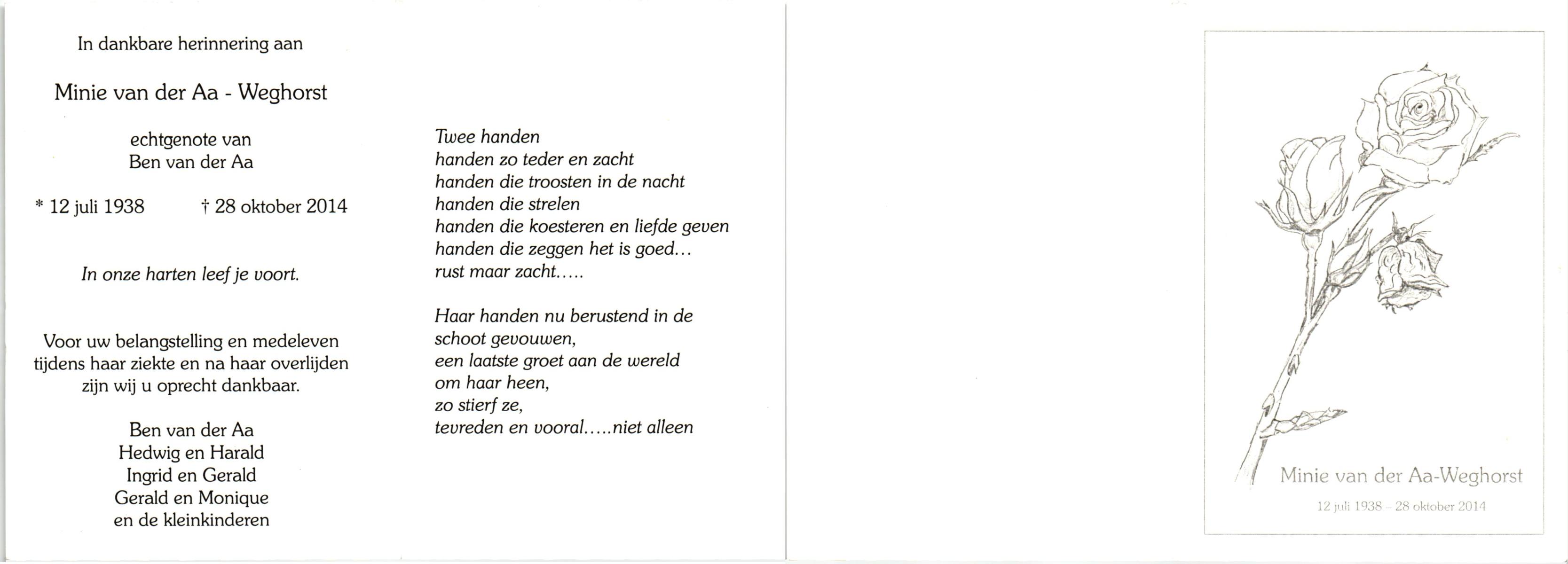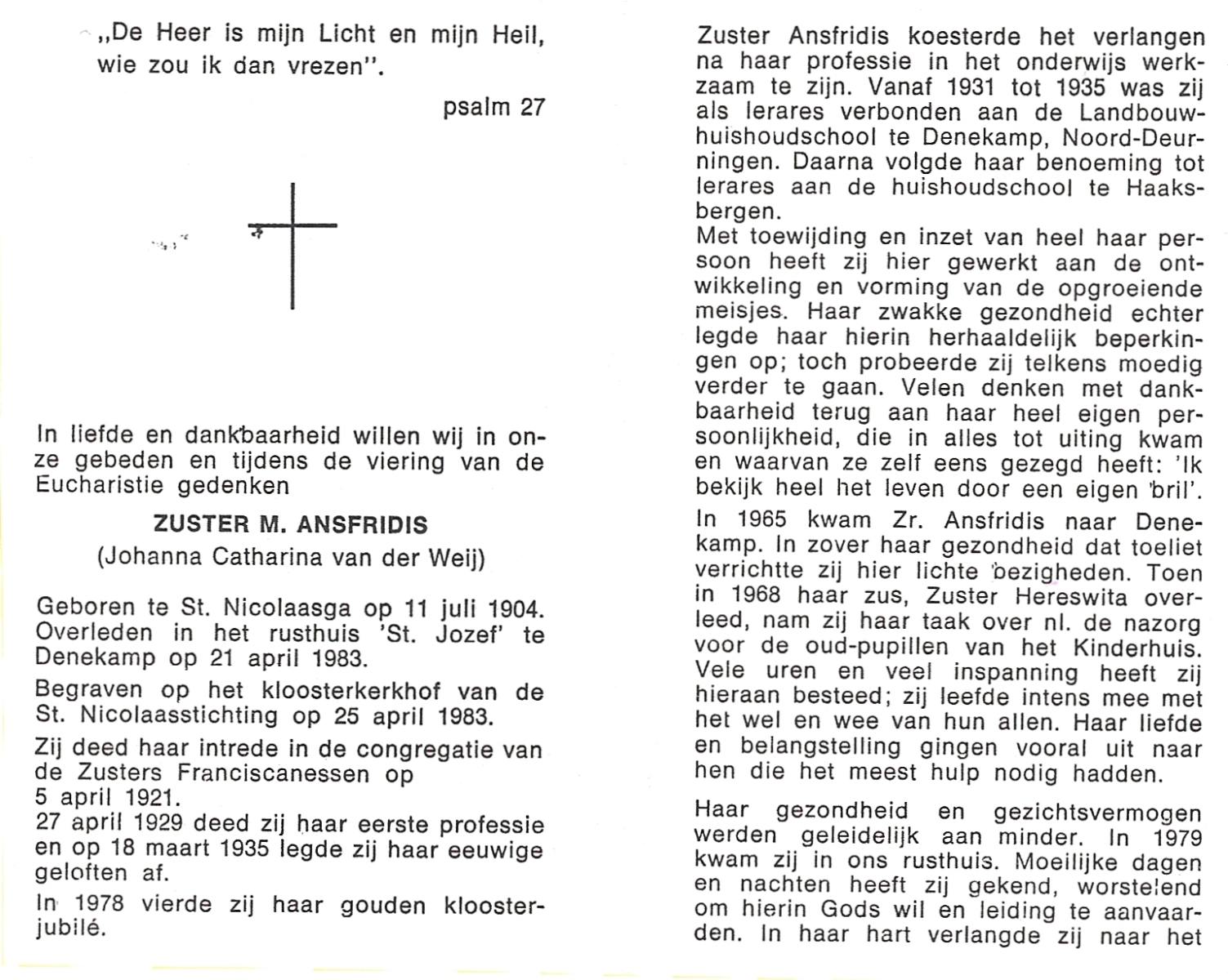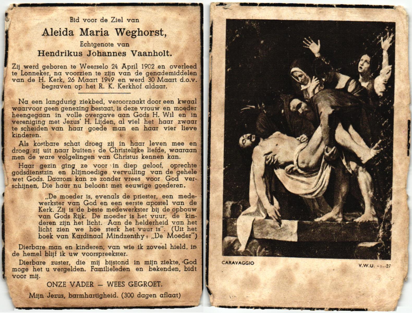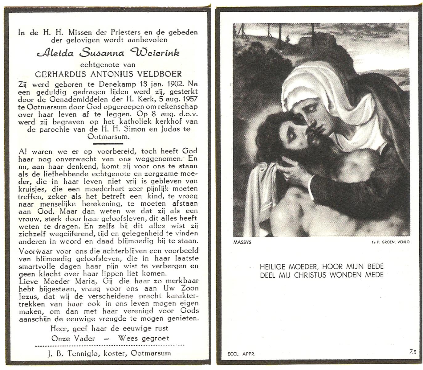 WAAIJER, Johanna Aleida, geboren op 28-4-1912 te Langeveen, overleden op 13-11-1980 te Almelo op 68-jarige leeftijd, begraven op 18-11-1980 te Langeveen R.K.kerhof.