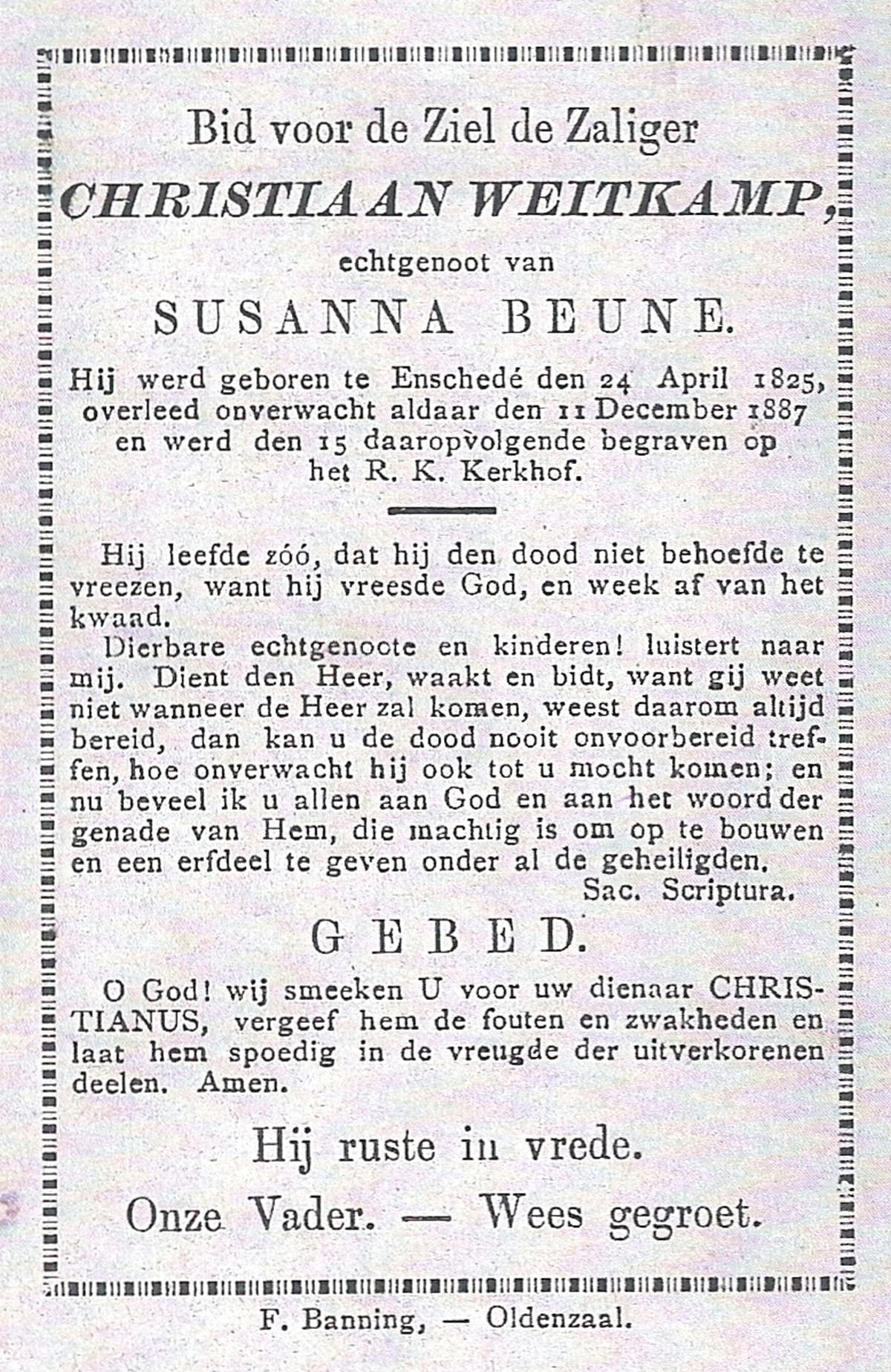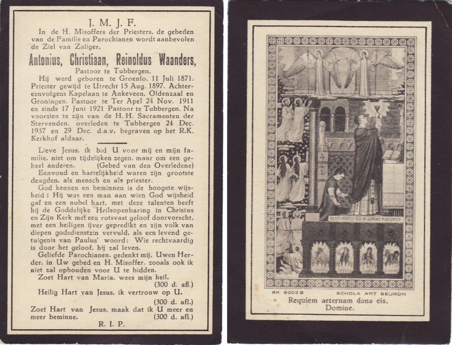 WAANDERS, Antonius Christiaan Reinoldus, geboren op 11-07-1871 te Groenlo, overleden op 24-12-1937 te Tubbergen op 66-jarige leeftijd, begraven op 29-12-1937 te Tubbergen.