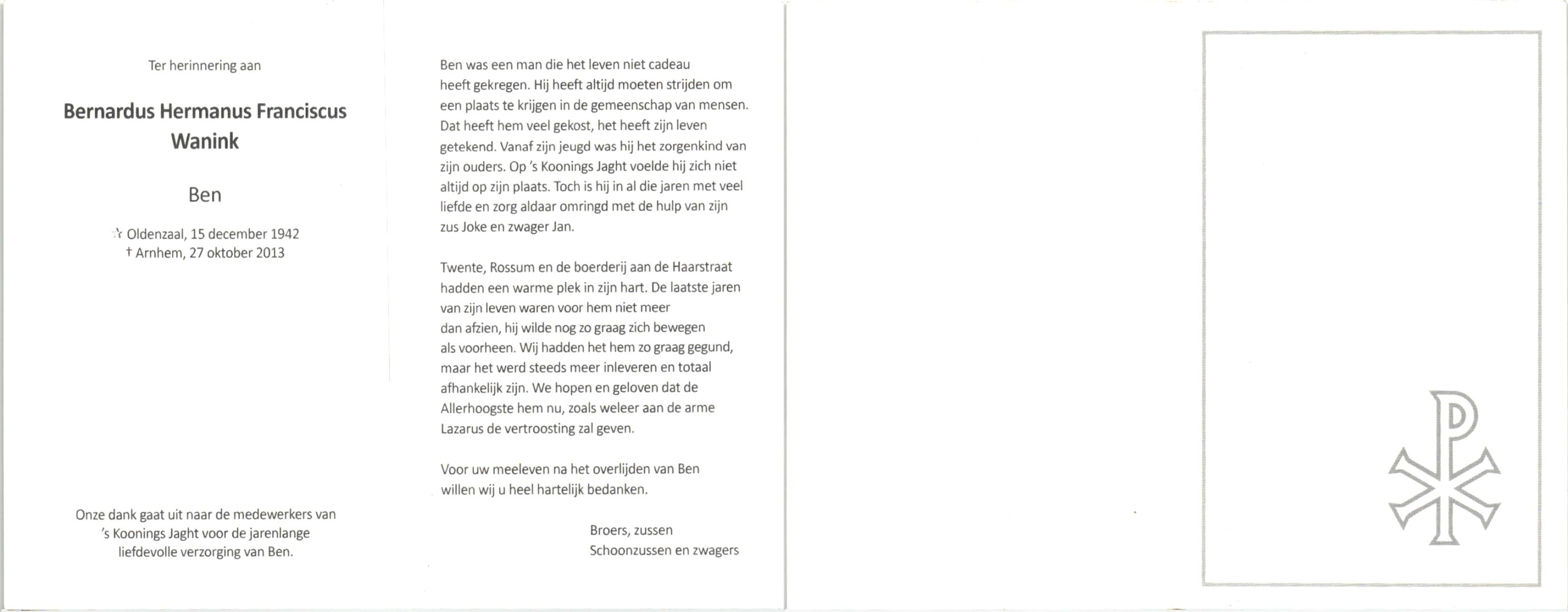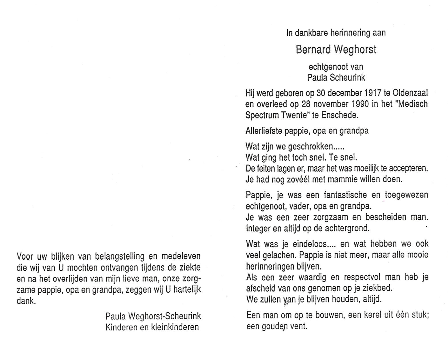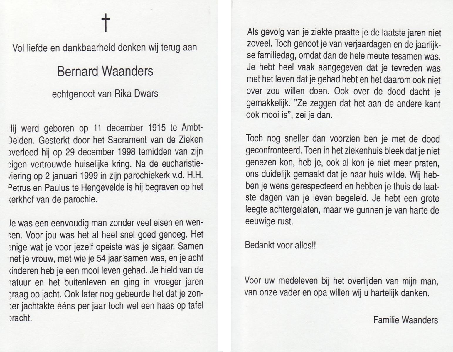 WAANDERS, Bernard, geboren op 11-12-1915 te Delden, Ambt, overleden op 29-12-1998 op 83-jarige leeftijd, begraven op 2-1-1999 te Hengevelde.